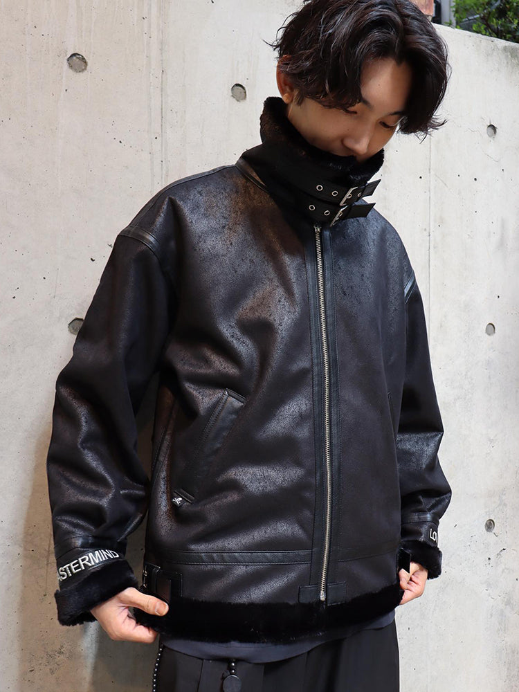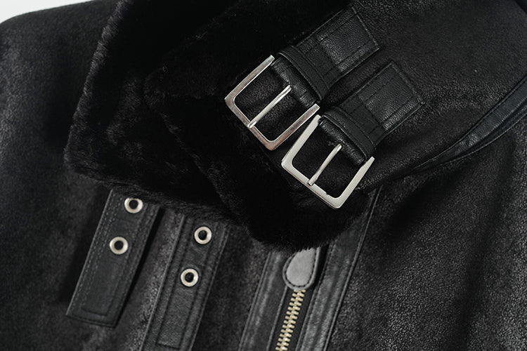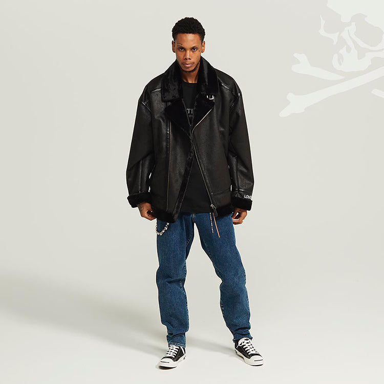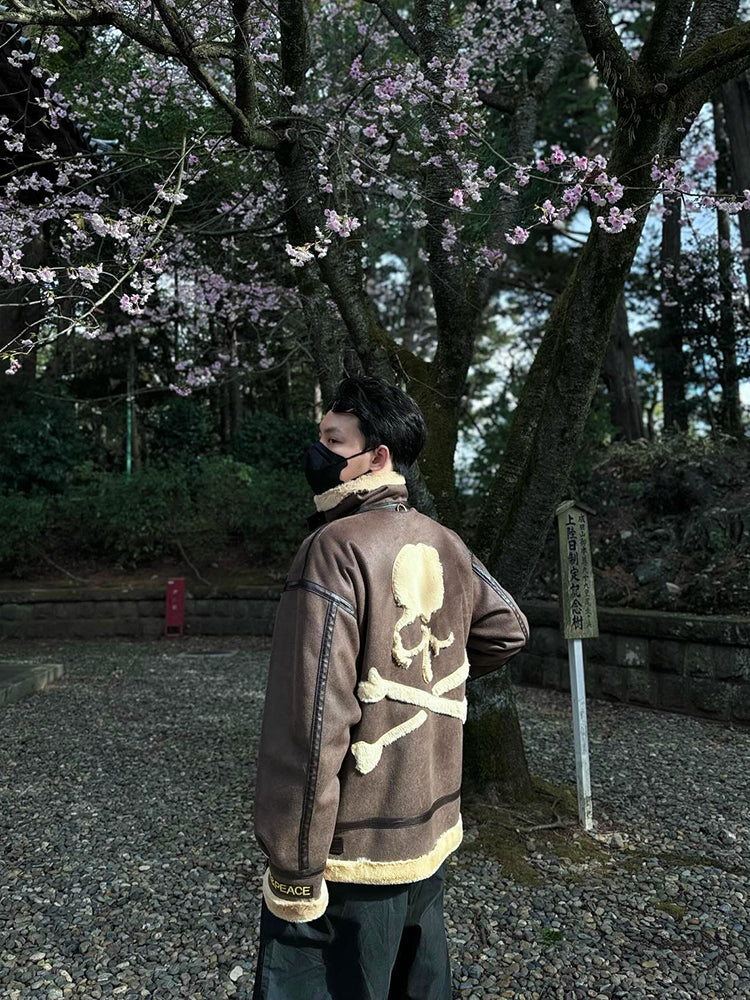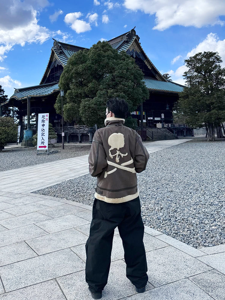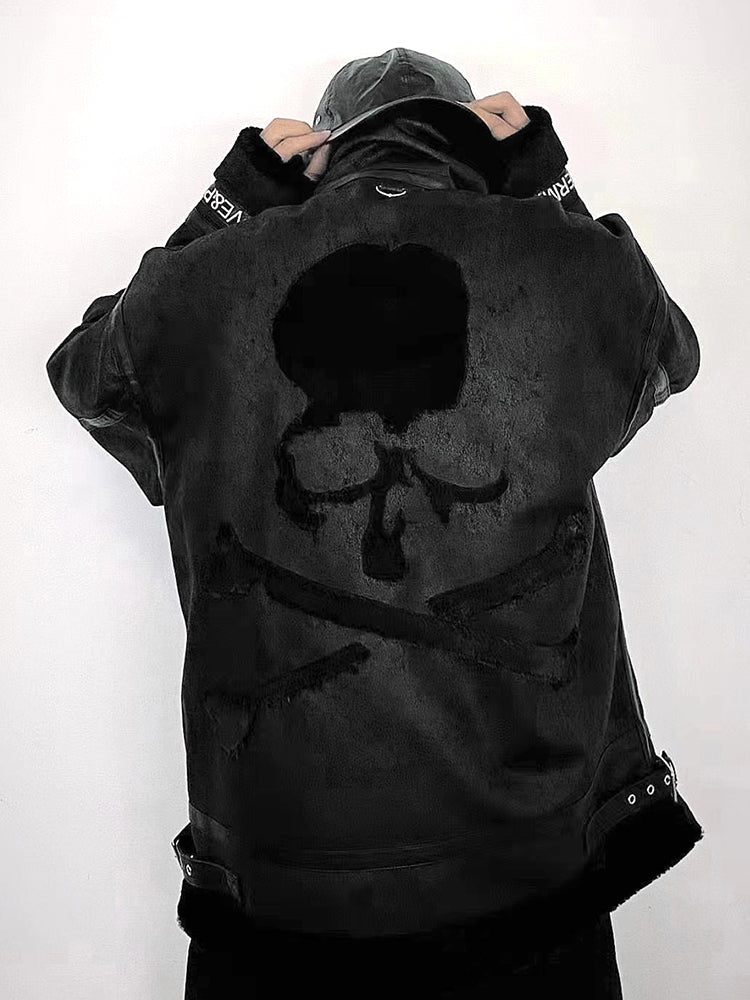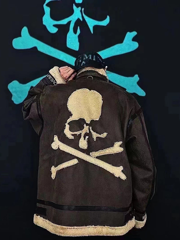 MasterMindOnline Gothic Skull B3 Aviator Flight Jacket - Mink Fur Leather Blend