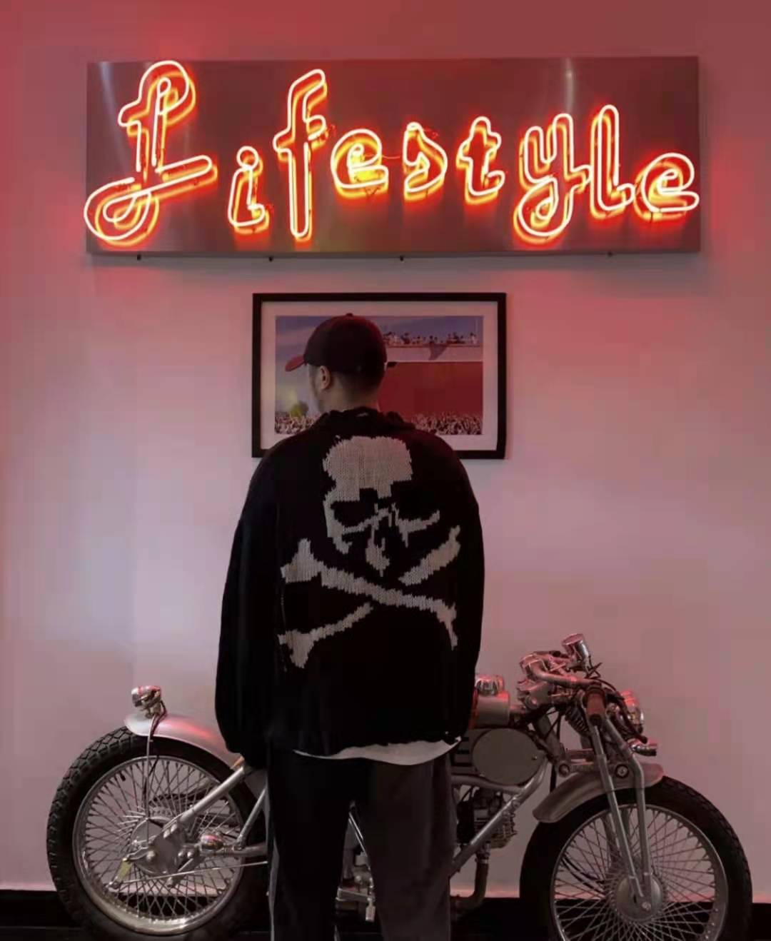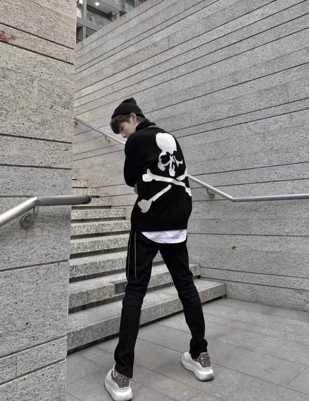 Stay warm and stylish with the MMJ Online Japan mastermind Skull Embroidery Crewneck Knit Pullover Sweater. This high-quality sweater features a unique skull embroidery design, perfect for adding a touch of edge to any outfit. Made with soft and comfortable knit fabric, this sweater will keep you cozy all day long. Elevate your wardrobe with this must-have piece.