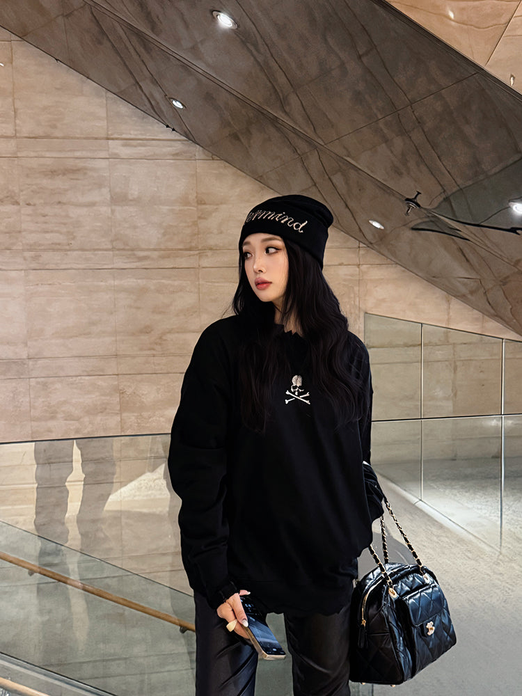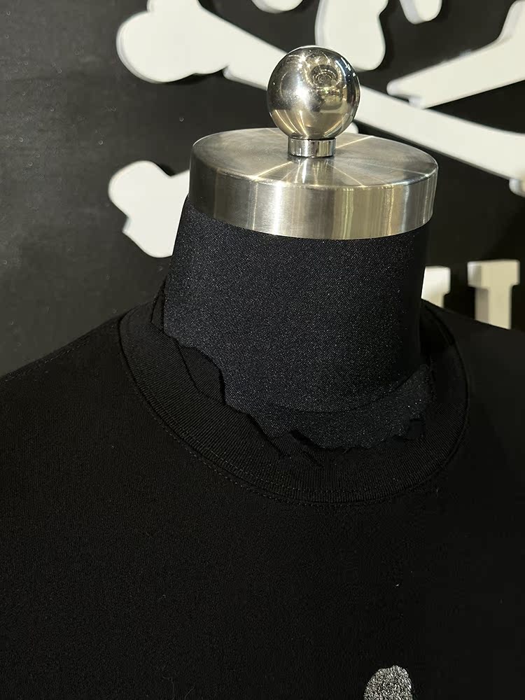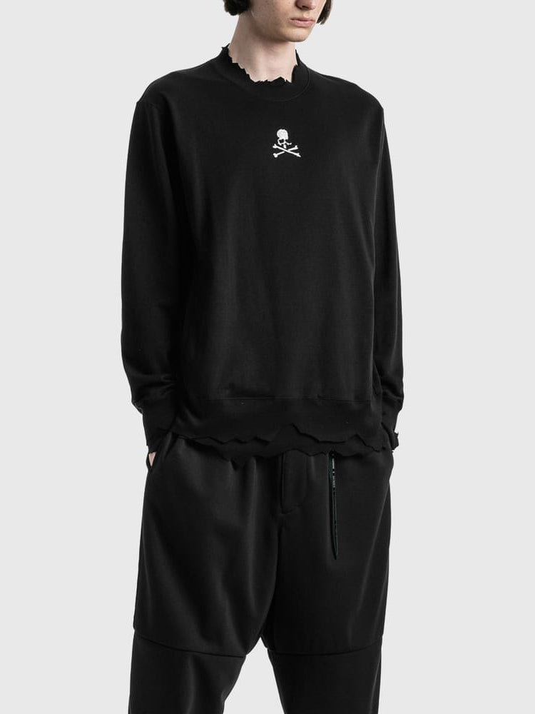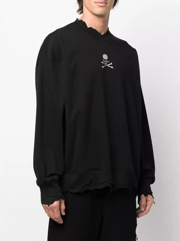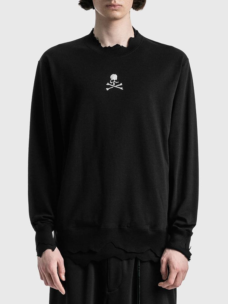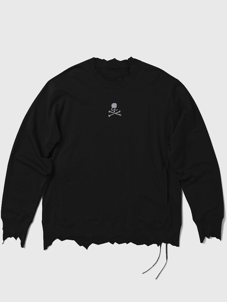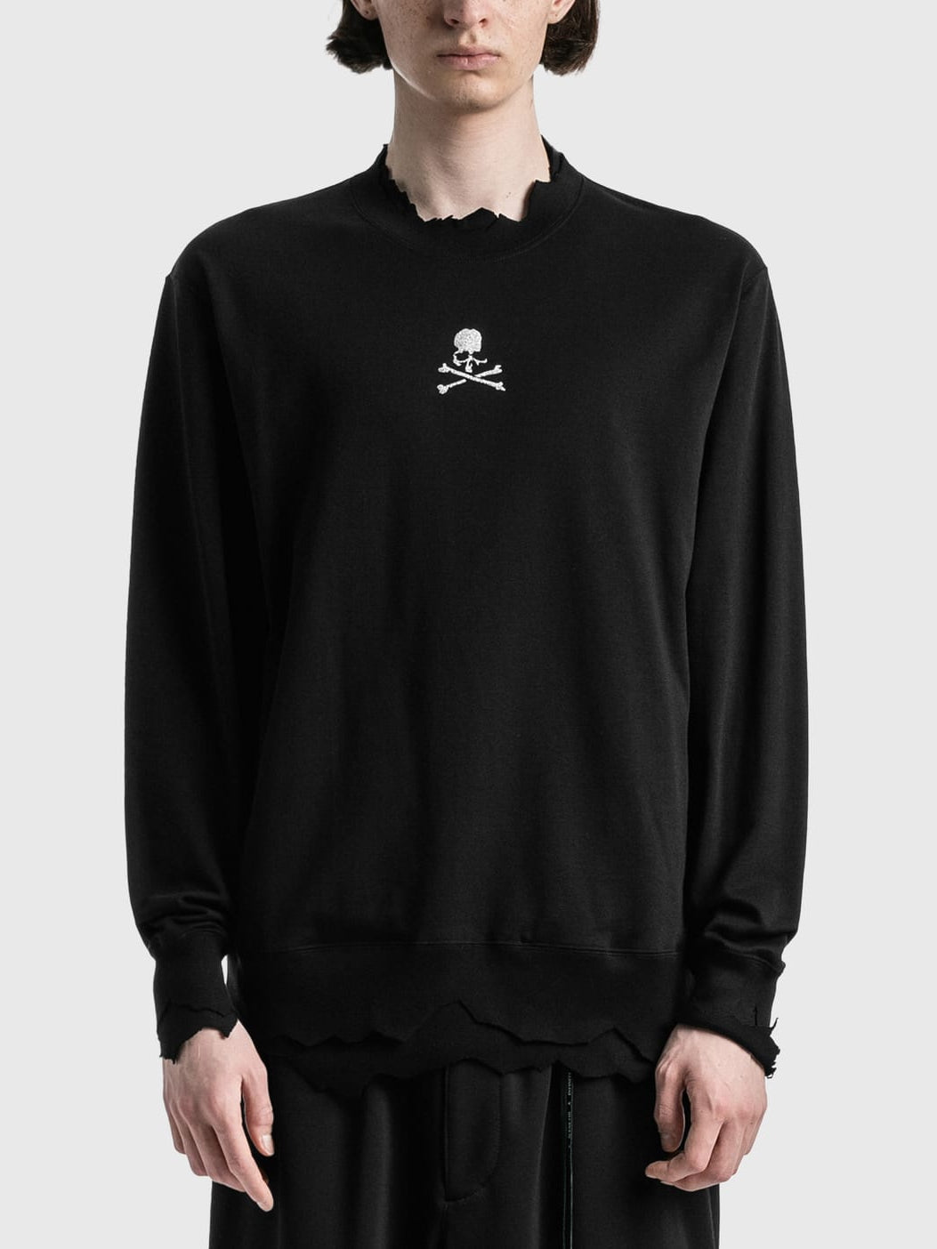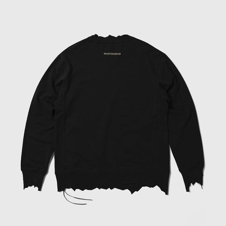 MASTERMIND MMJ Skull Glitter 3D Print Cut-Off Distressed Crewneck Sweatshirt