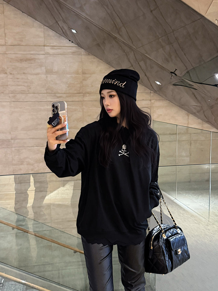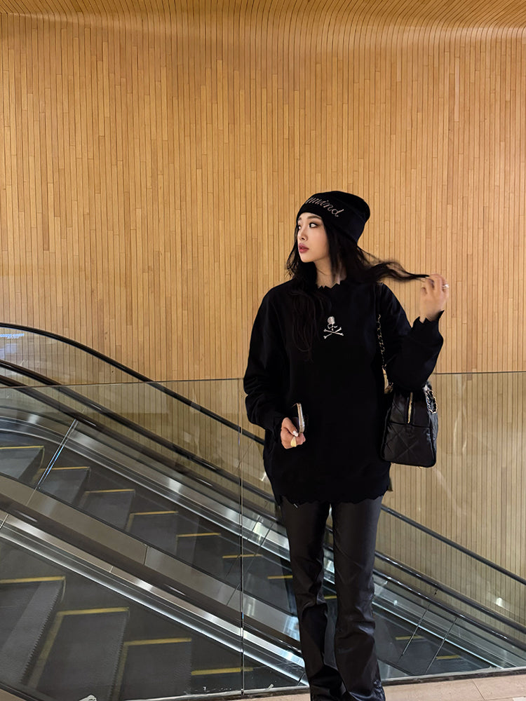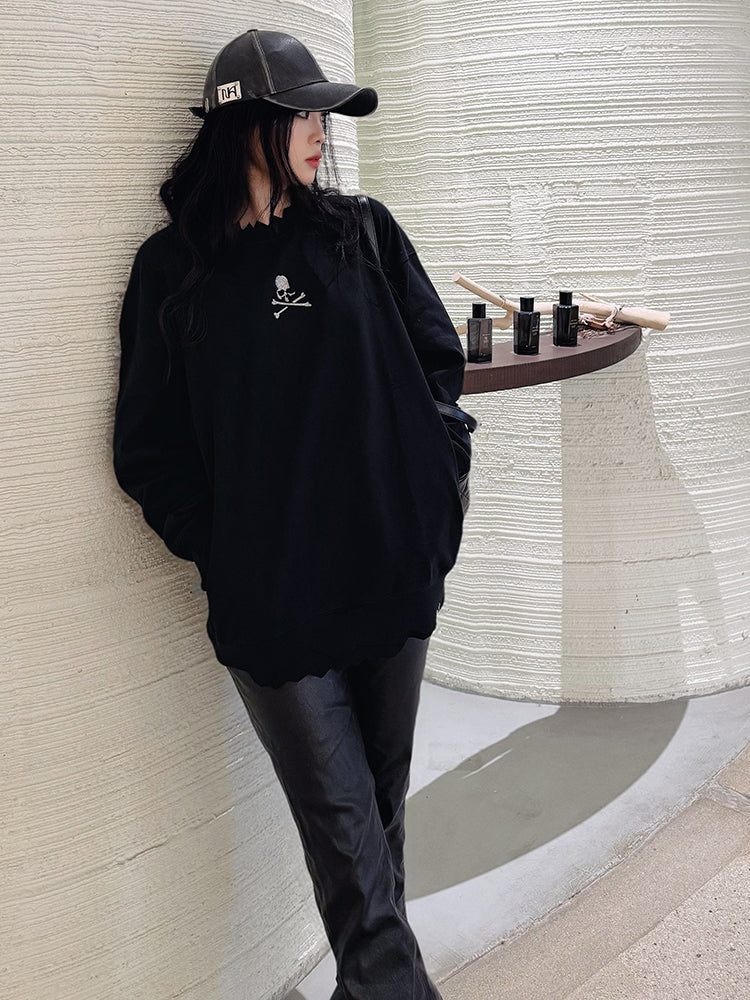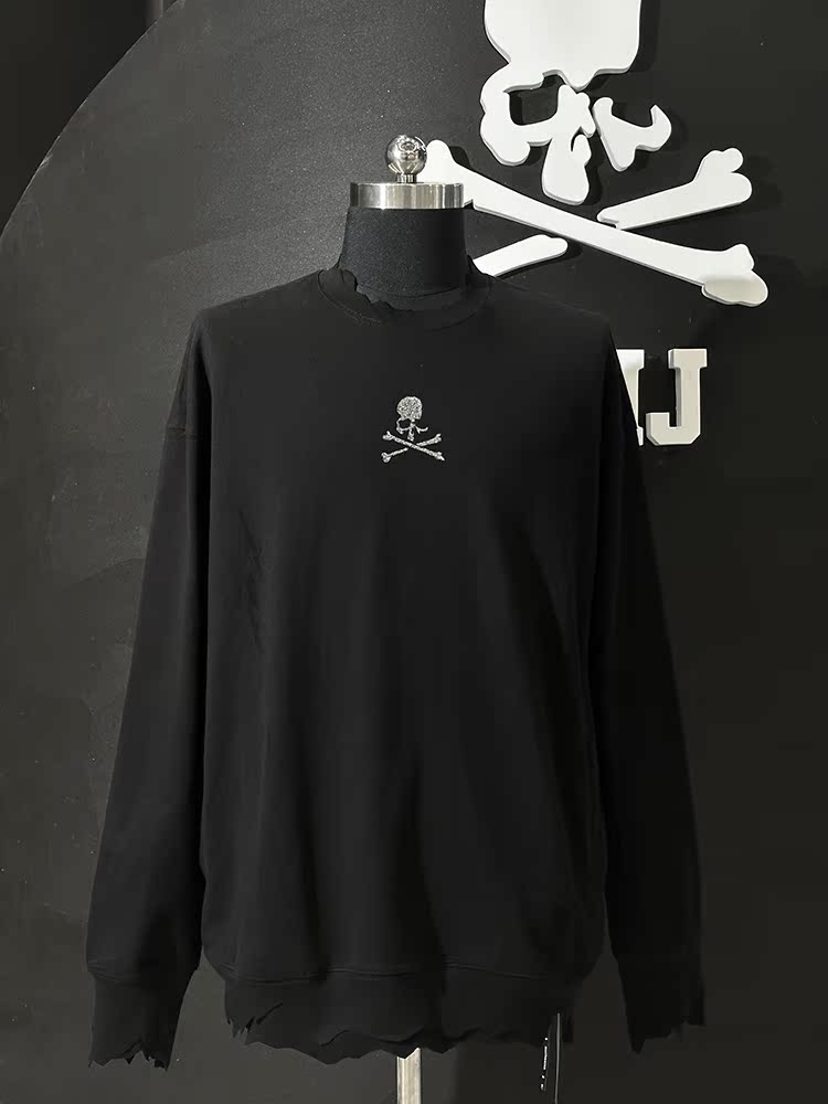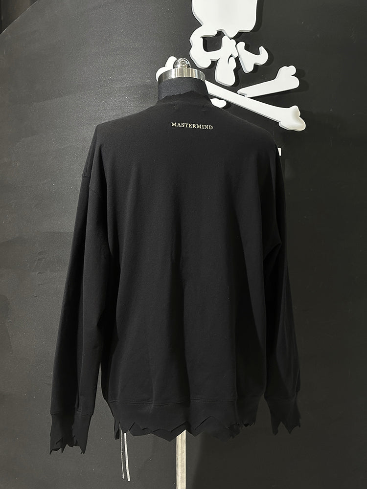 Crafted by MASTERMIND MMJ, this Skull Glitter 3D Print Cut-Off Distressed Crewneck Sweatshirt combines style and edge. Featuring a unique 3D print and distressed details, this sweatshirt is perfect for those looking to make a bold statement. Stay cozy and on trend with this must-have piece.