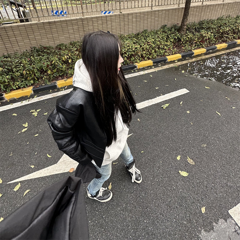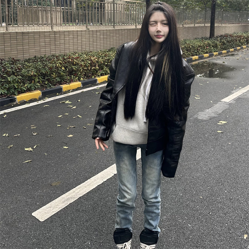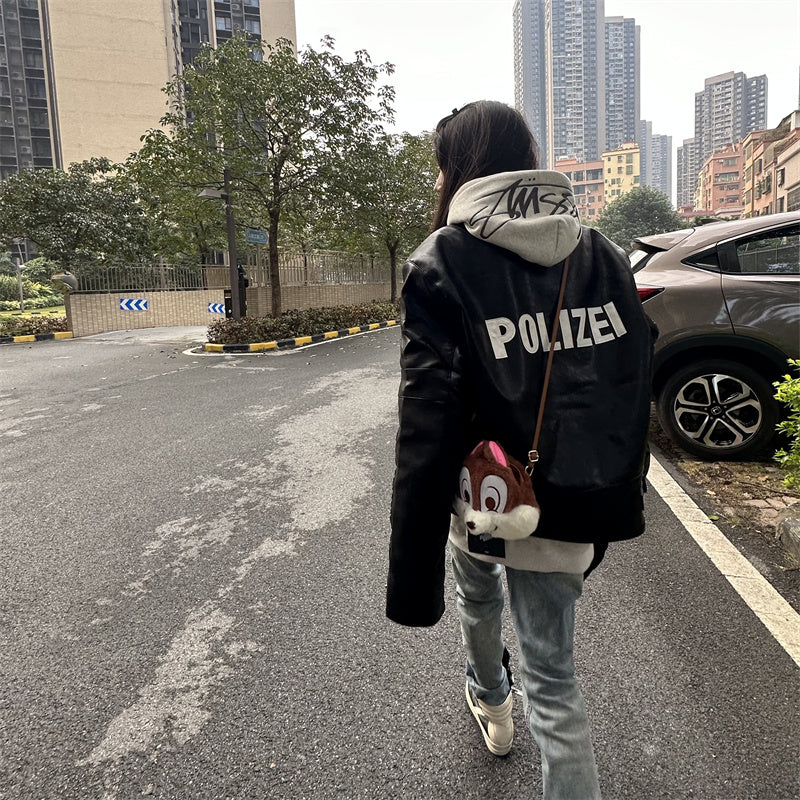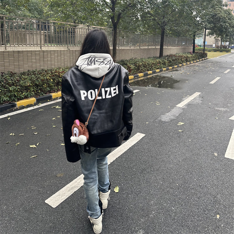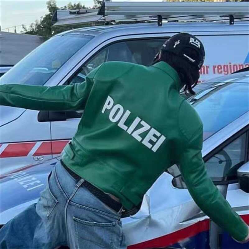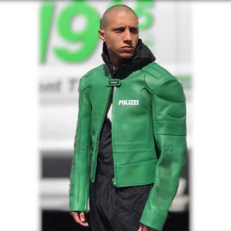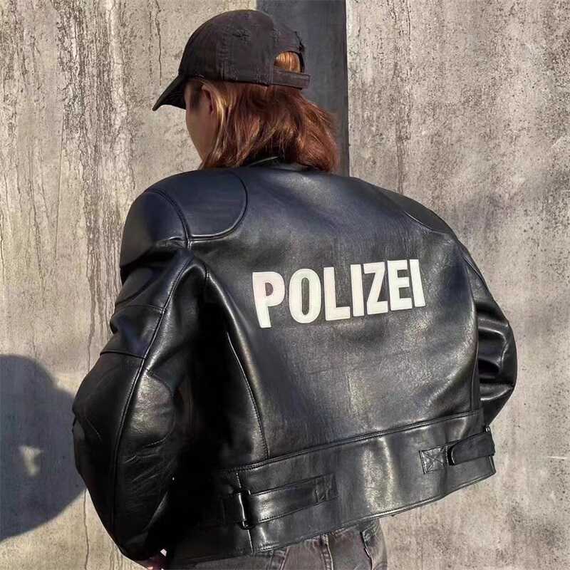 Self-made Vetements Motorcycle Leather Jacket Polizei Wild Man Biker Letter Print