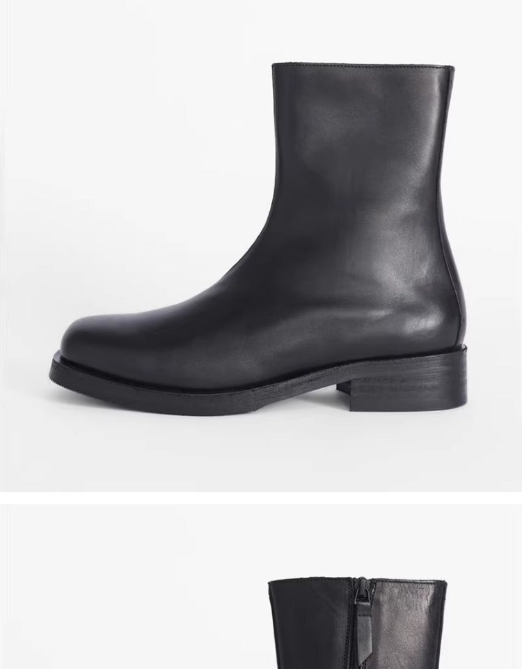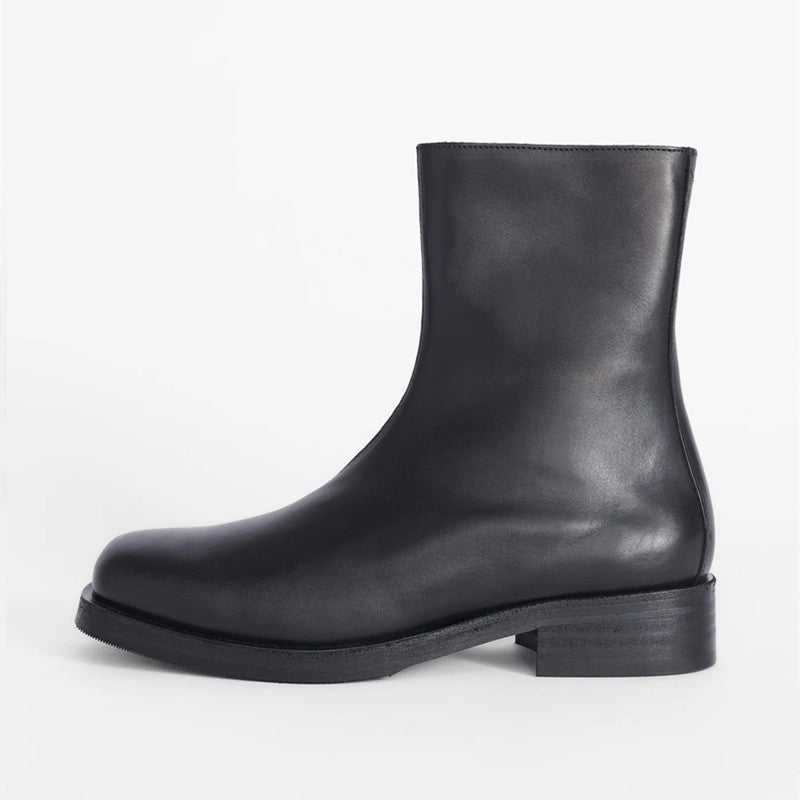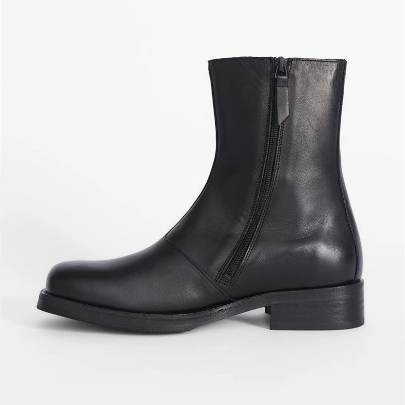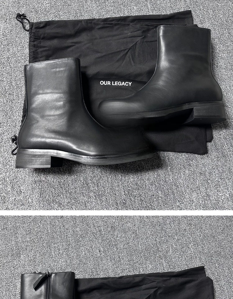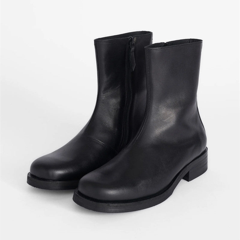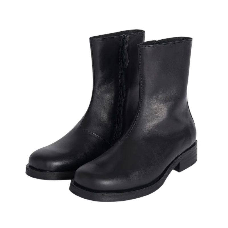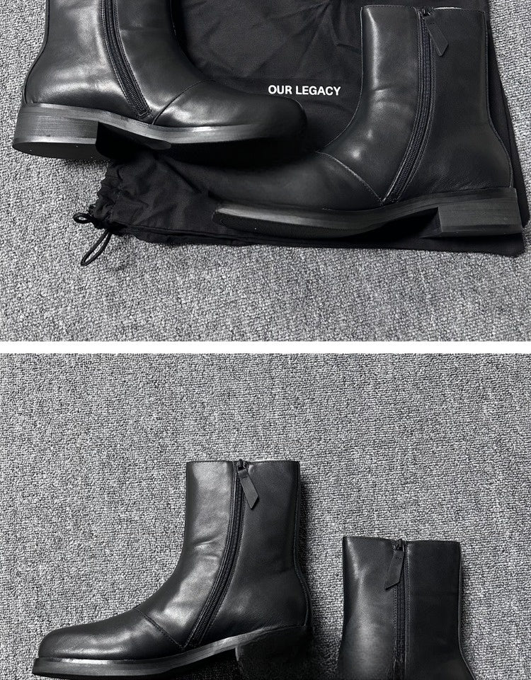 Our Legacy Black Leather Mid-Calf Chelsea Boots High-End Unisex Short Boots