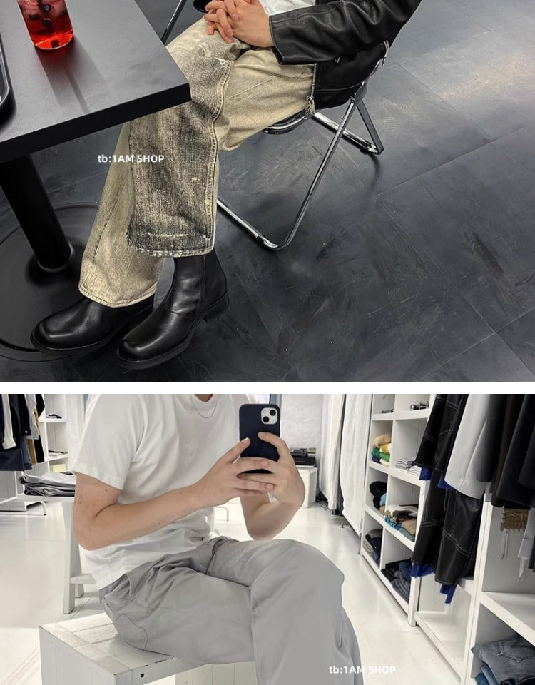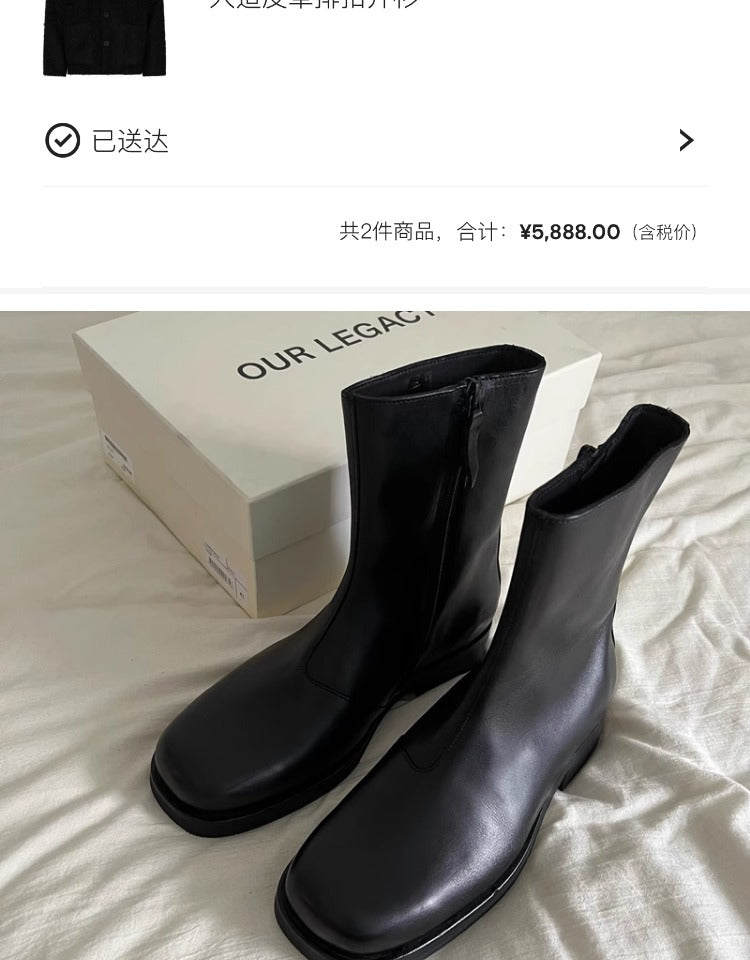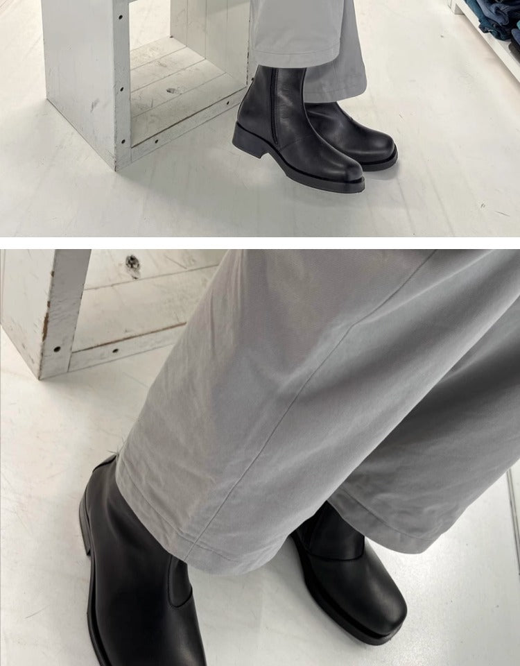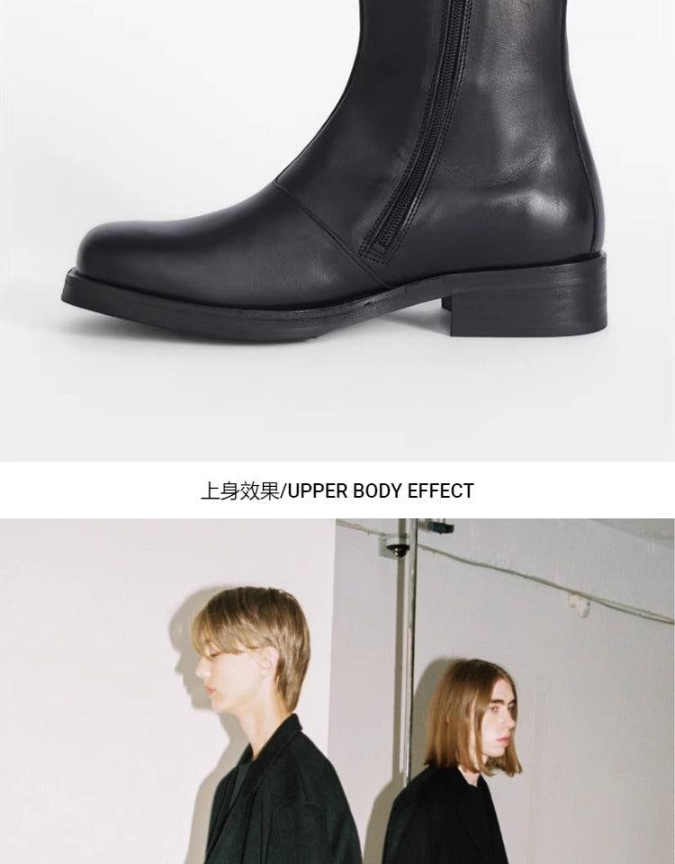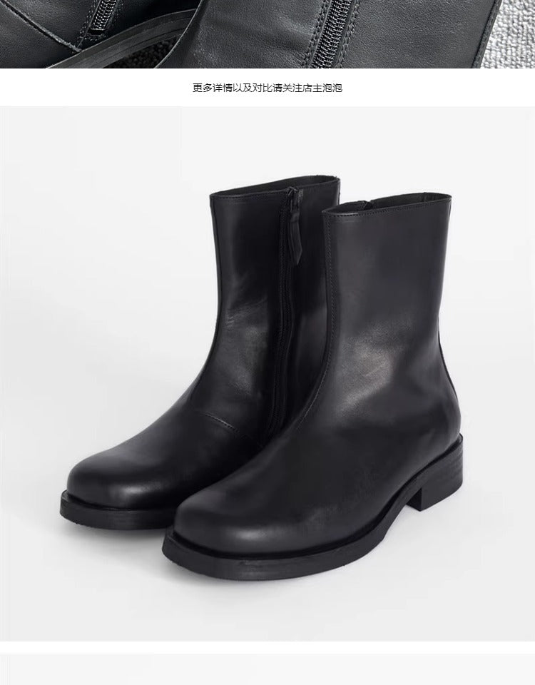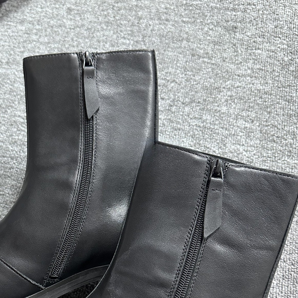 Our Legacy Black Leather Mid-Calf Chelsea Boots High-End Unisex Short Boots