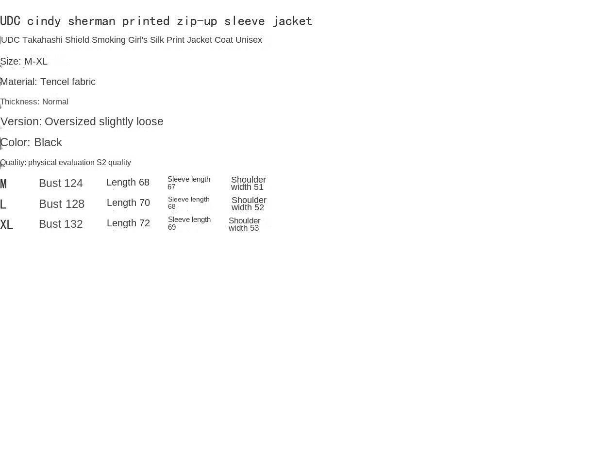 This Remake Undercover jacket features a unique Cindy Sherman print, designed by Takahashi Girl. With its zip-up design, it offers both style and convenience. Expertly crafted, this jacket is sure to make a statement in any wardrobe.