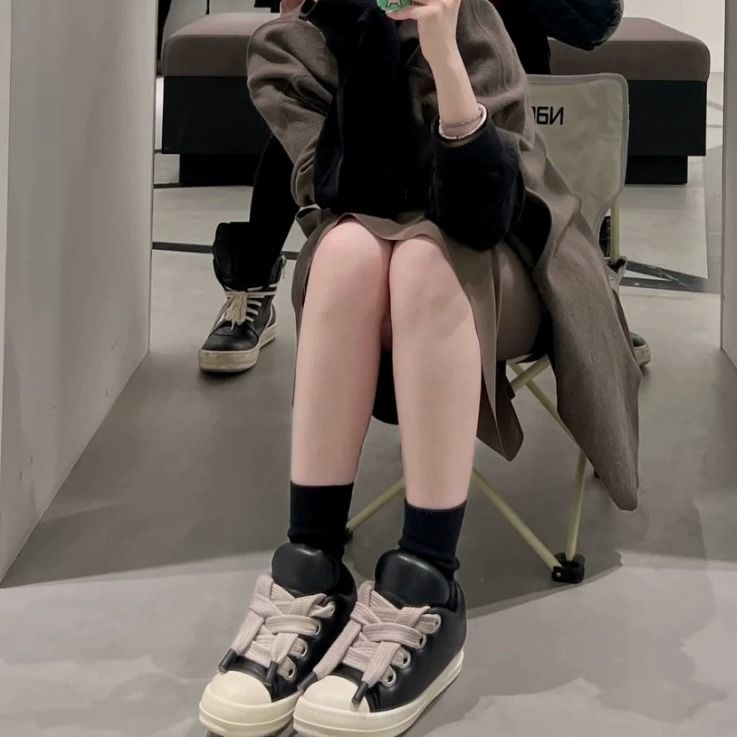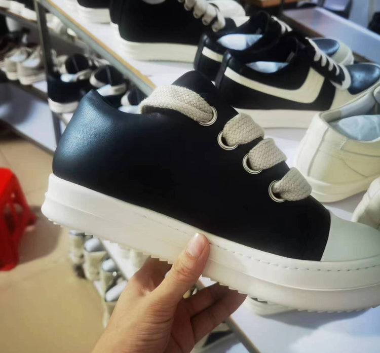 Custom-made Rick Owen Leather Platform Bread Sneakers BAPESTALOW Padded Shoes Inflatable