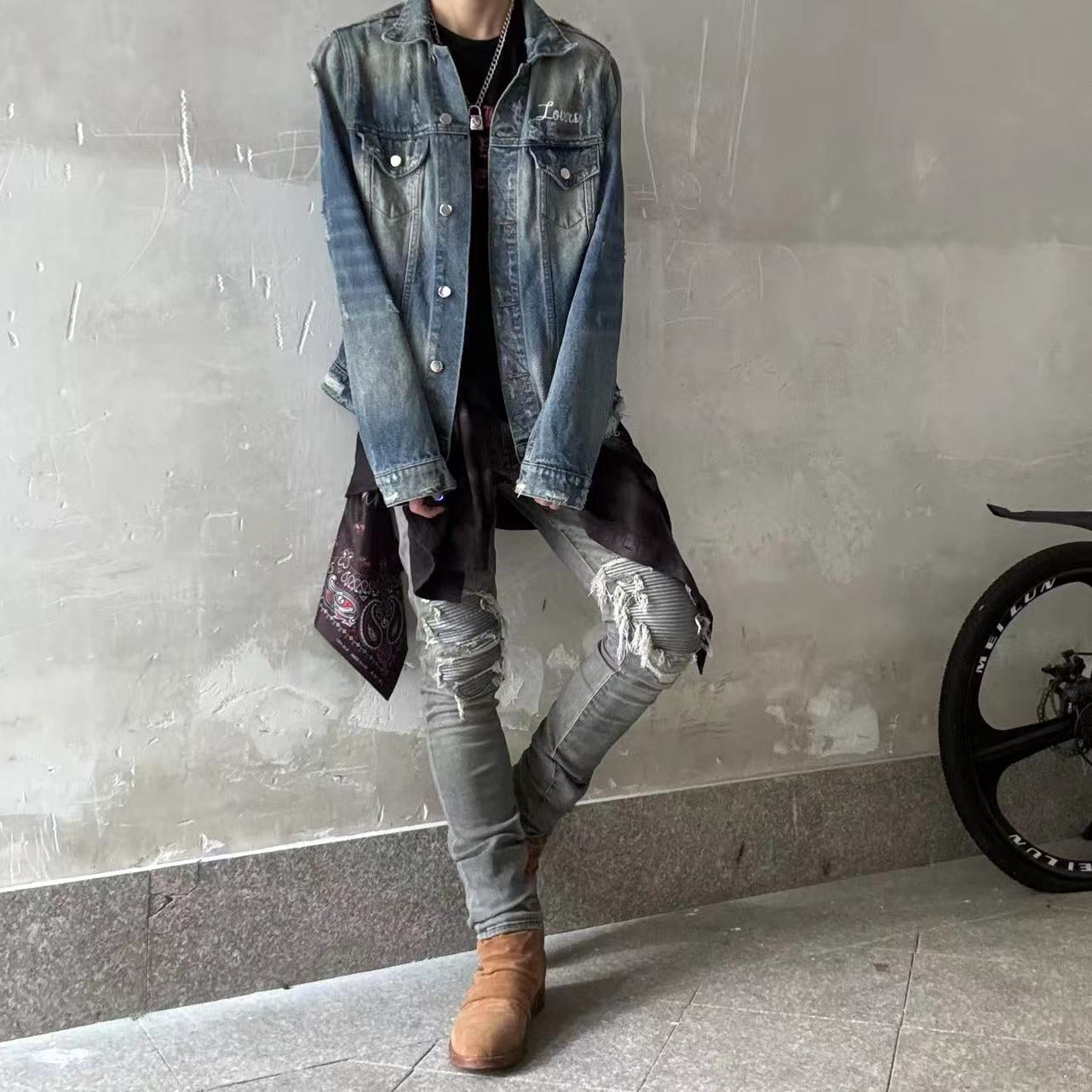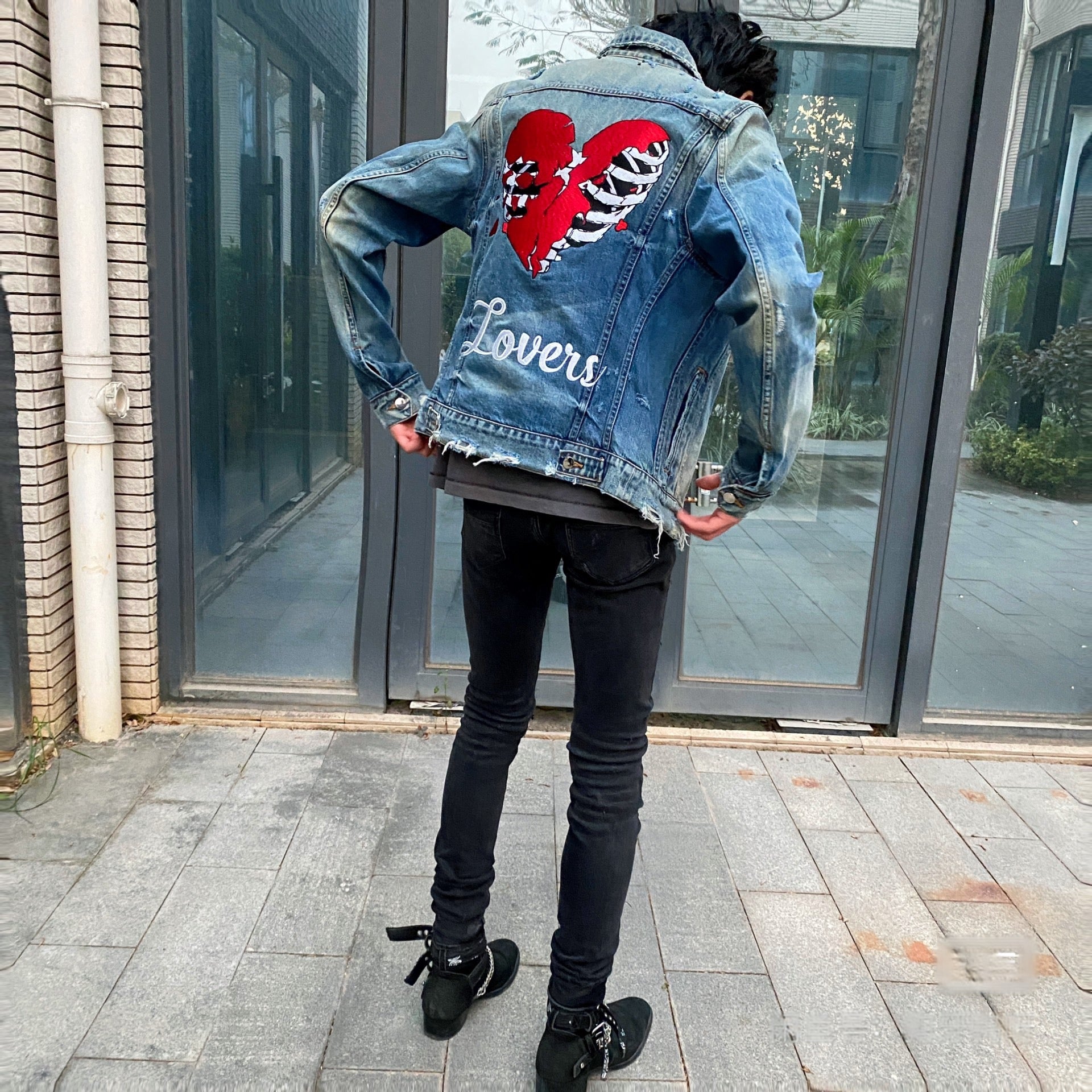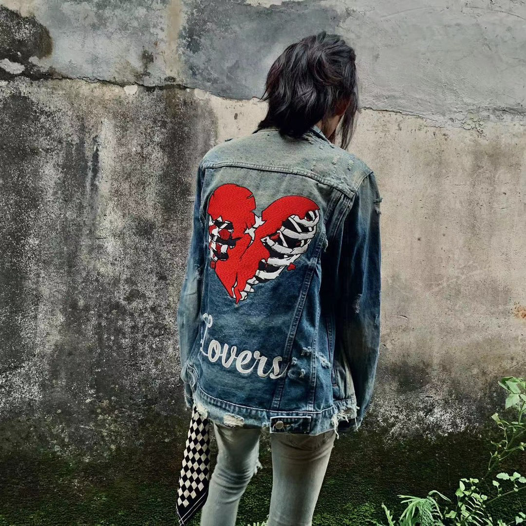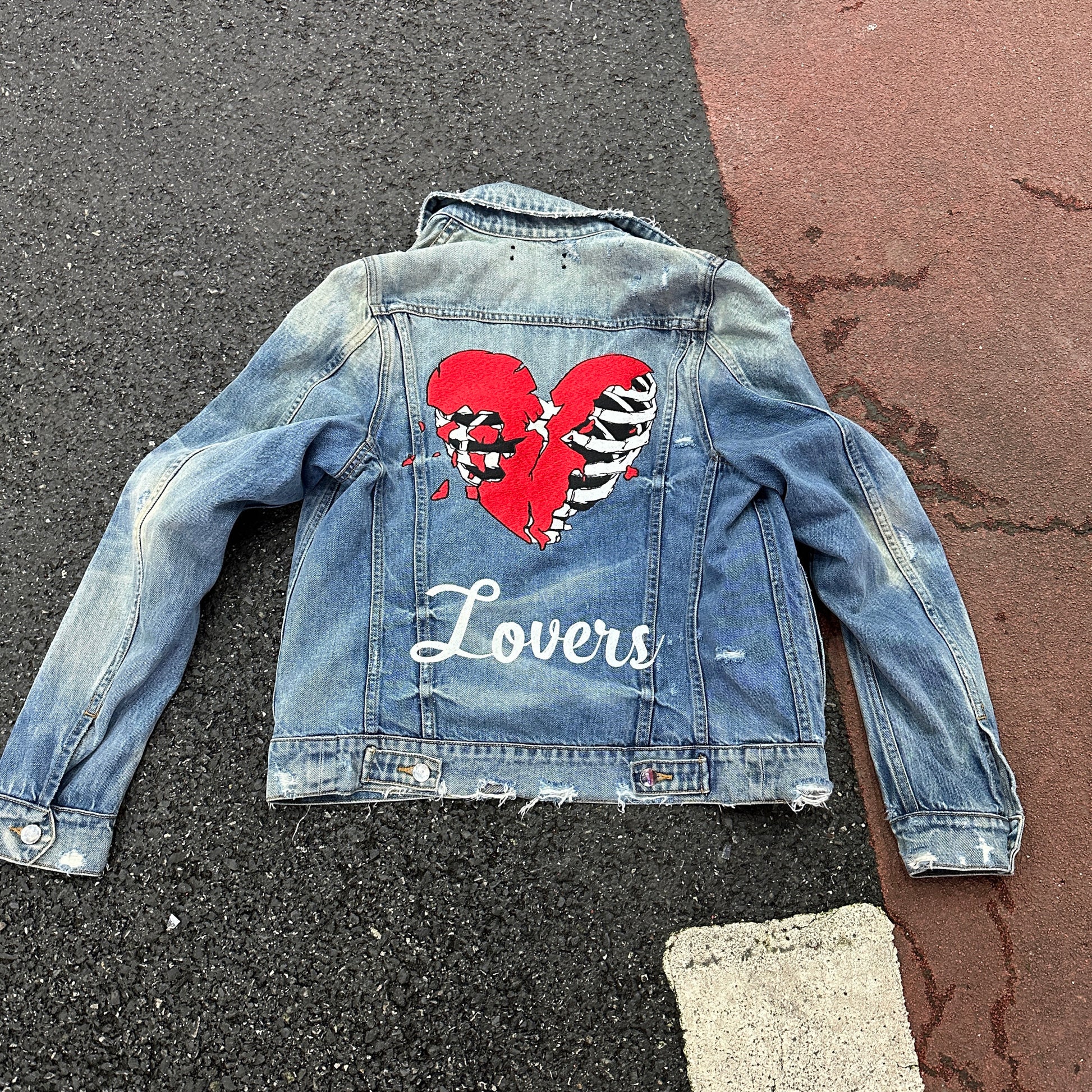Self-made AMIRI Heartbreak Lovers Denim Jacket - Embroidered Washed Highstreet