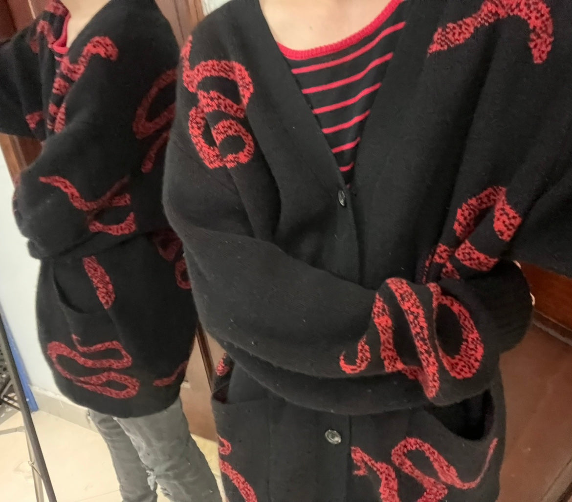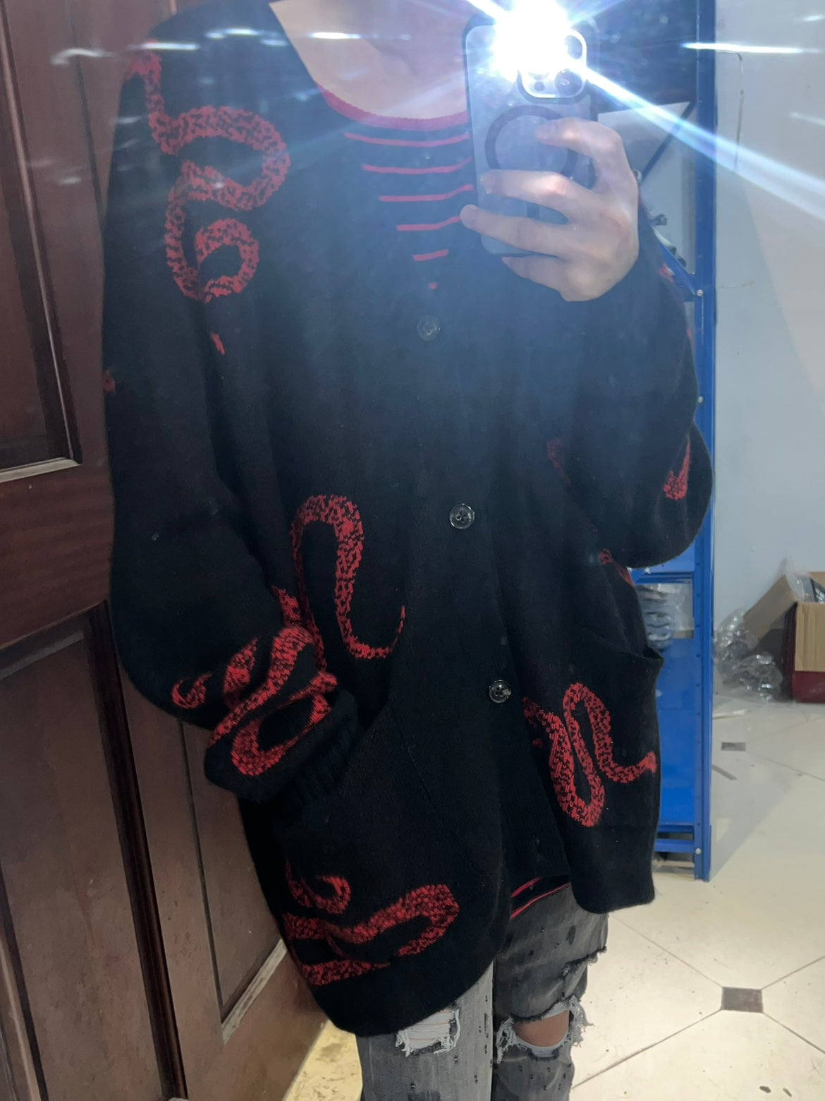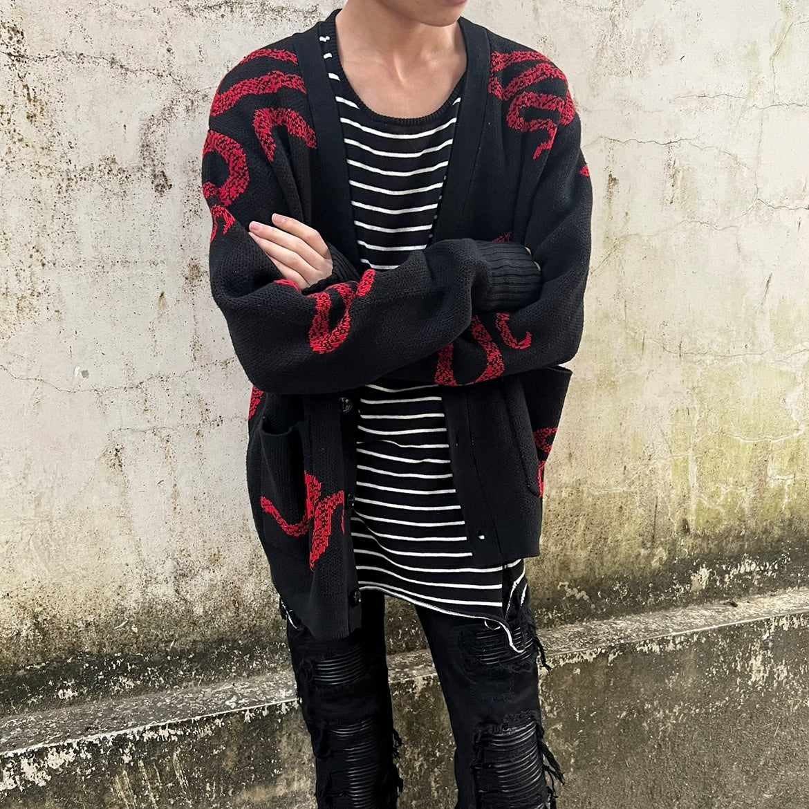 Self-made AMIRI 18AW Dark Red Snake - High-Street Wool Cardigan Jackets