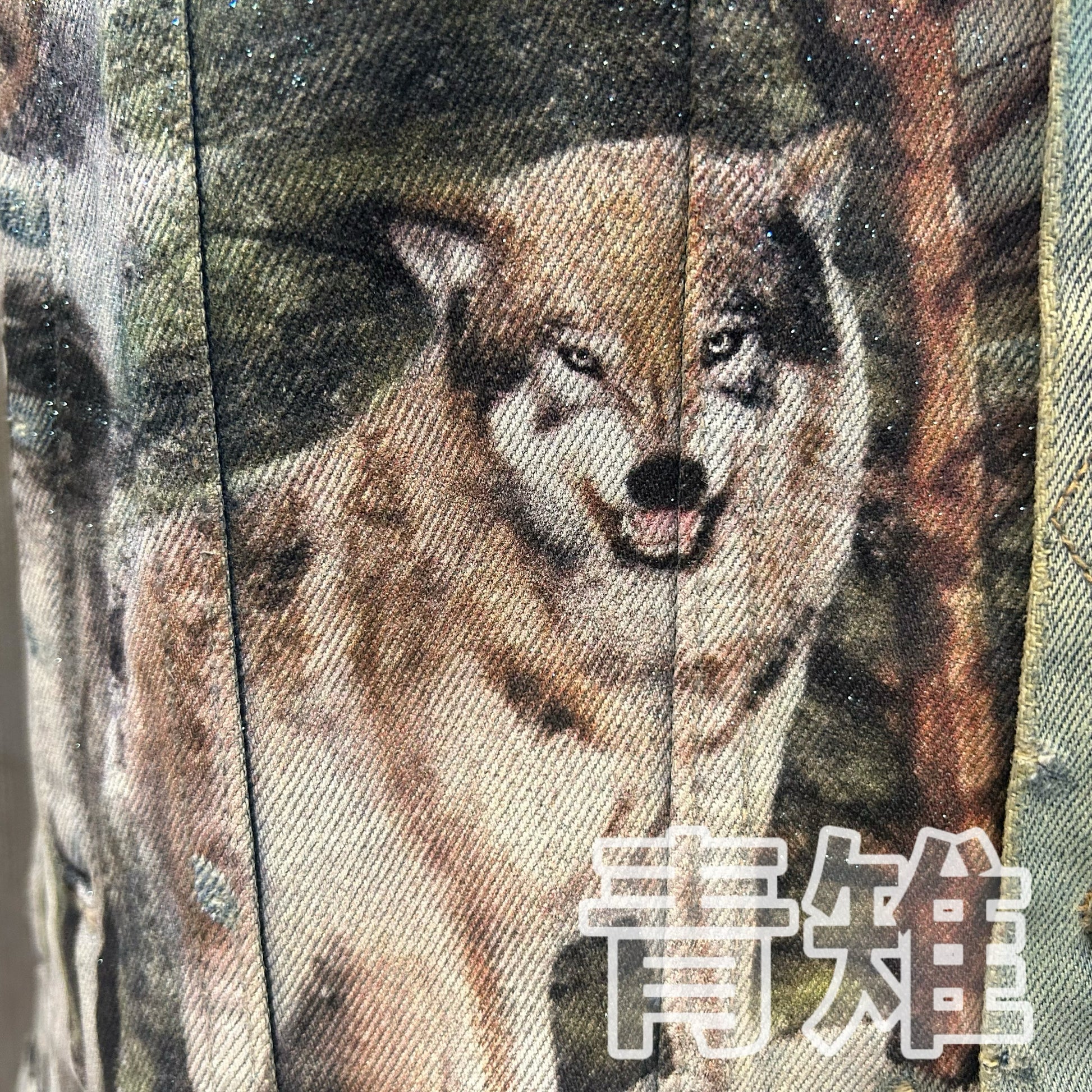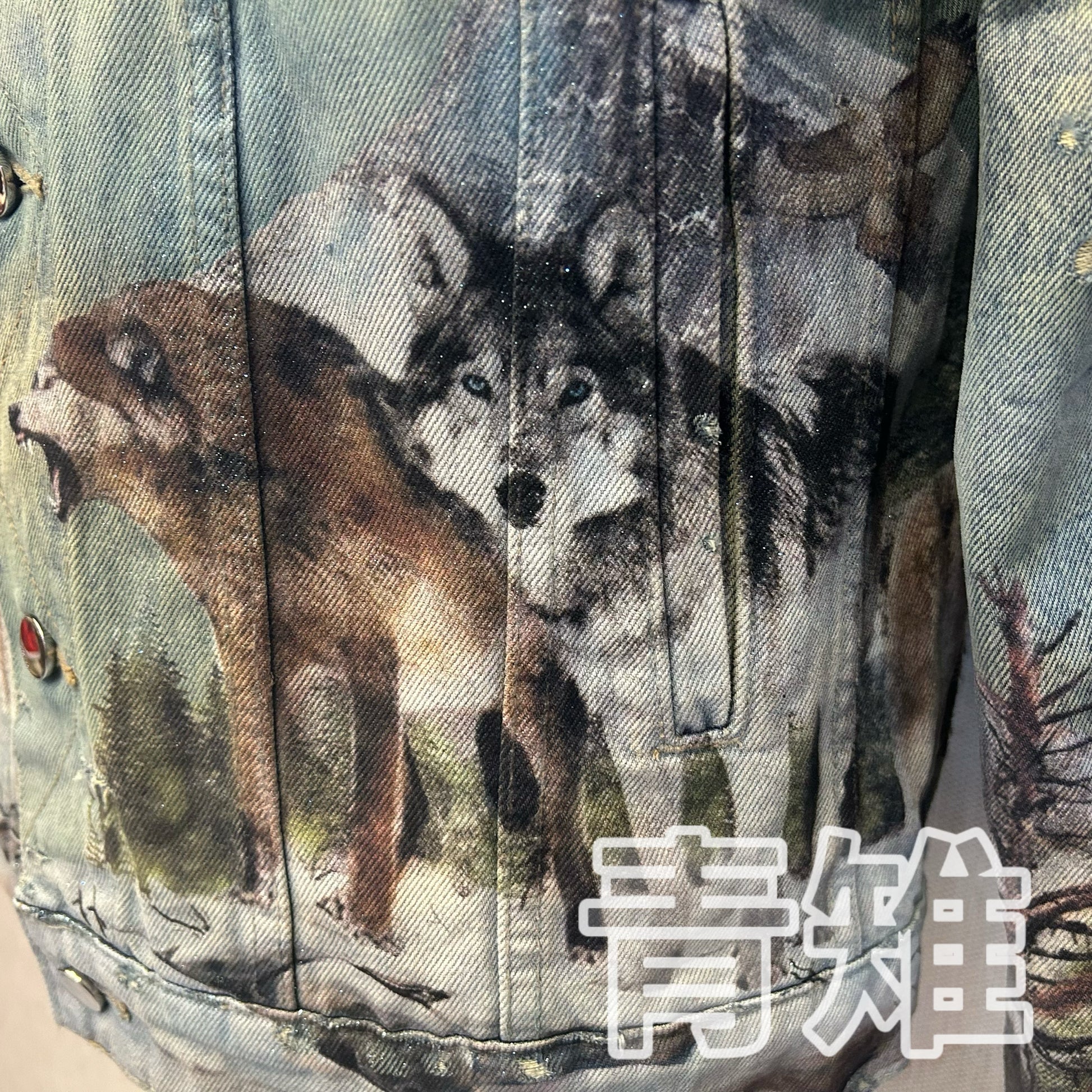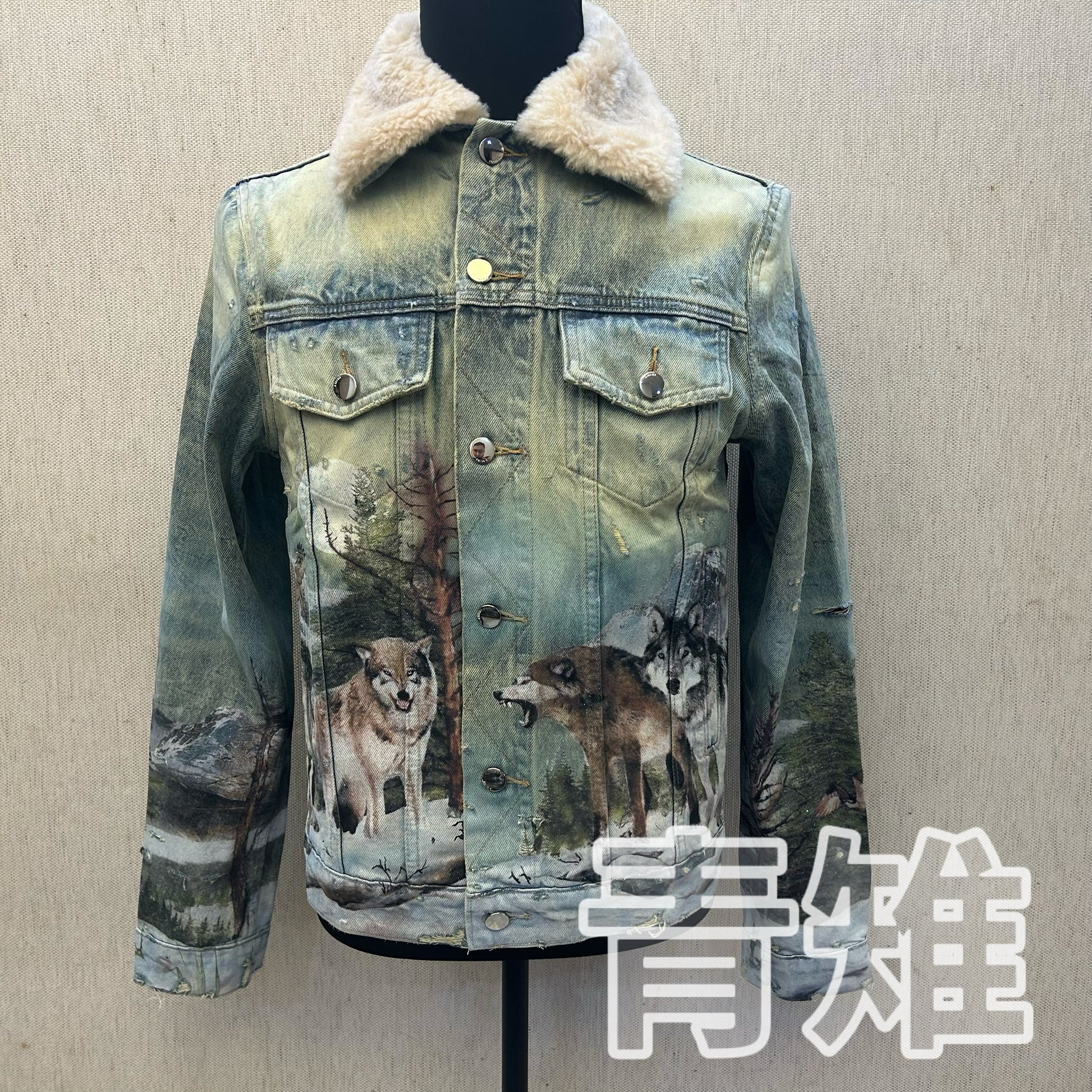 This Self-made AMIRI 18AW Snow Wolf Graffiti Jacket boasts a high-street style with a luxurious shearling collar and waxed finish. The striking snow wolf graffiti design adds a unique touch, making it a statement piece for any outfit. Expertly crafted with attention to detail, this jacket is both fashionable and functional.