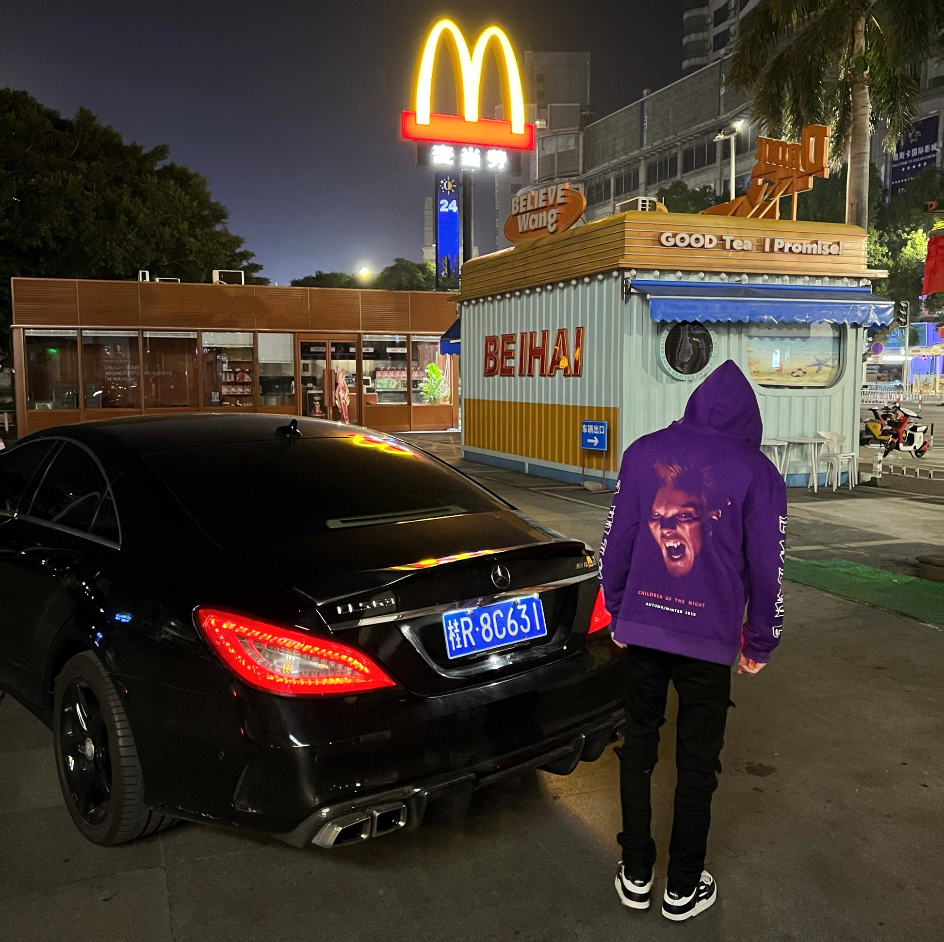 Self-made AMIRI 18AW Vampire Purple Print Hoodie - Heavyweight High Street