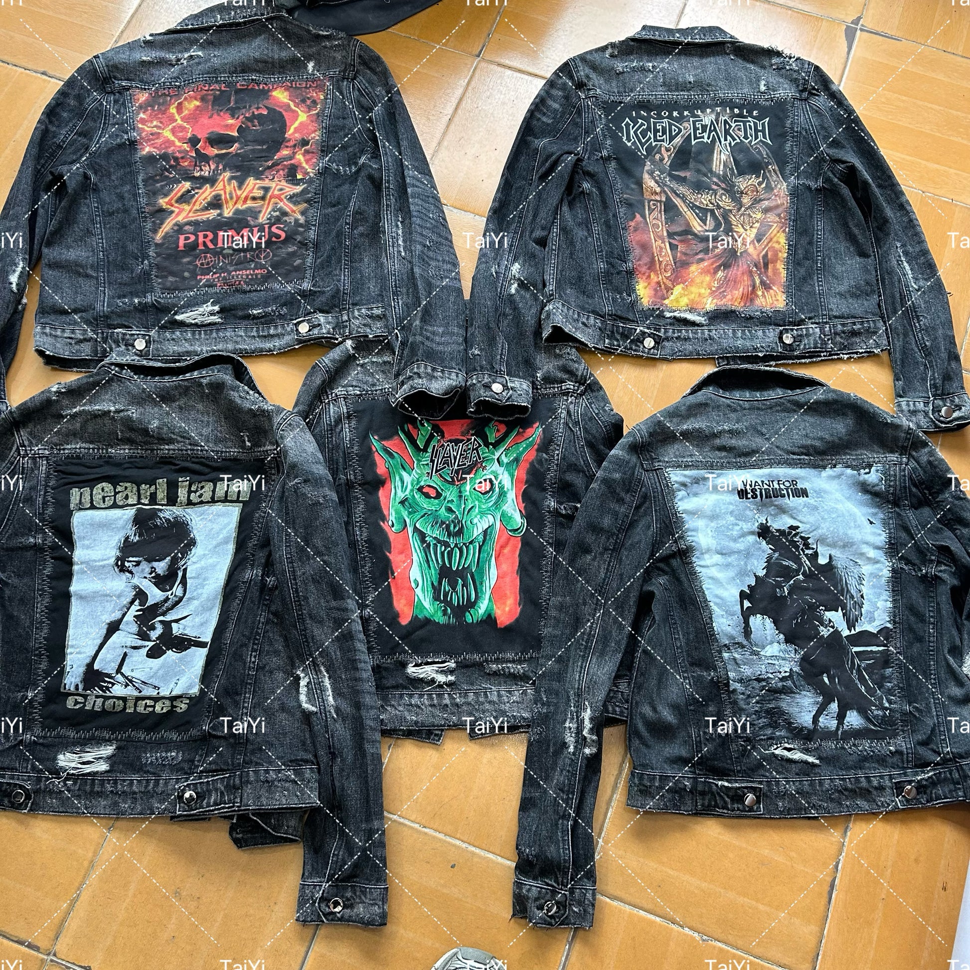Self-made AMIRI High-Street Black Denim Jacket - Back Kill Embroidered Medals