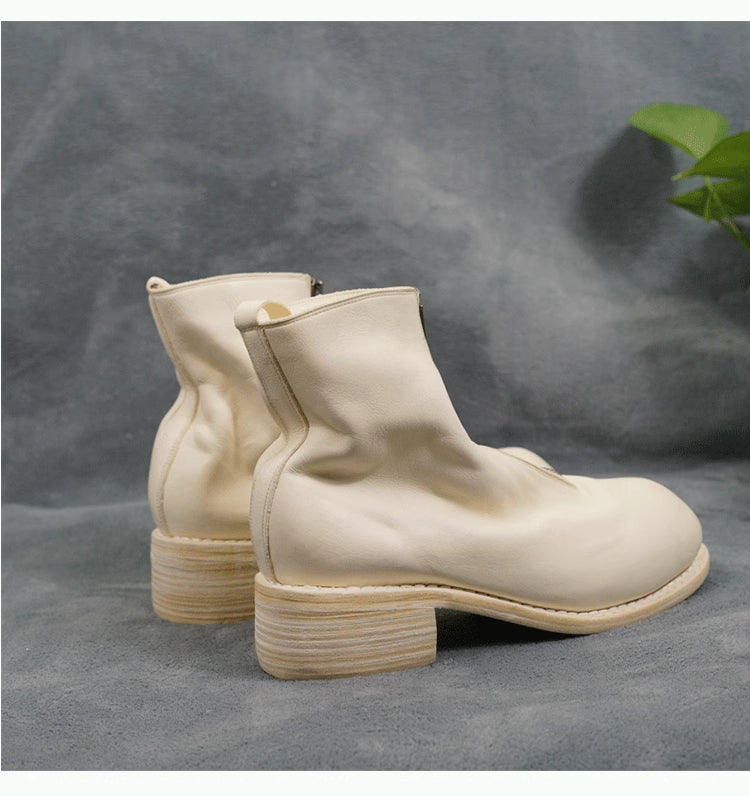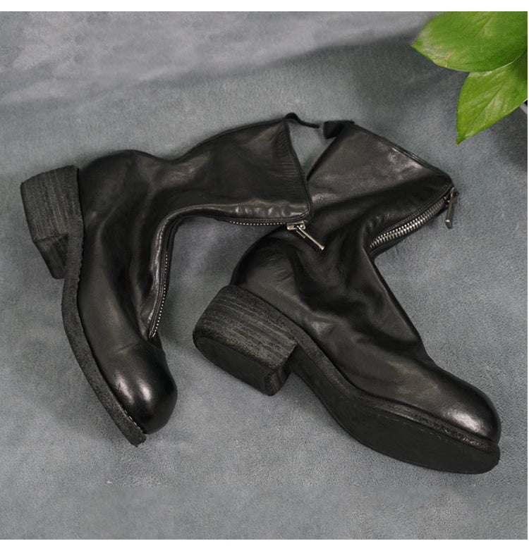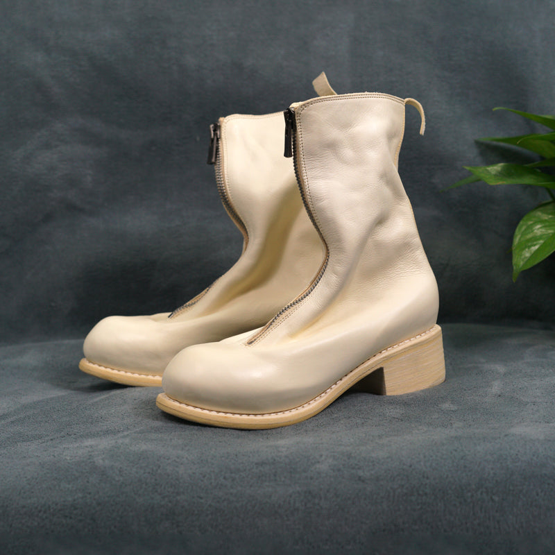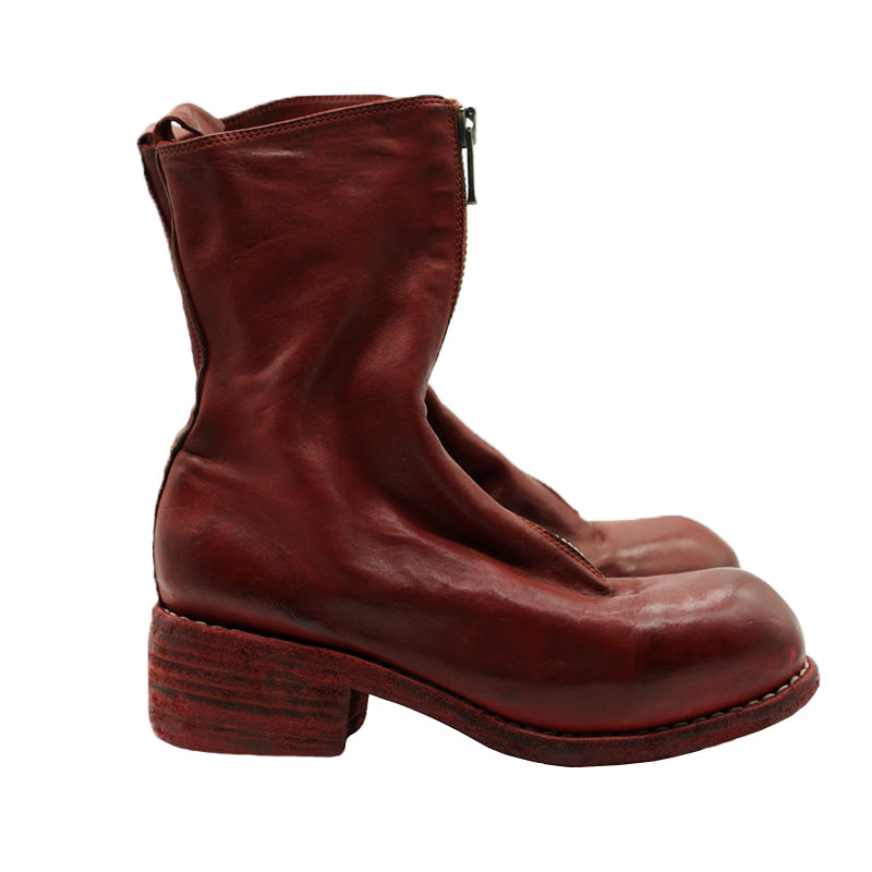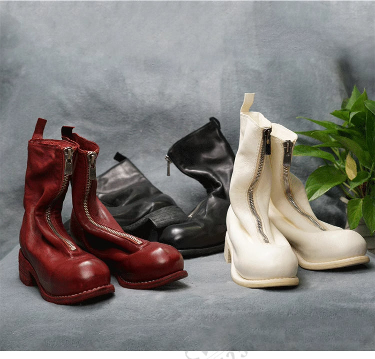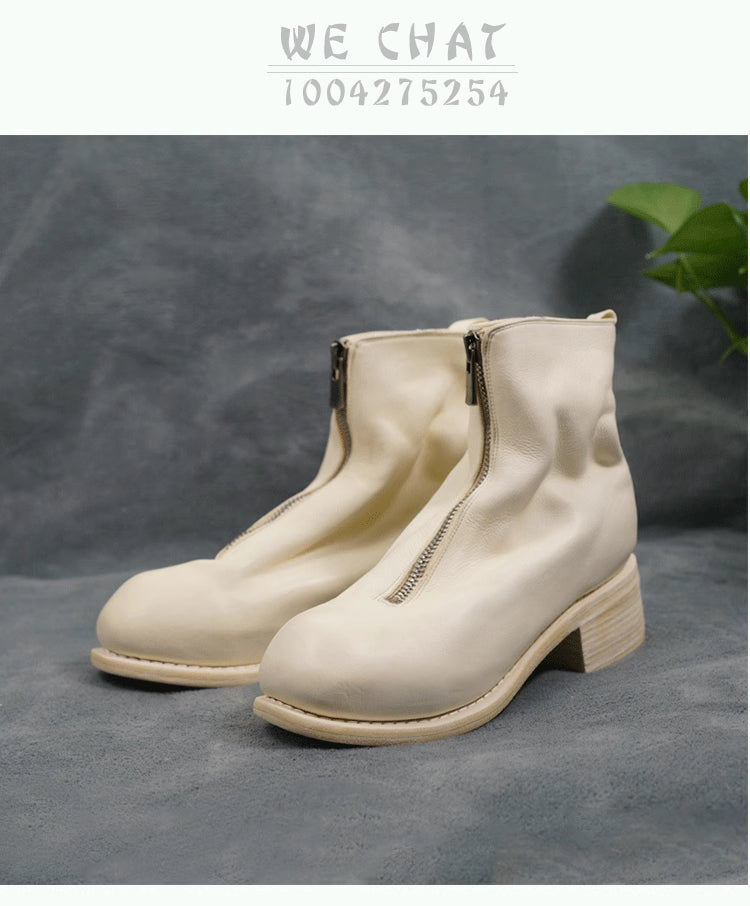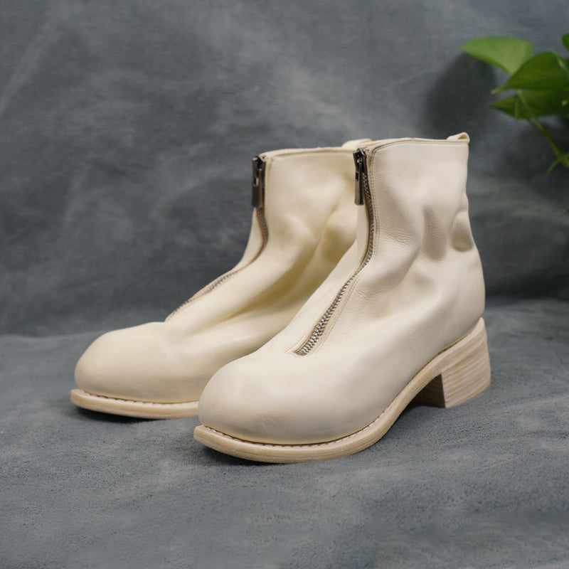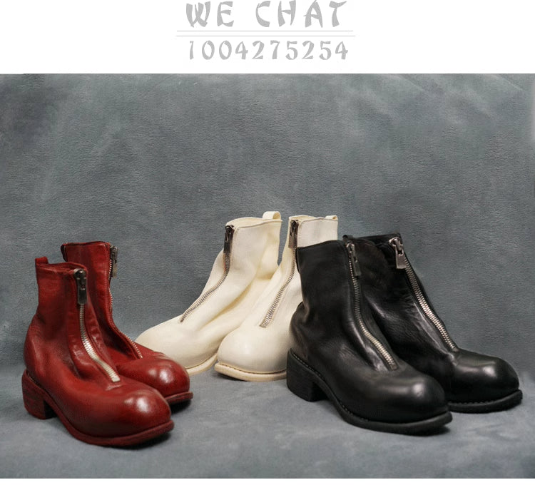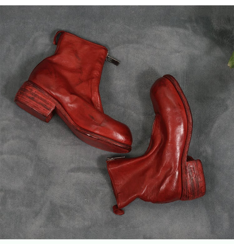 Self-made Guidi Horse Leather Distressed Chunky Heel Mid-Calf Ankle Boots PL1/2 Front-Zip