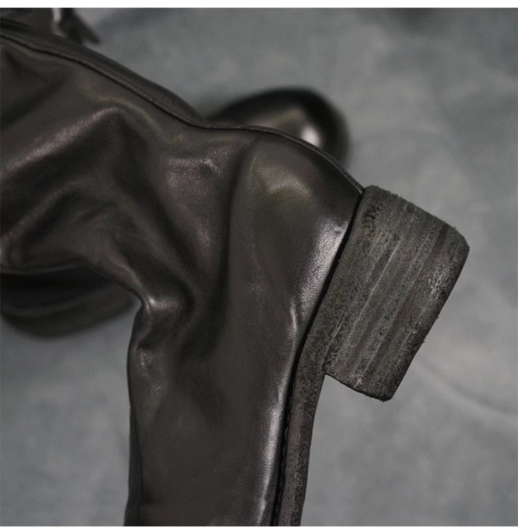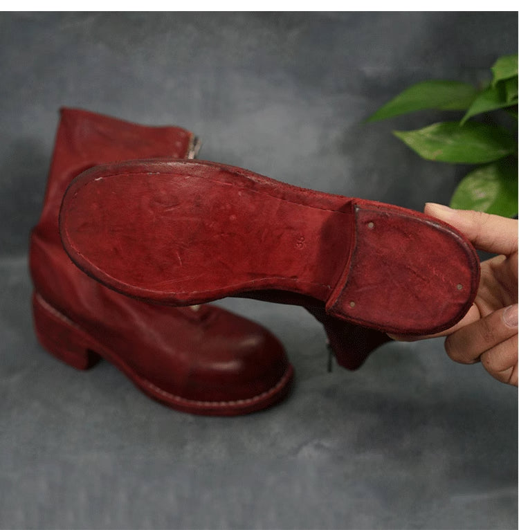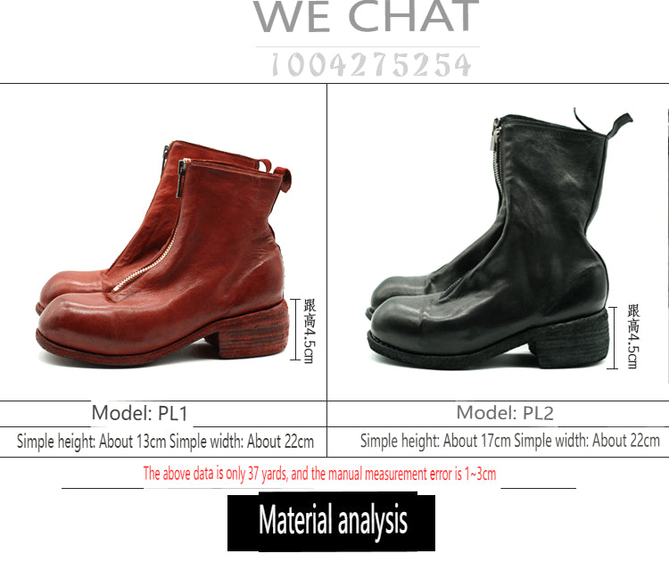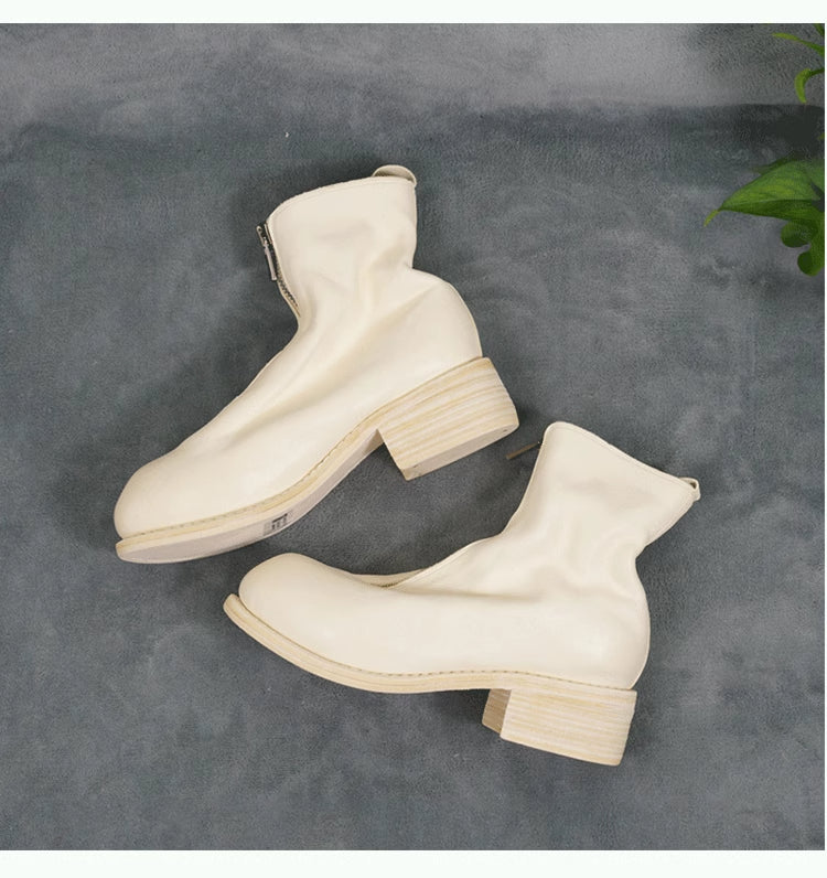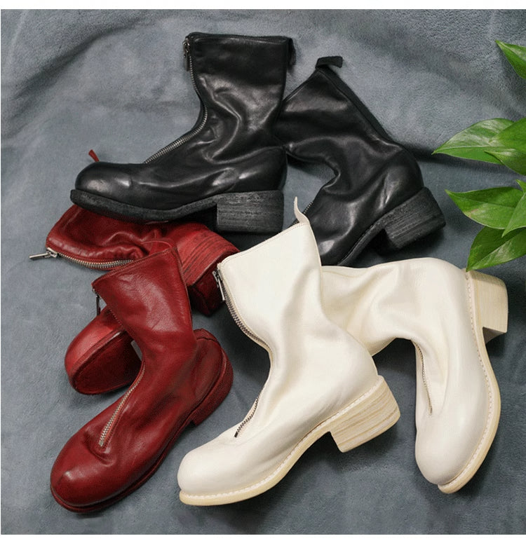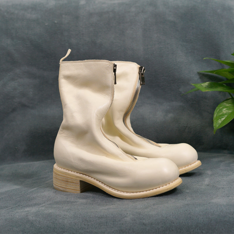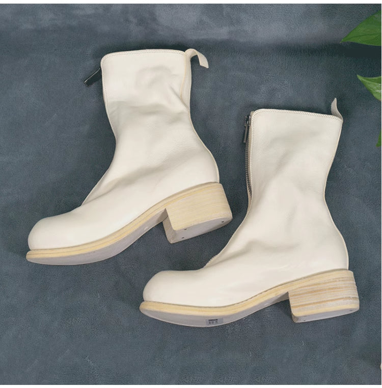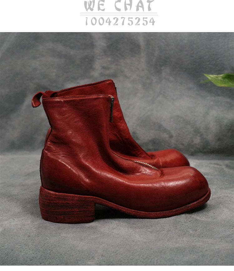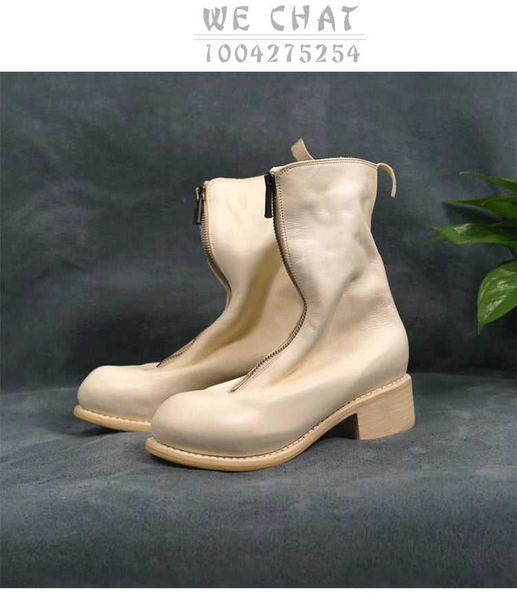 Self-made Guidi Horse Leather Distressed Chunky Heel Mid-Calf Ankle Boots PL1/2 Front-Zip