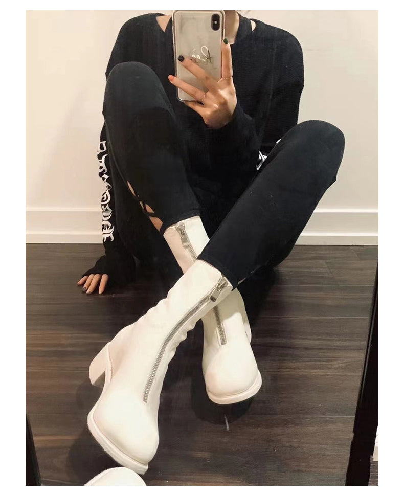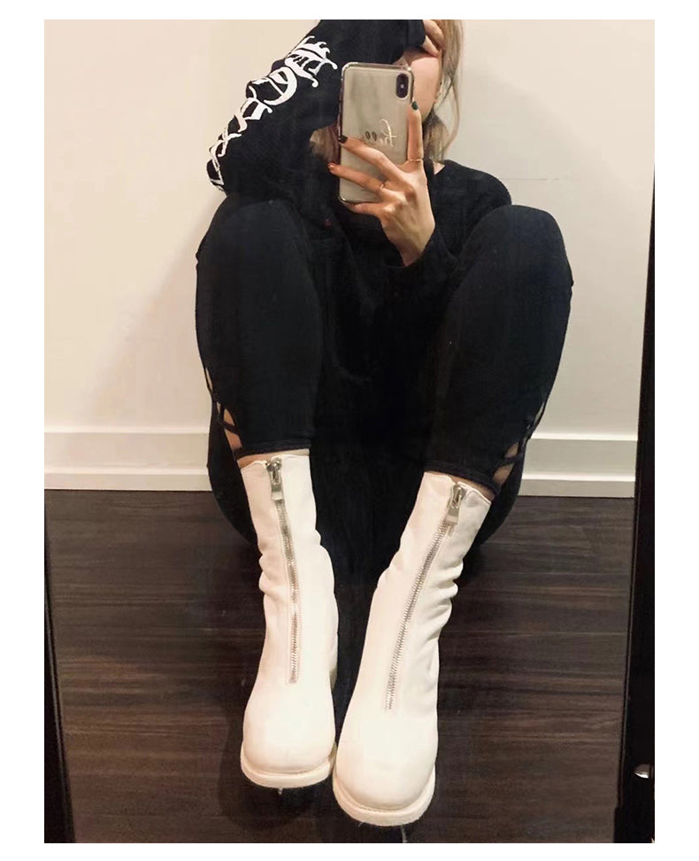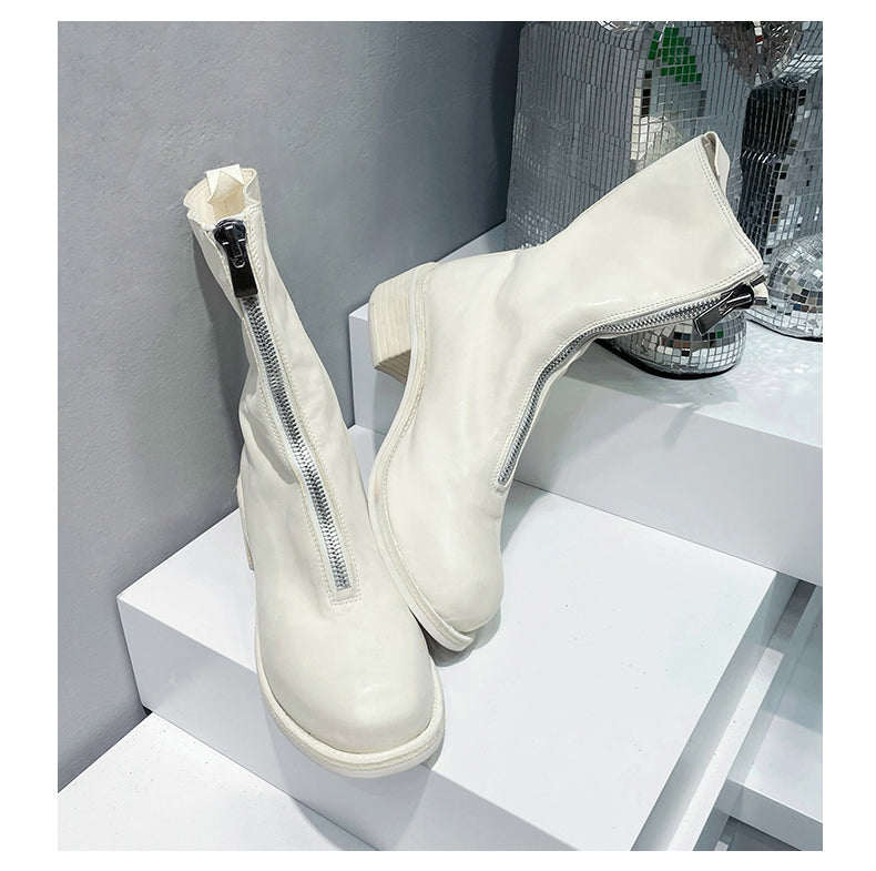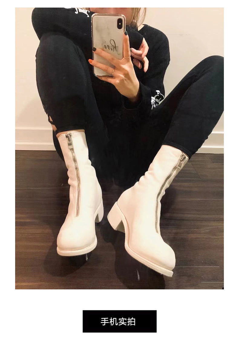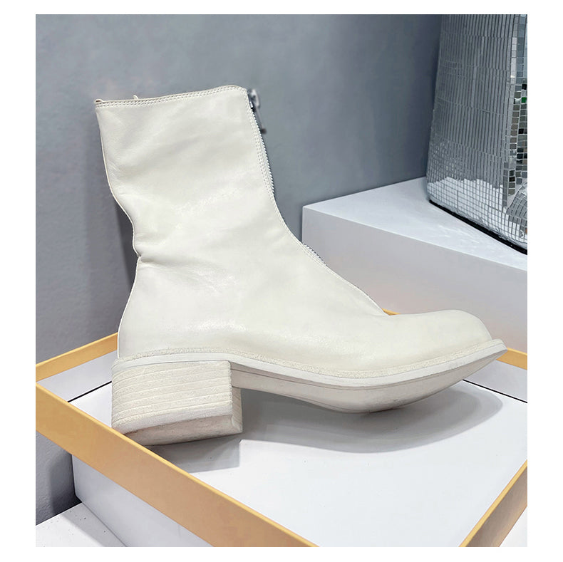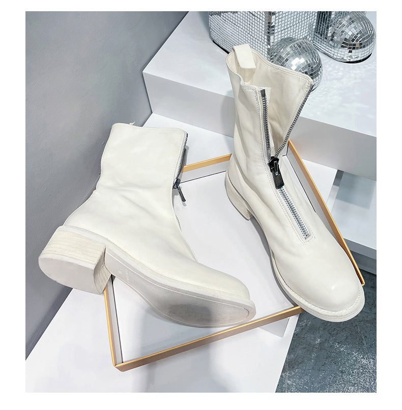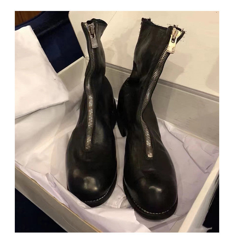 Self-made Guidi Leather Boots Men's Front-Zip Chelsea Boots with Thick Soles