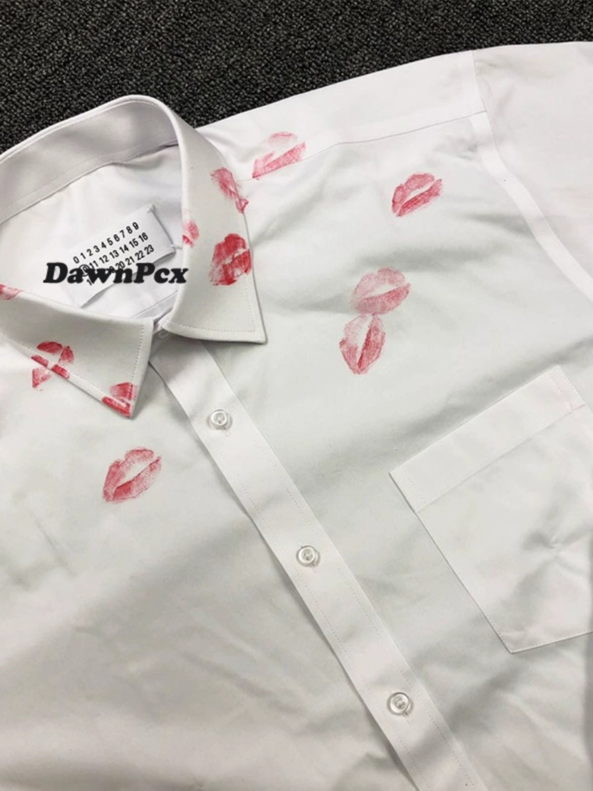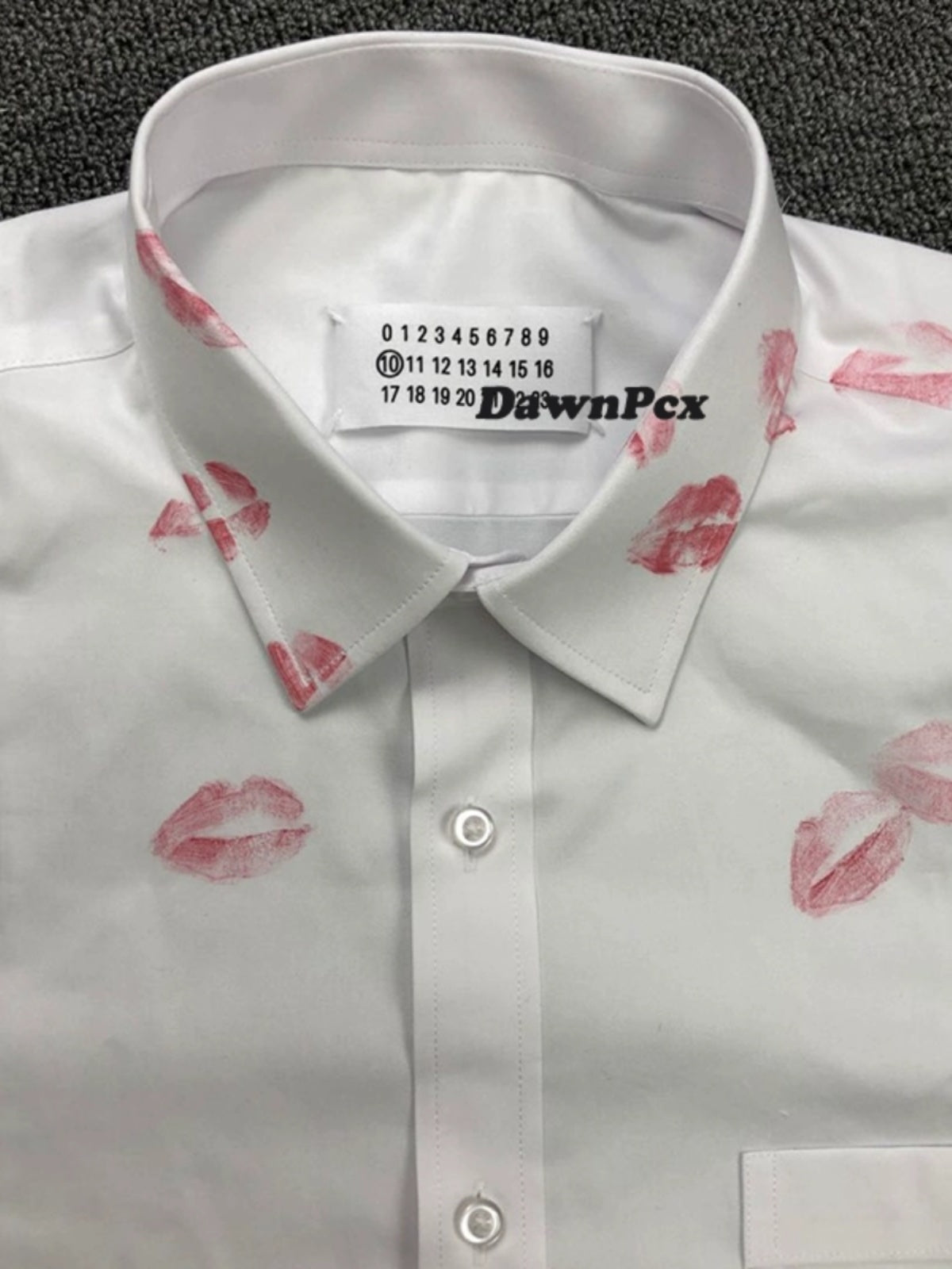 Self-made Maison Red Lips Print Shirt - Pure Cotton Margiela External Stitching