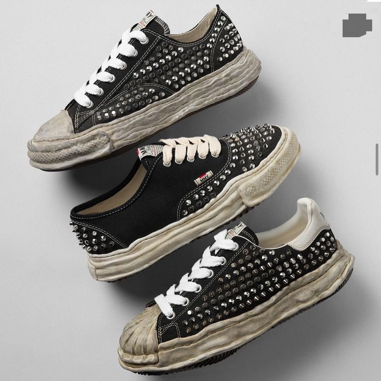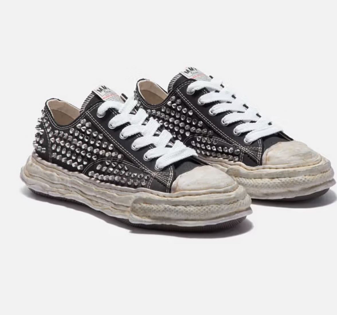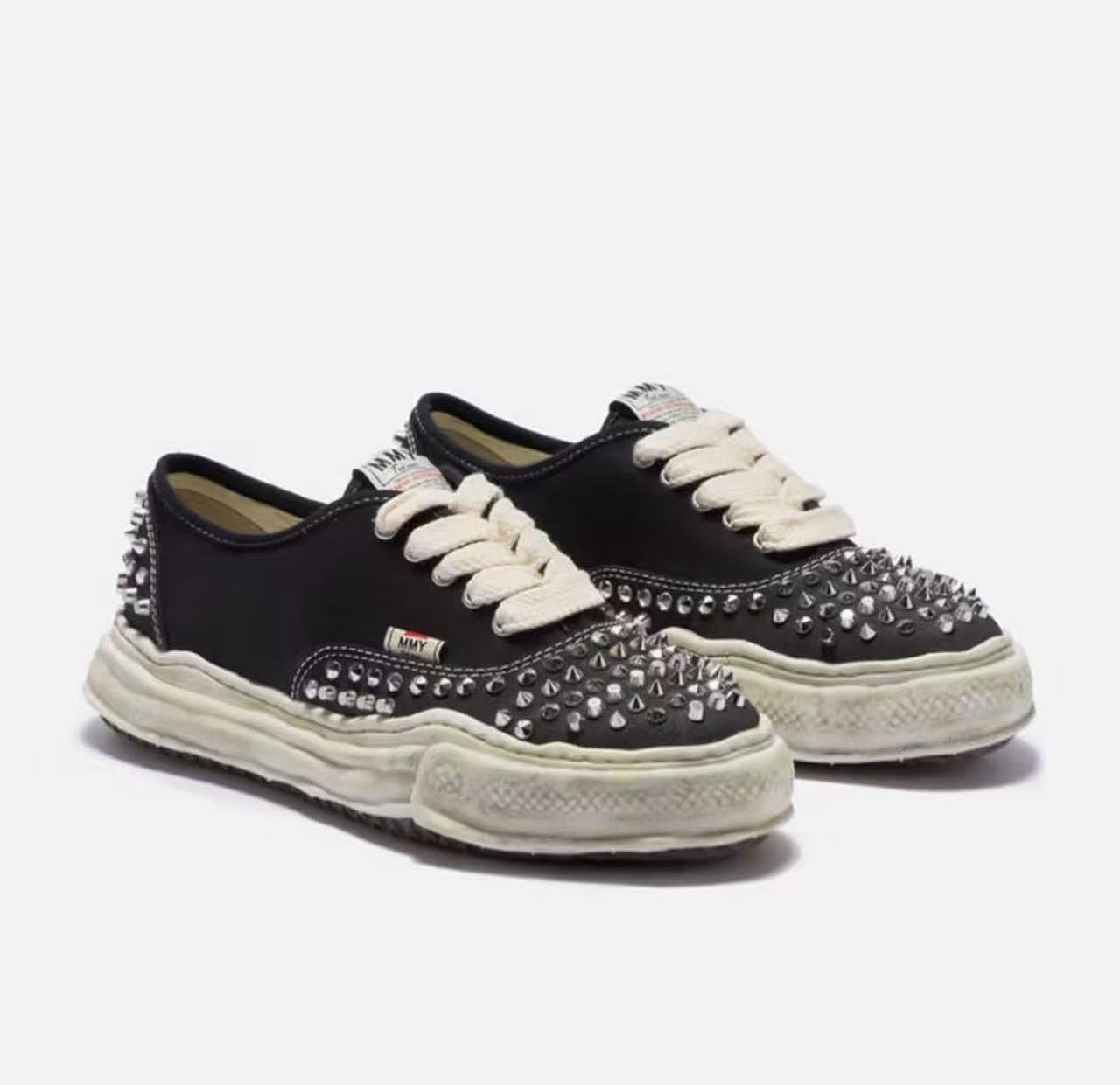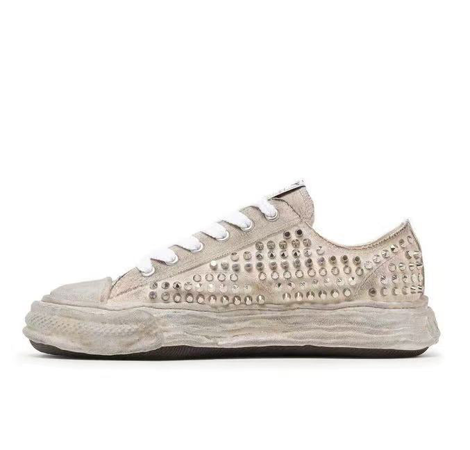 Self-made Mihara MMY A13FW736 Studded Distressed Sneakers Melting Canvas Shoes