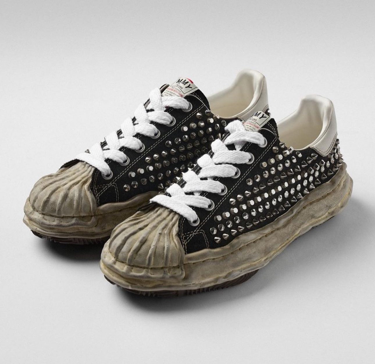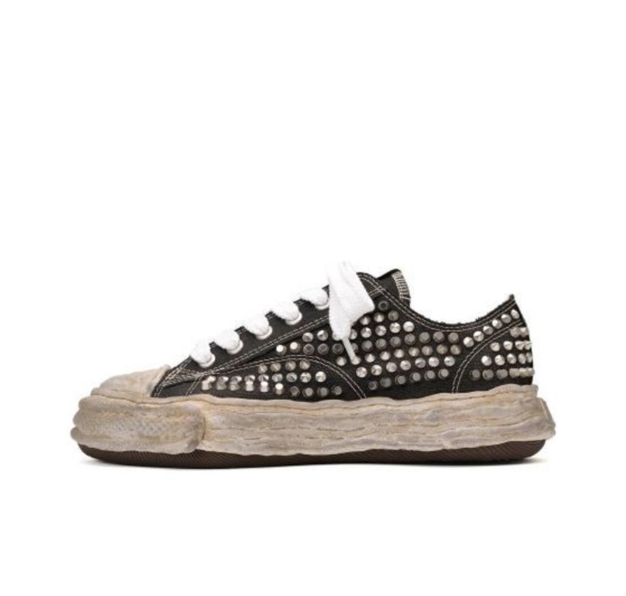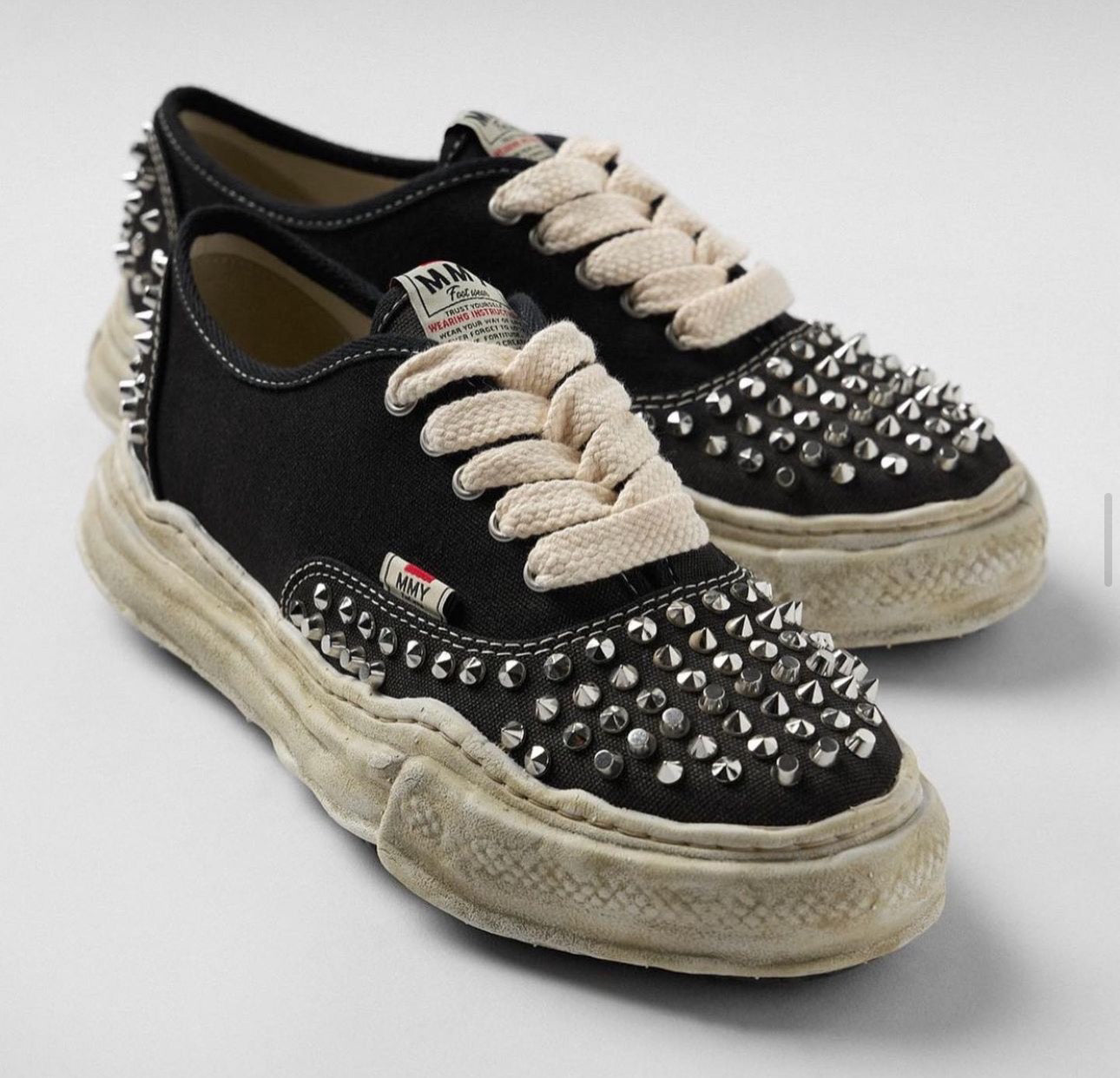Self-made Mihara MMY A13FW736 Studded Distressed Sneakers Melting Canvas Shoes