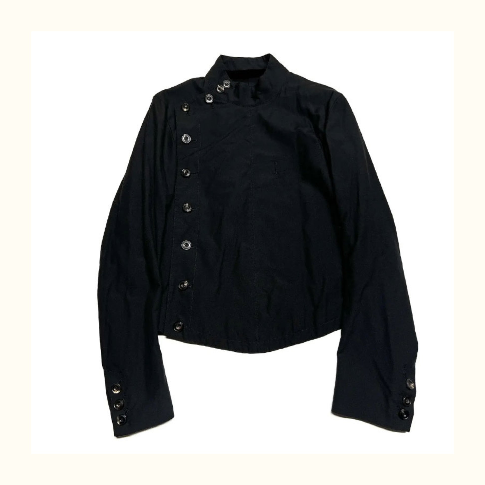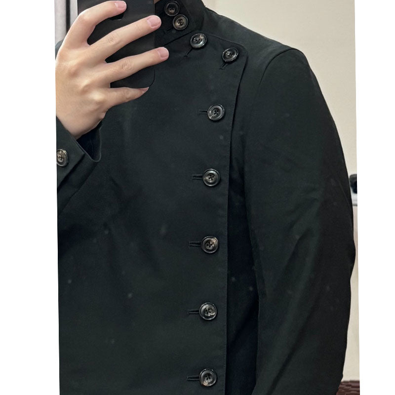 This tailored button fencing jacket was created by renowned fashion designer Takahiro Miyashita for his 17SS collection. The self-made craftsmanship ensures high quality and a unique design. Style meets functionality with this must-have piece for any fashion-forward individual.