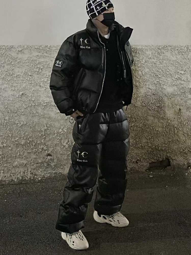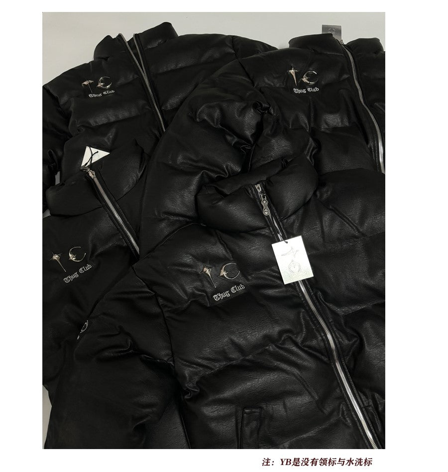 Self-made Thug Club DRIP High-Street PU Leather Puffer Jacket - Opium Outerwear