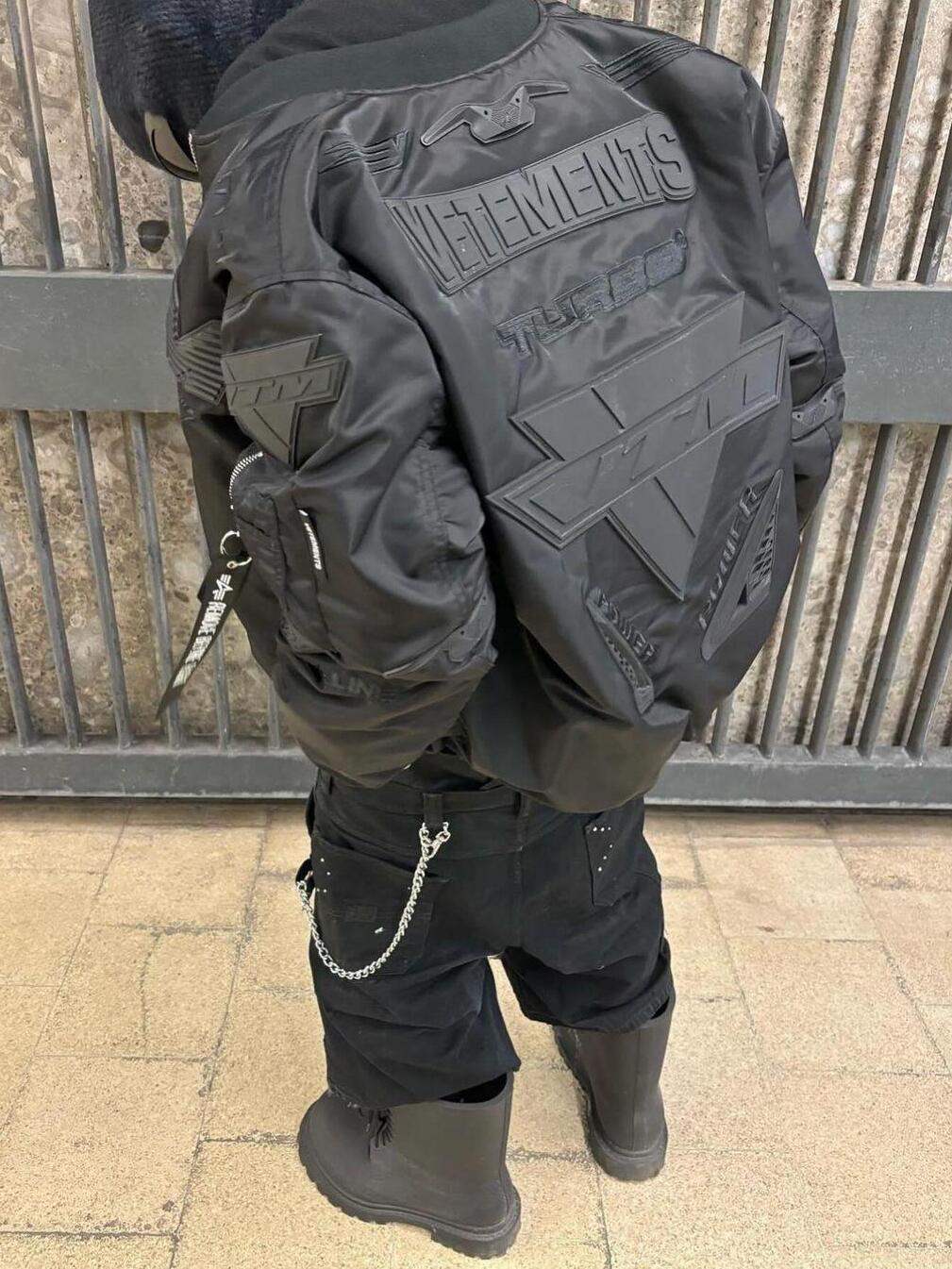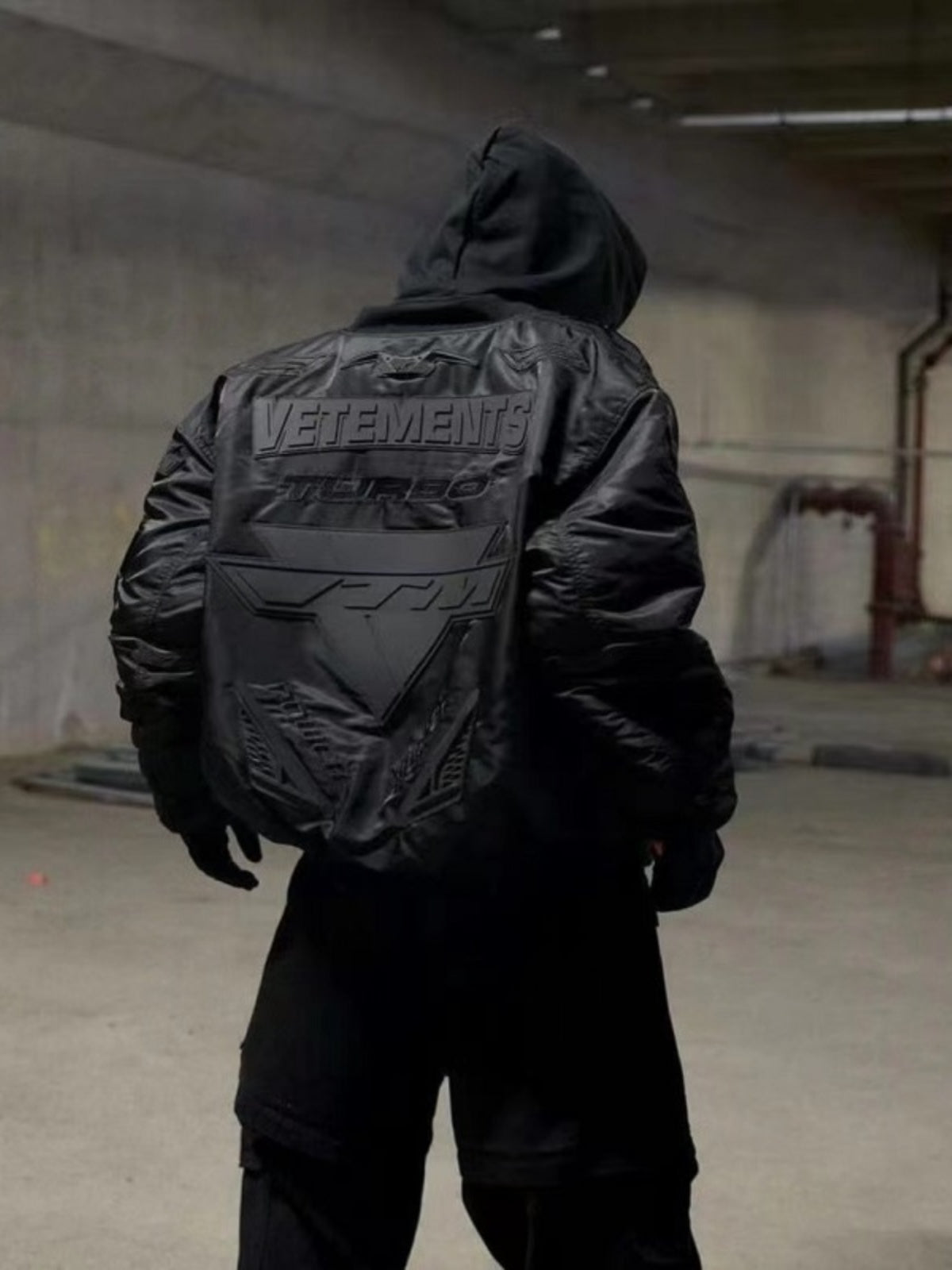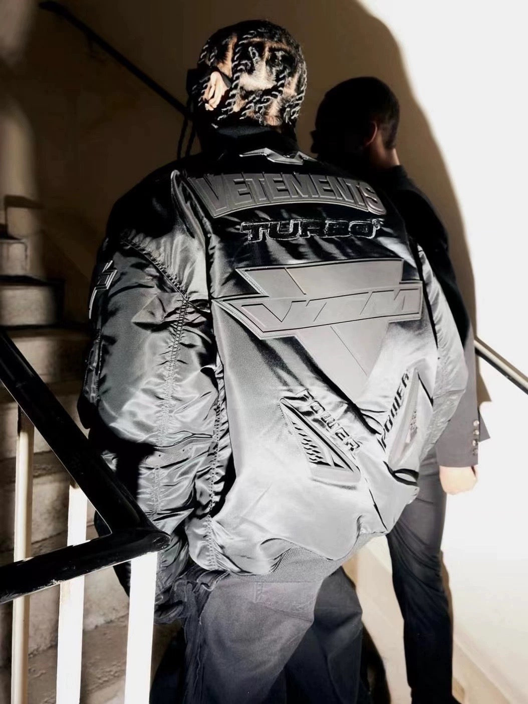 Self-made Vetements 23FW Alpha Black Race Car Air Force Jacket Cotton Bomber