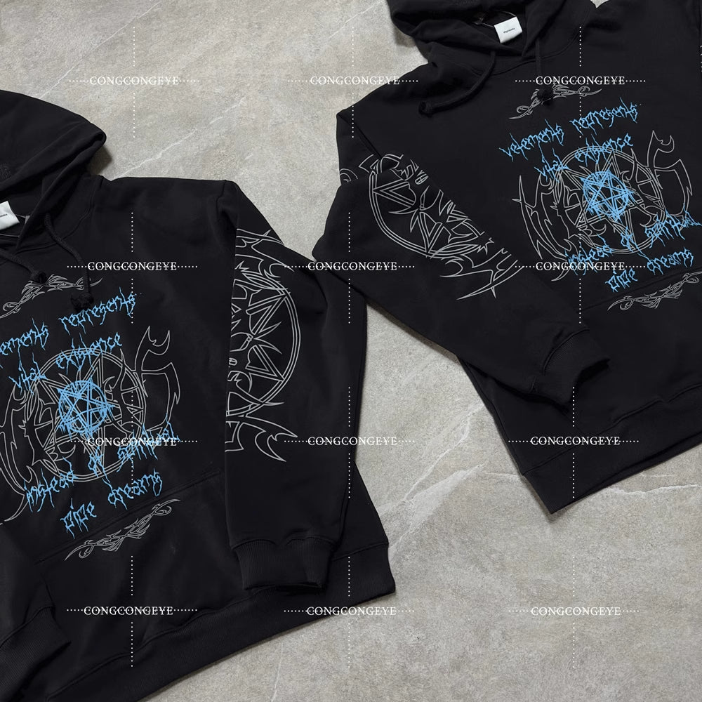 Self-made Vetements VTM 22SS Gothic Rage Hoodie Pentagram - Sanskrit Embroidery