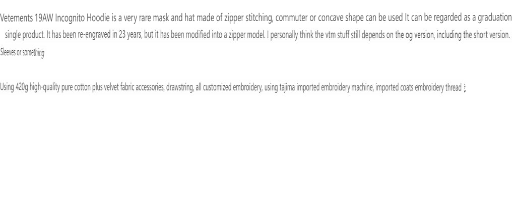 Self-made Vetements 19FW Incognito Hoodie – Masked Design Travis Scott Edition