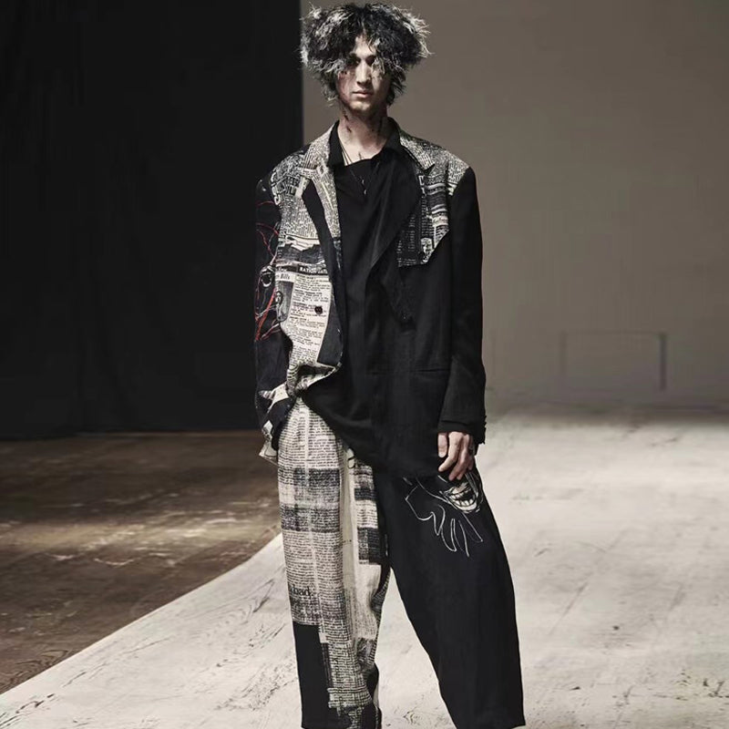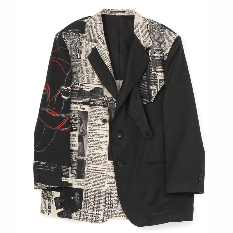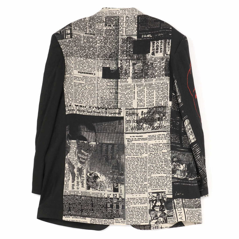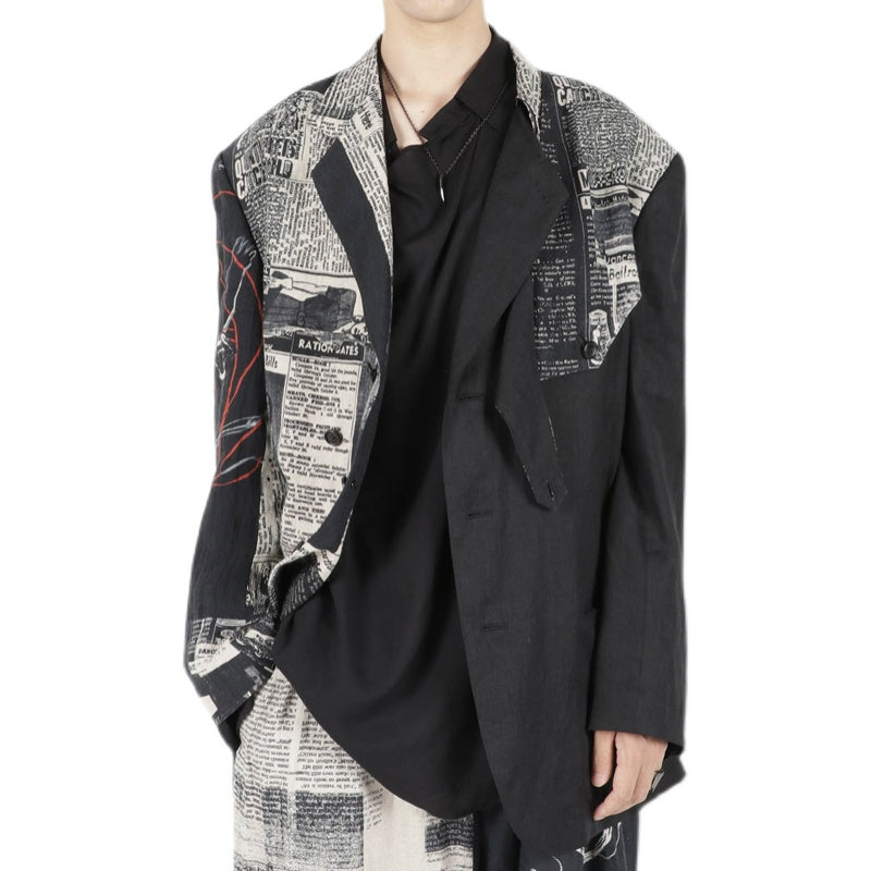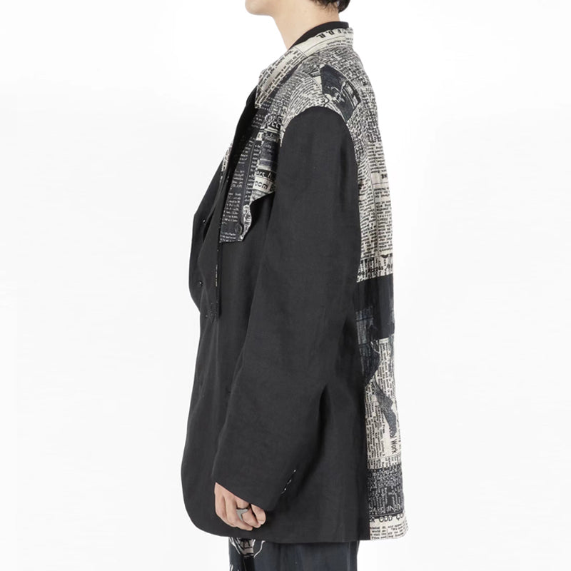 Self-made Yohji 23AW Newspaper Print Blazer - Casual Loose Black Suit Jackets