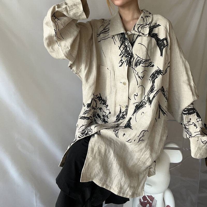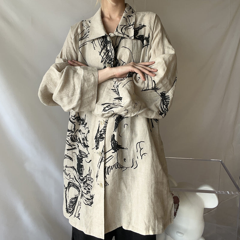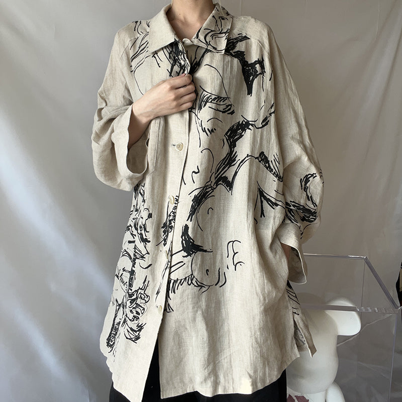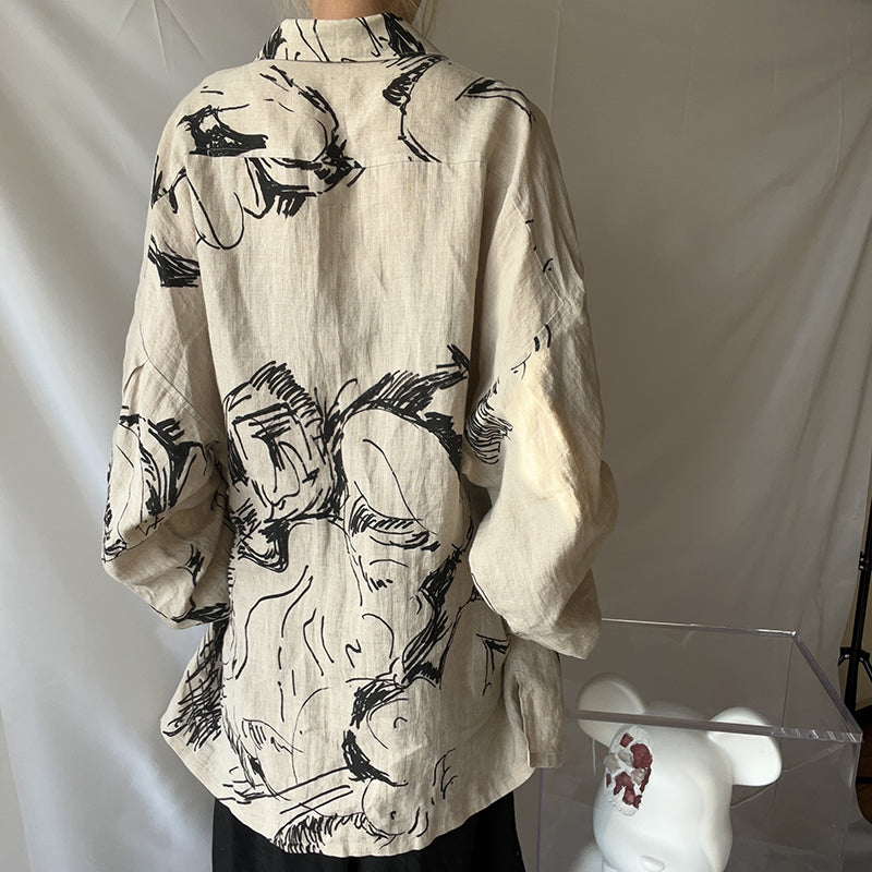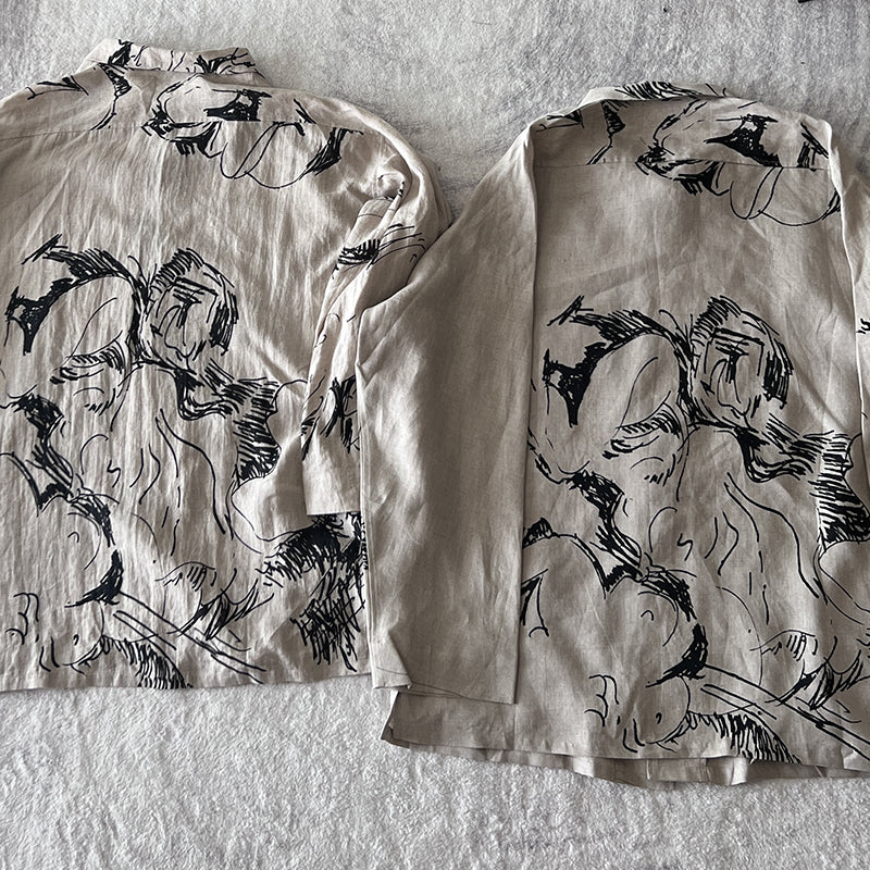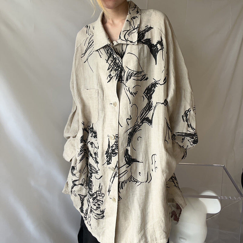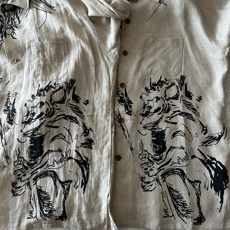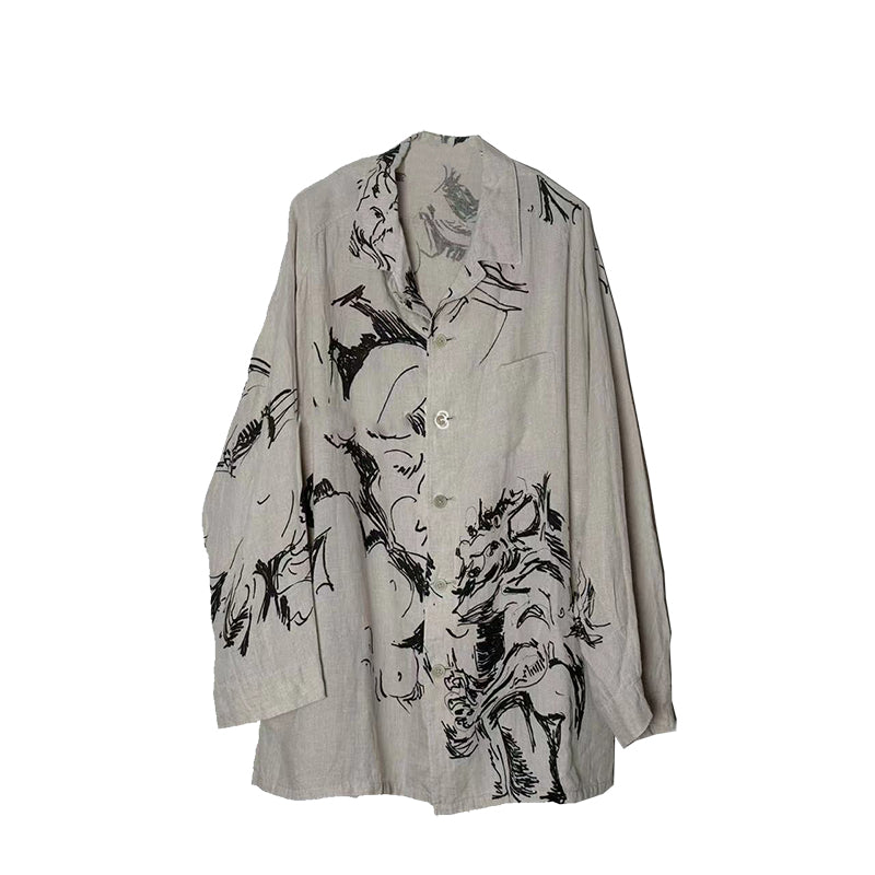 Self-made Yohji Linen Shirt – Yuuka Asakura Yamamoto Hand-Painted Beast Motif