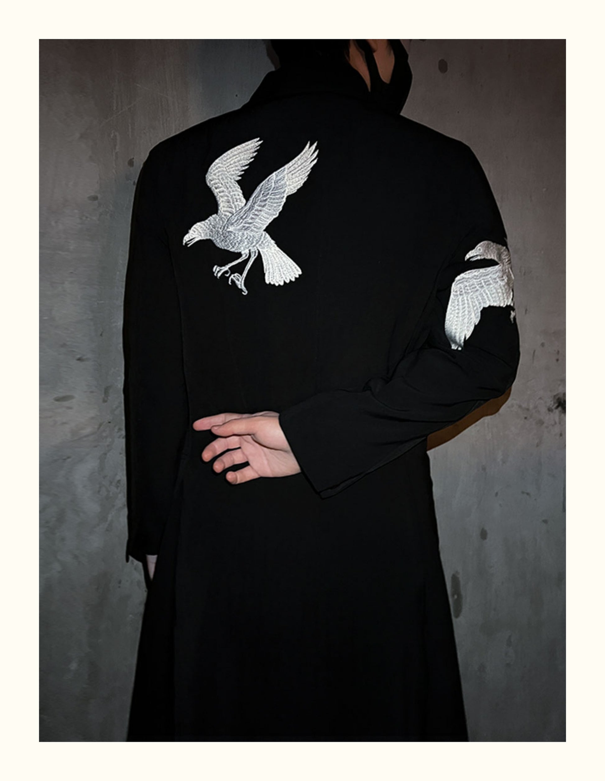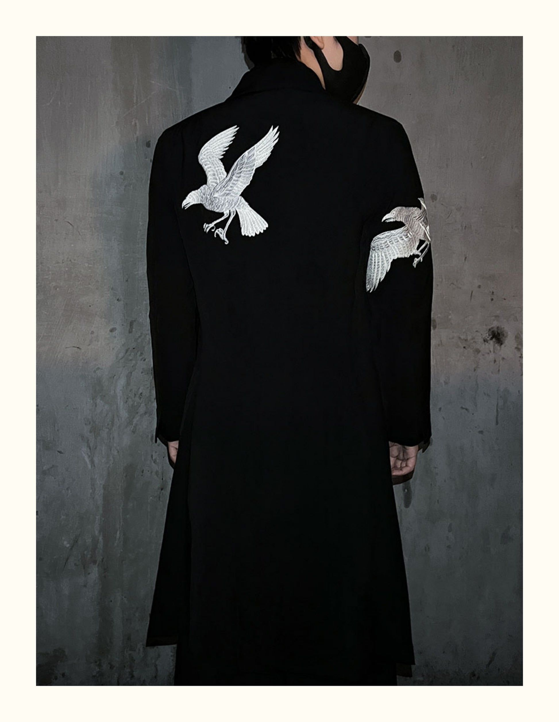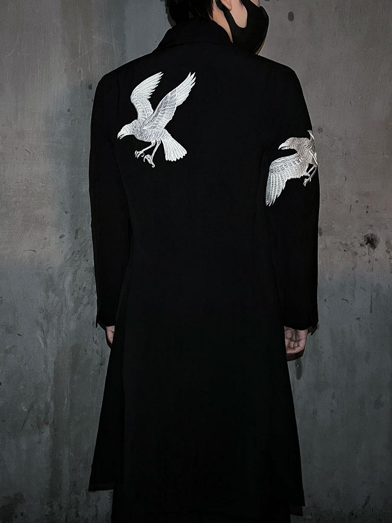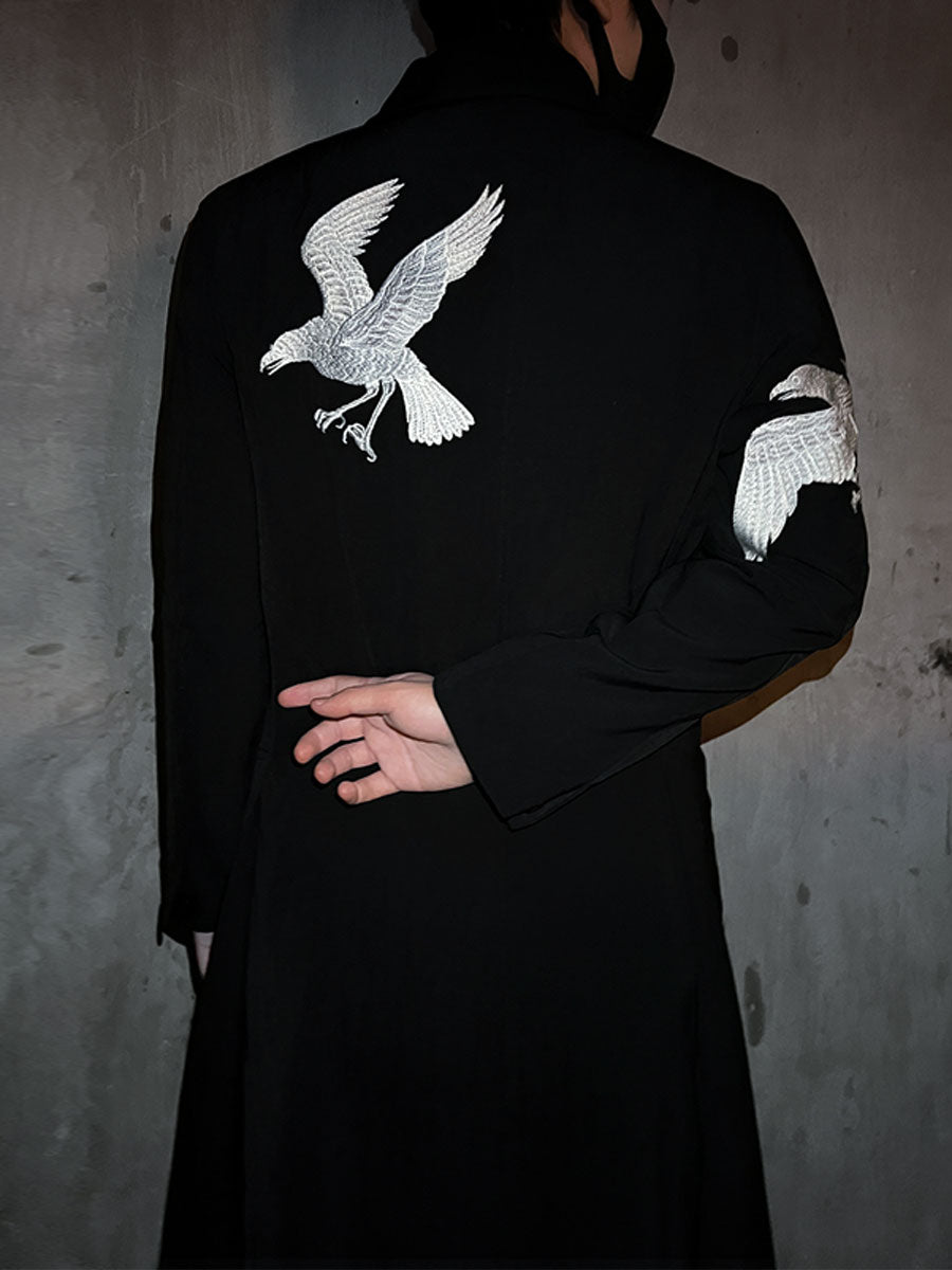 Self-made Yohji Yamamoto Dark 21AW Long Blazer Coat Dual Crow Embroidery on Back