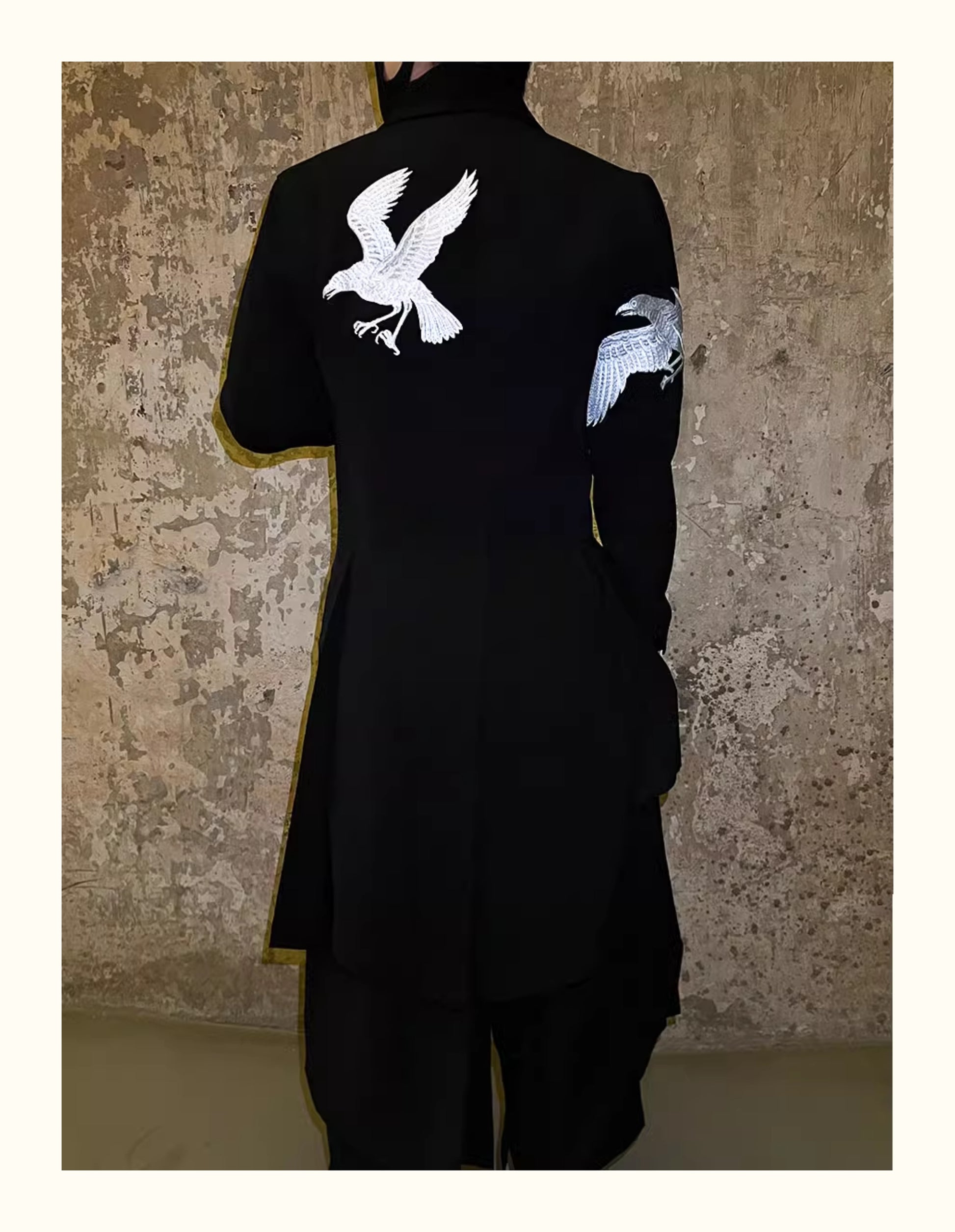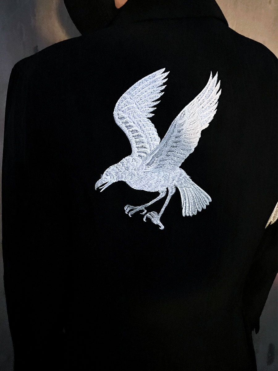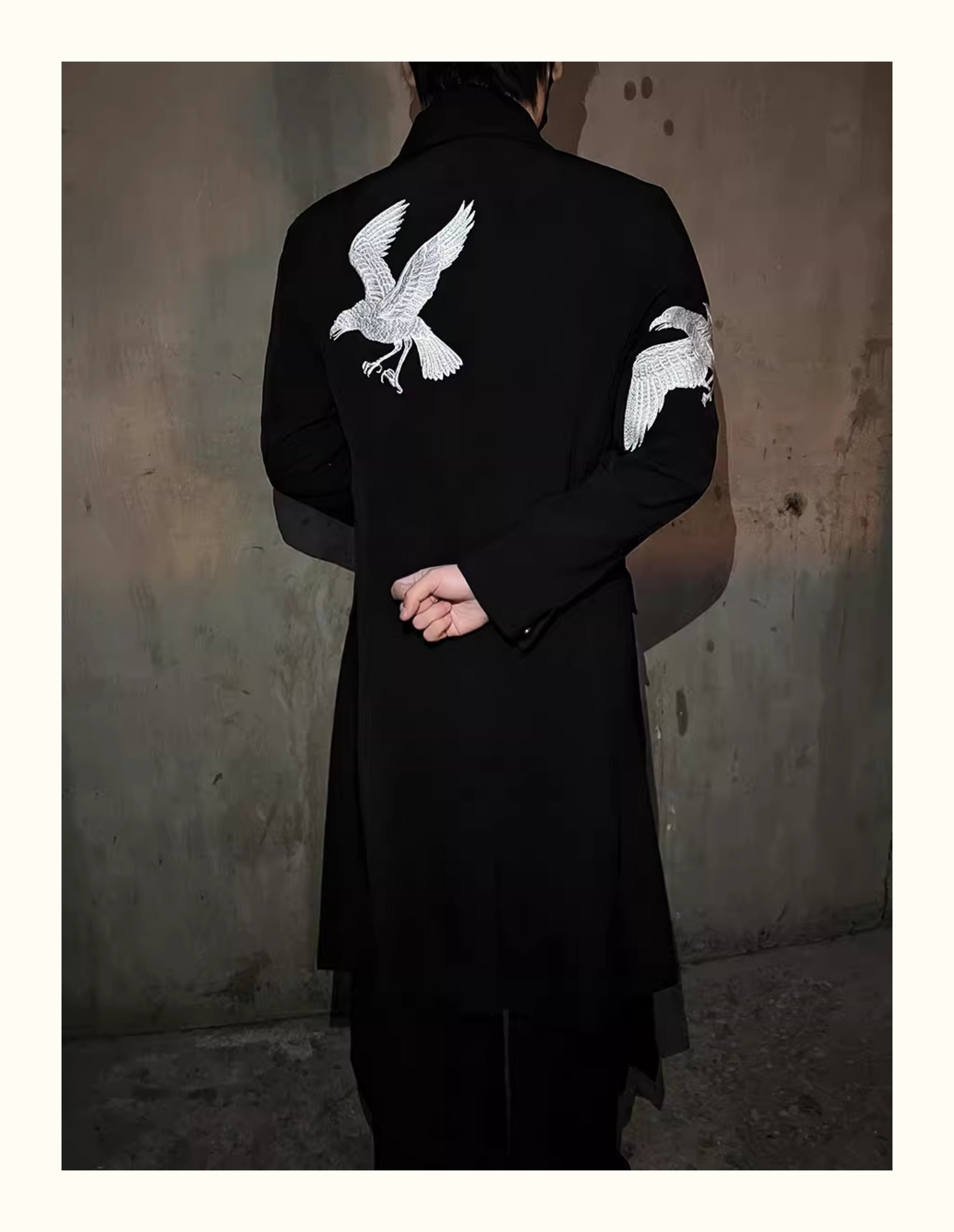 Self-made Yohji Yamamoto Dark 21AW Long Blazer Coat Dual Crow Embroidery on Back