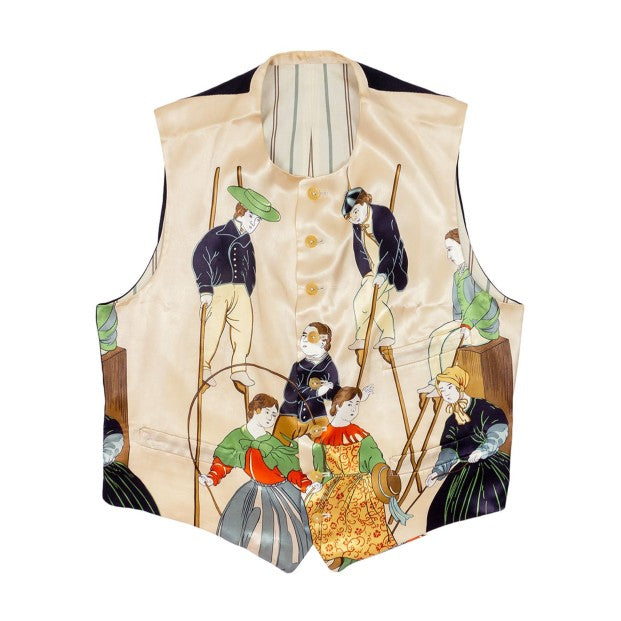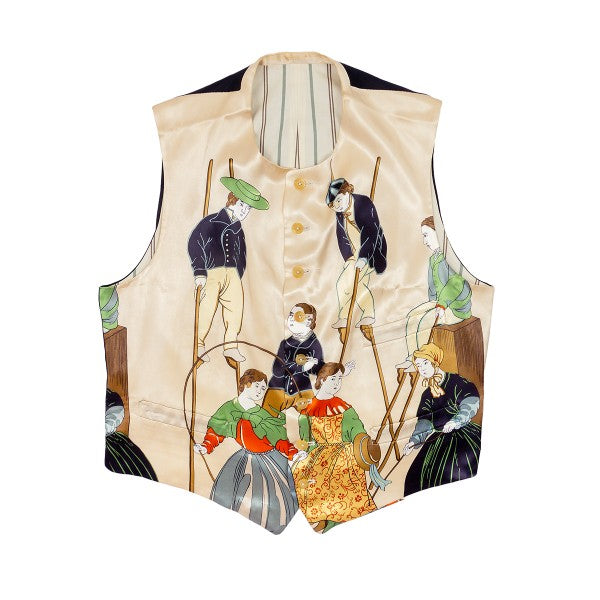 Self-made Yohji Yamamoto Dark Aesthetic Rokumeikan Silk Print Unisex Casual Vest