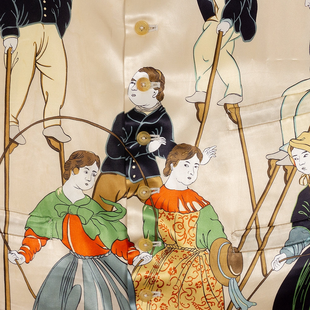 Expertly crafted by Yohji Yamamoto, this dark aesthetic Rokumeikan silk print vest is a must-have for fashion-forward individuals. Made with premium quality silk, this unisex vest exudes a sense of sophistication and edginess. Elevate your casual outfits with this self-made piece.