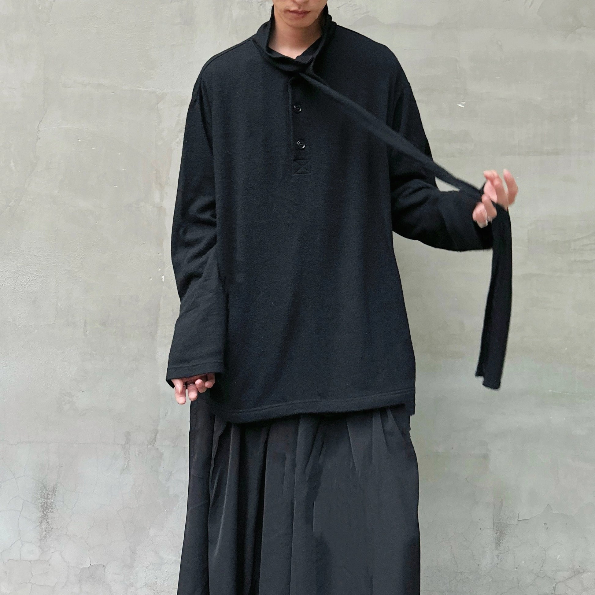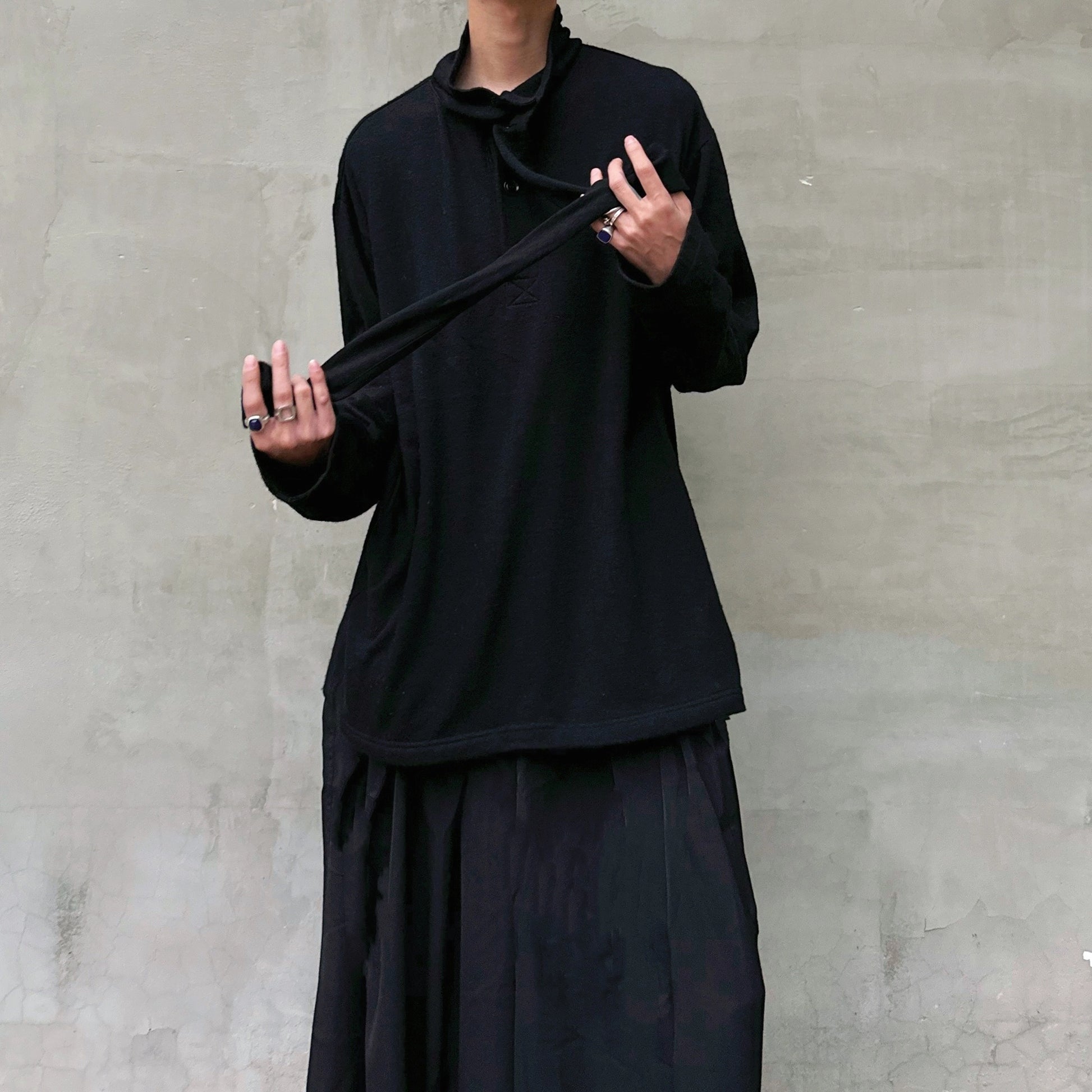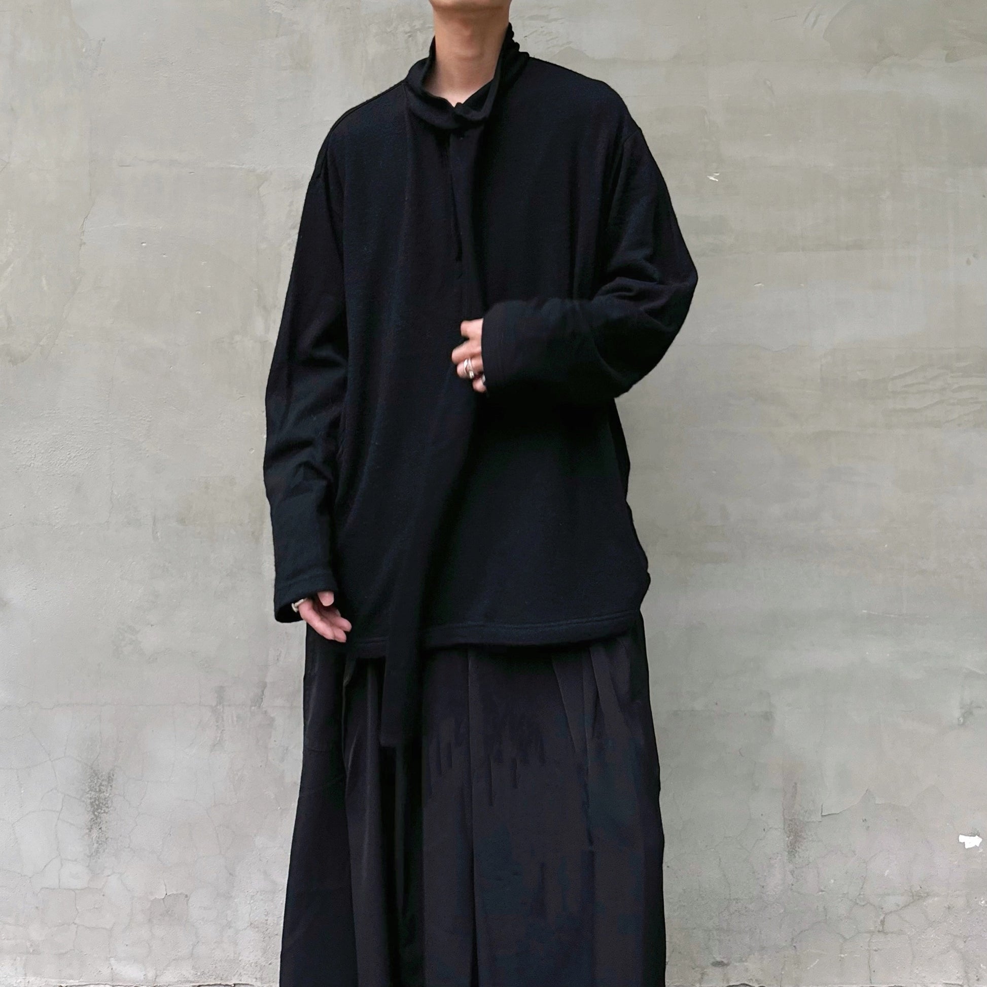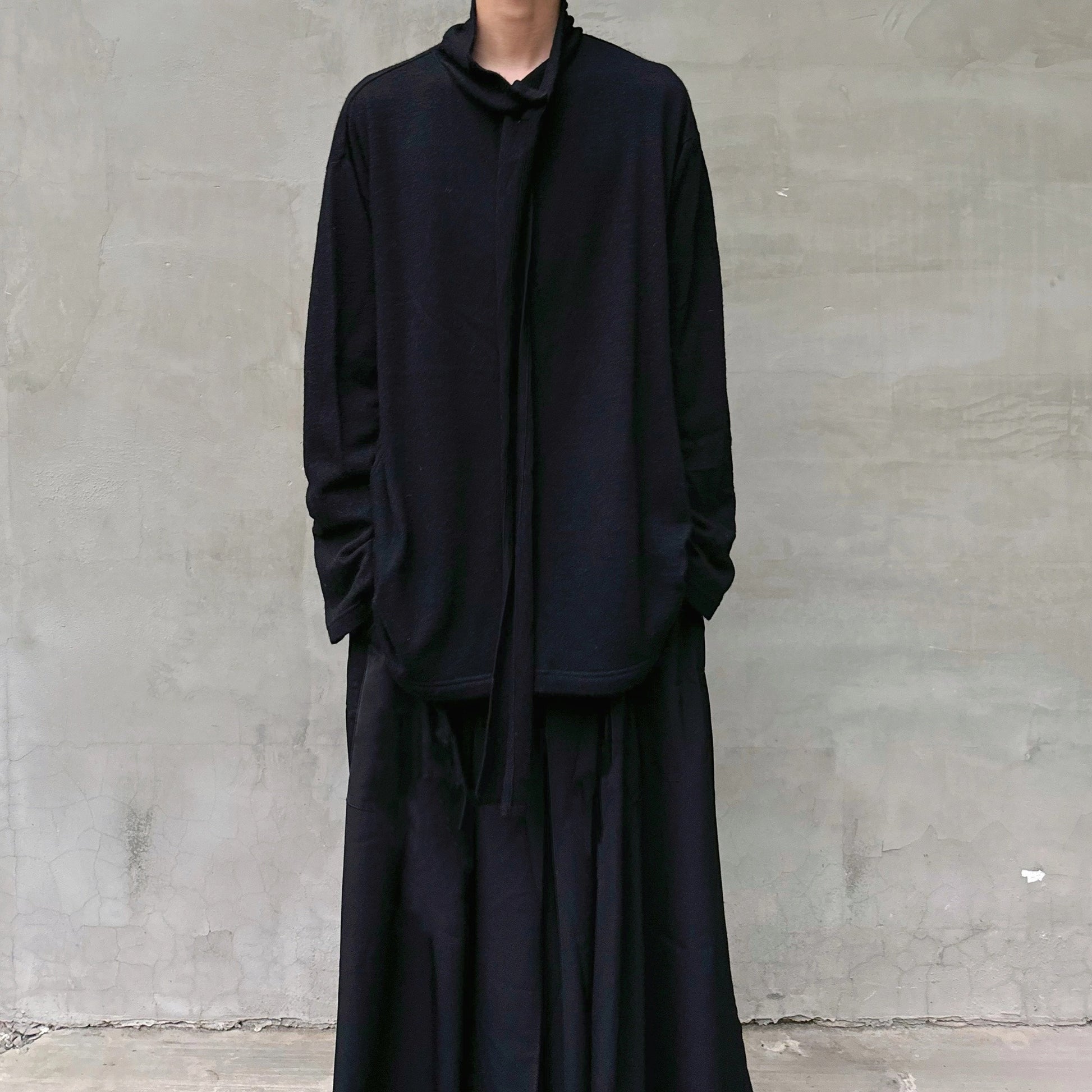 Self-made Yohji Yamamoto Merino Wool Knit Sweater Turtleneck Integrated Tie Scarf