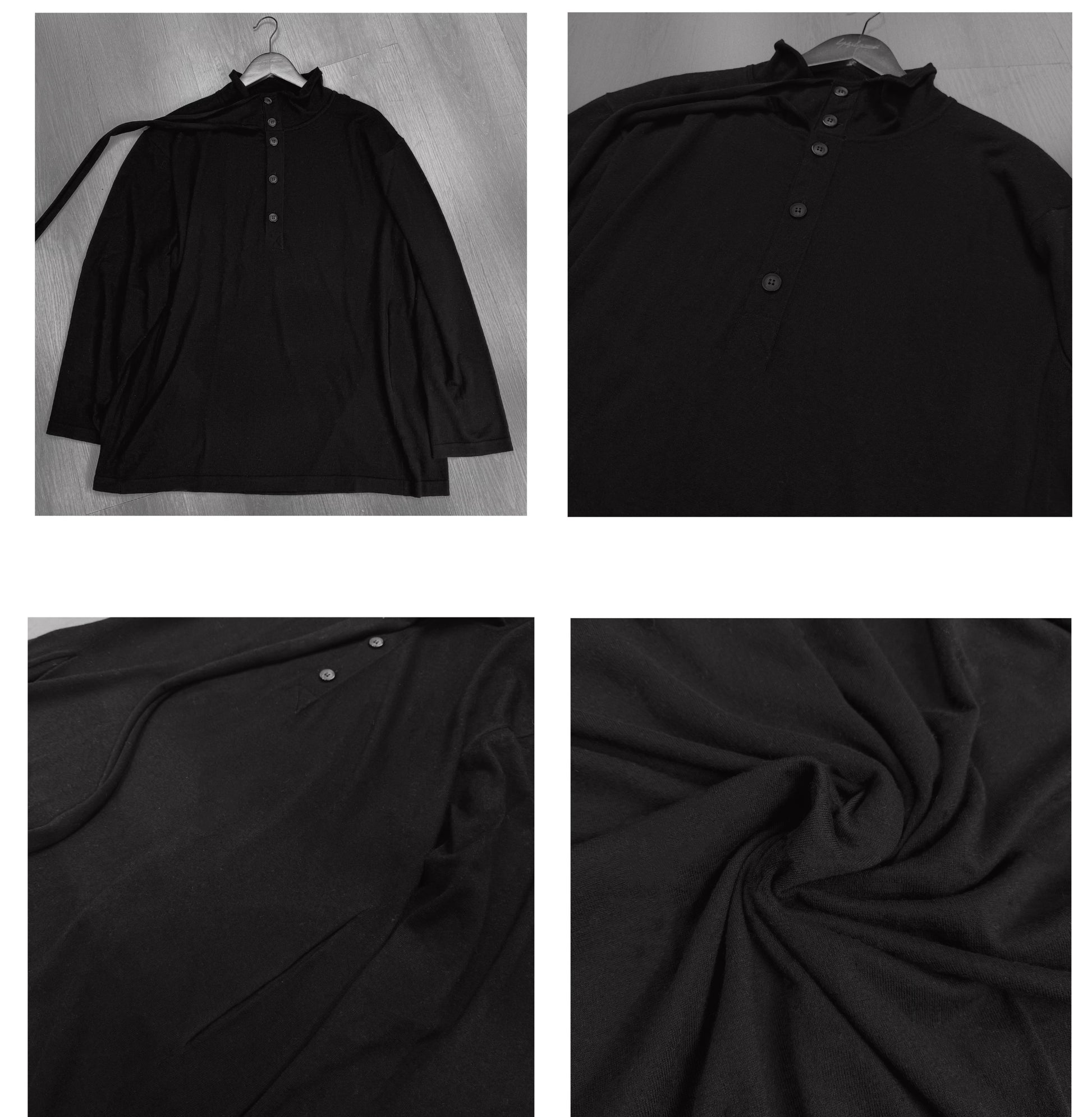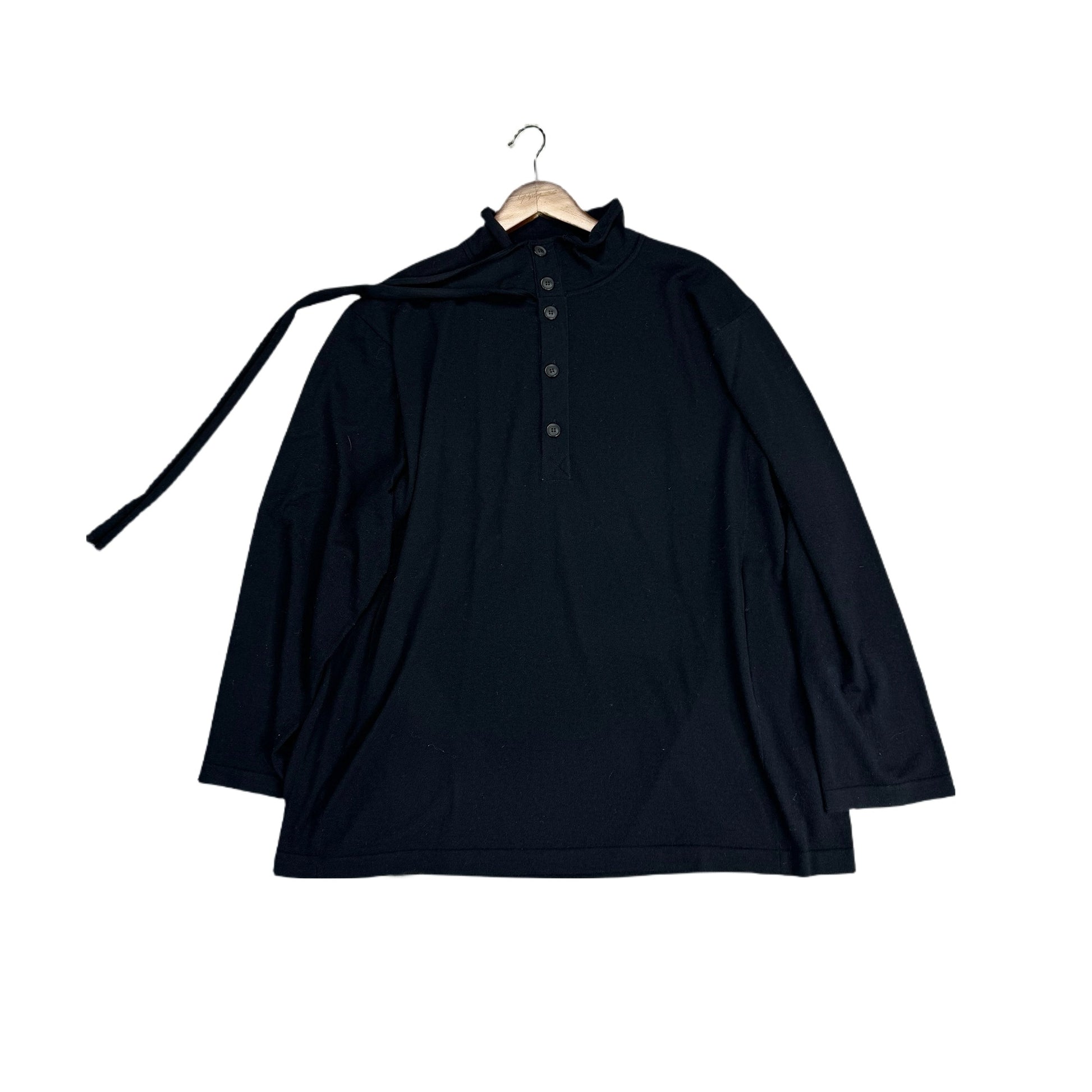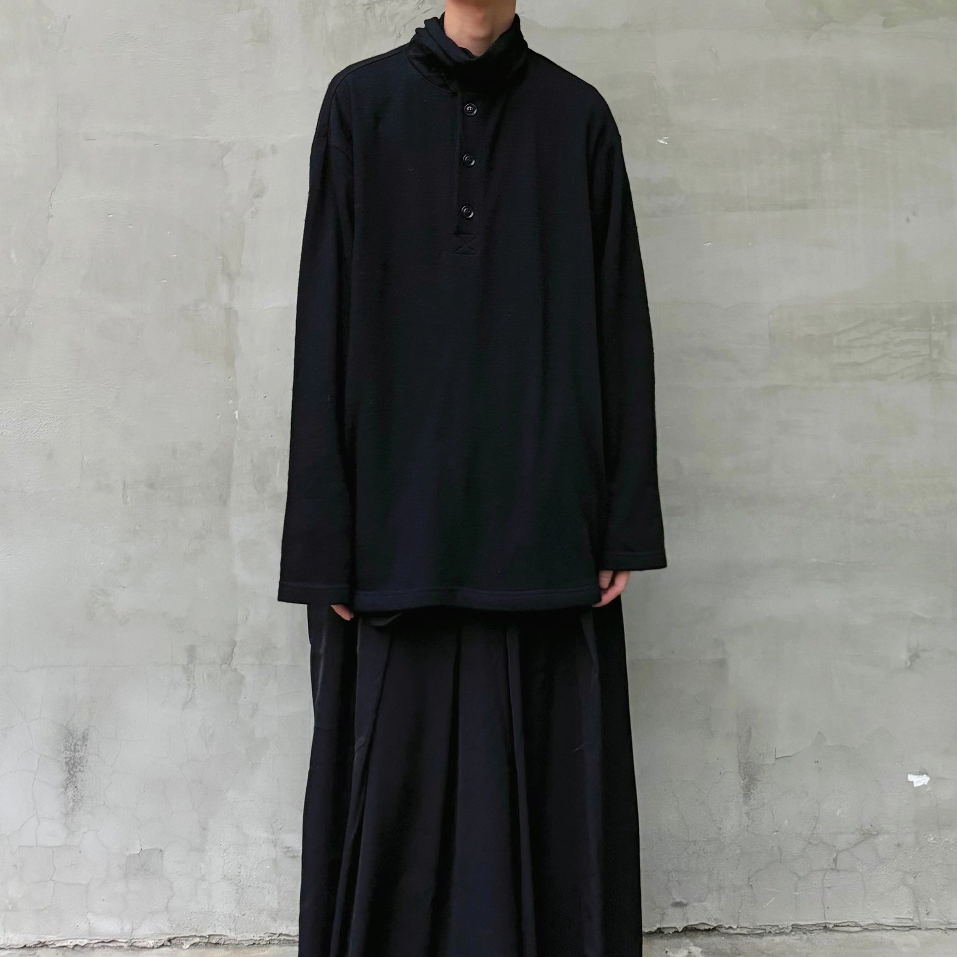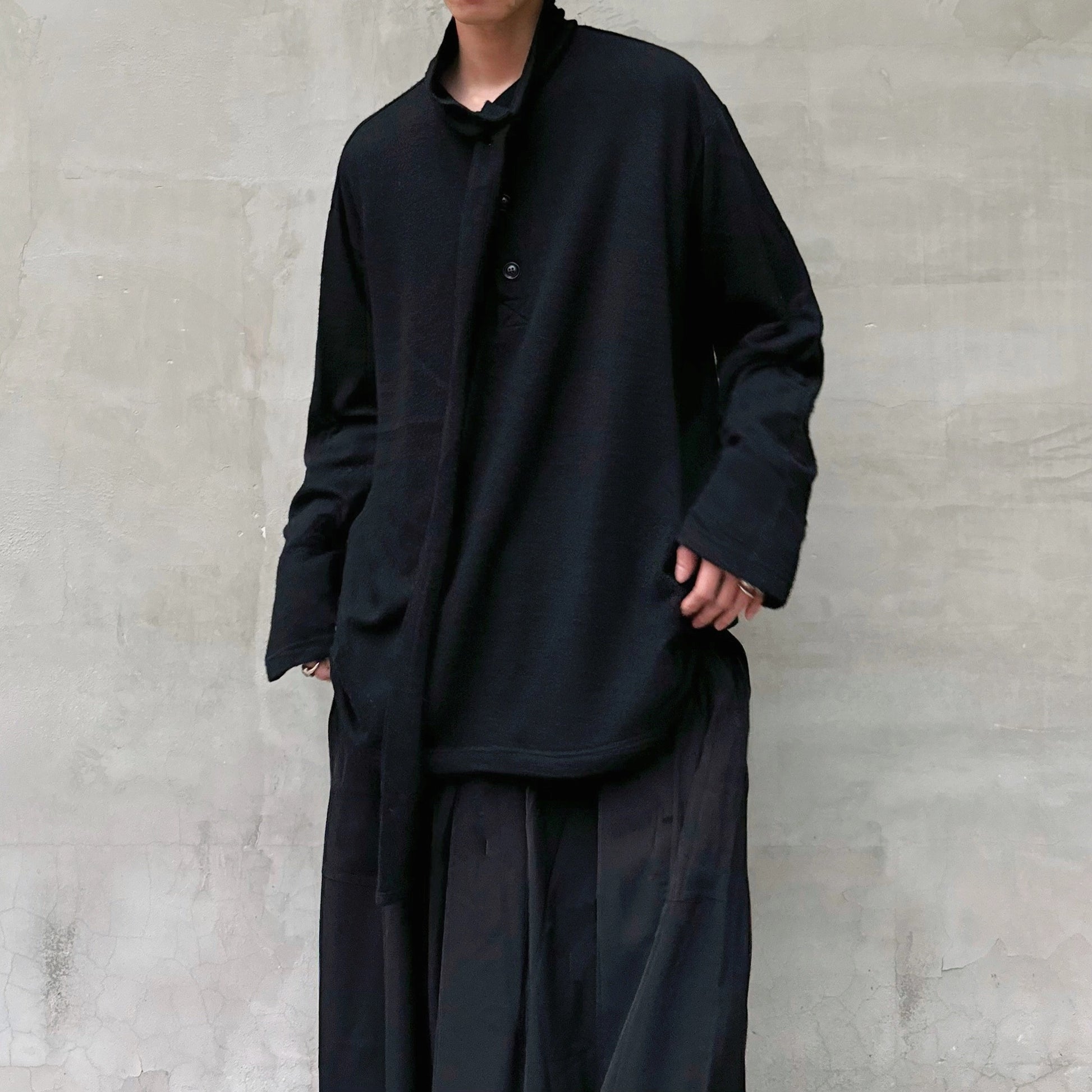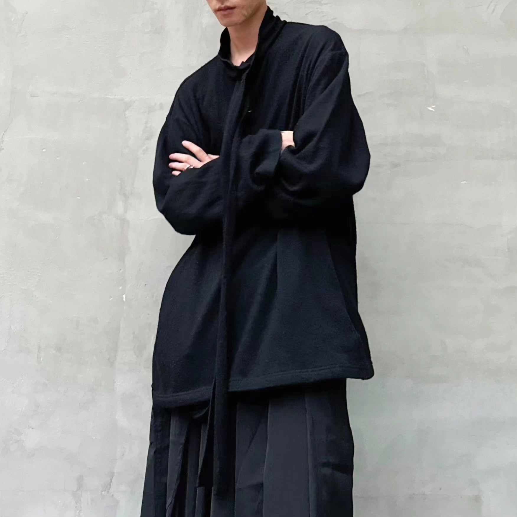 Self-made Yohji Yamamoto Merino Wool Knit Sweater Turtleneck Integrated Tie Scarf