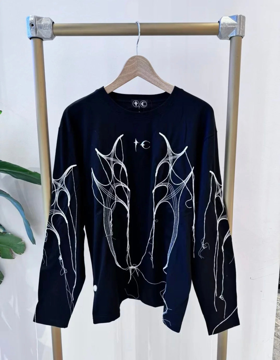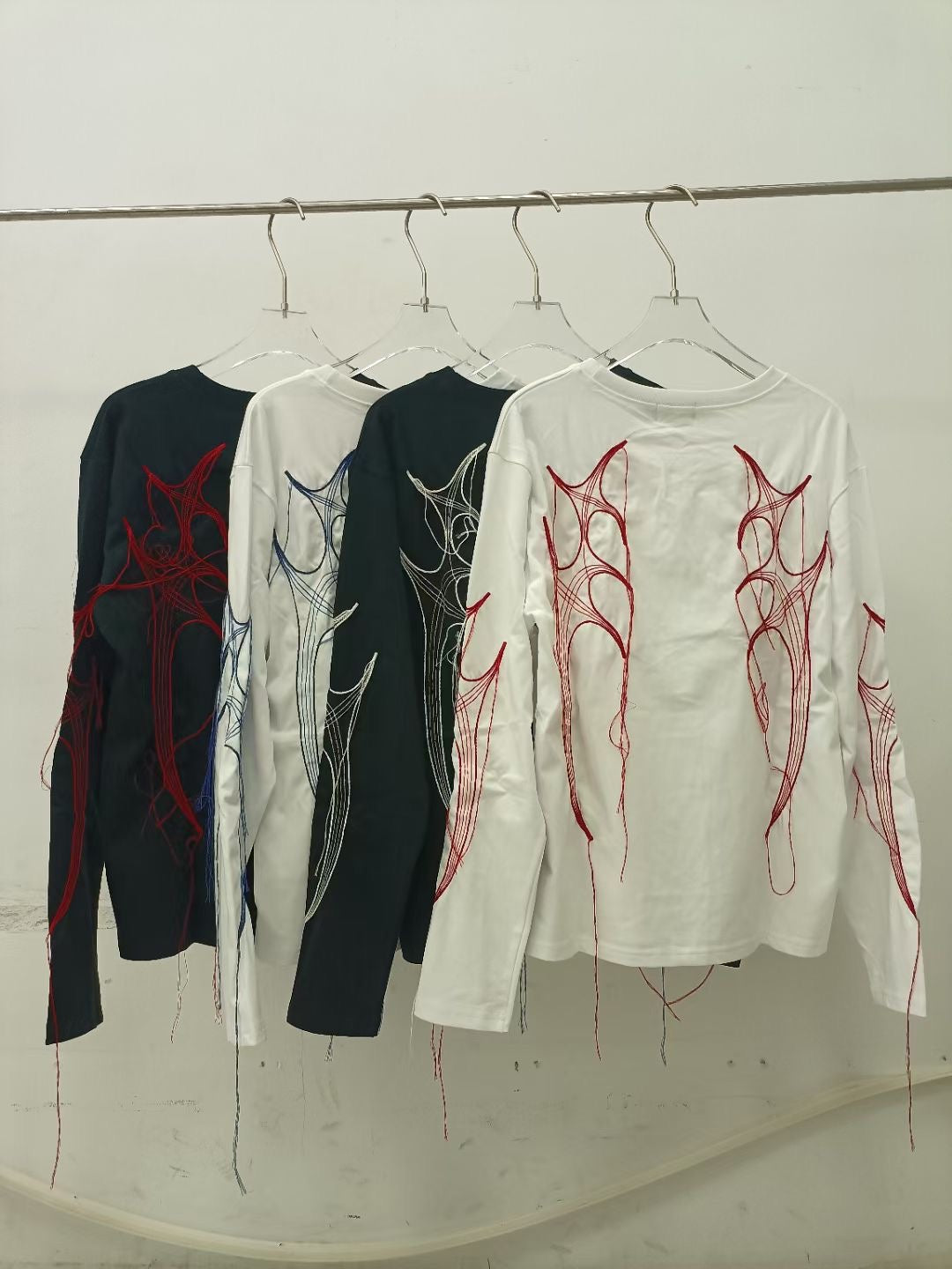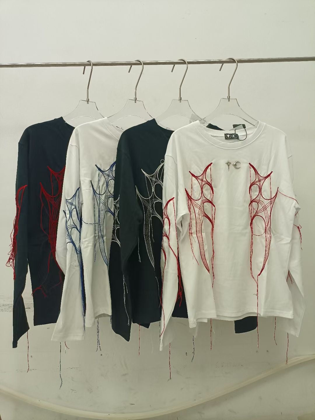 Thug Club 24SS Embroidered Silver Tassel 3D Design Long Sleeve T-Shirt: Kim Jae