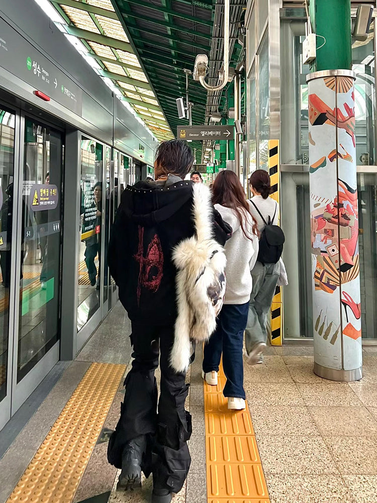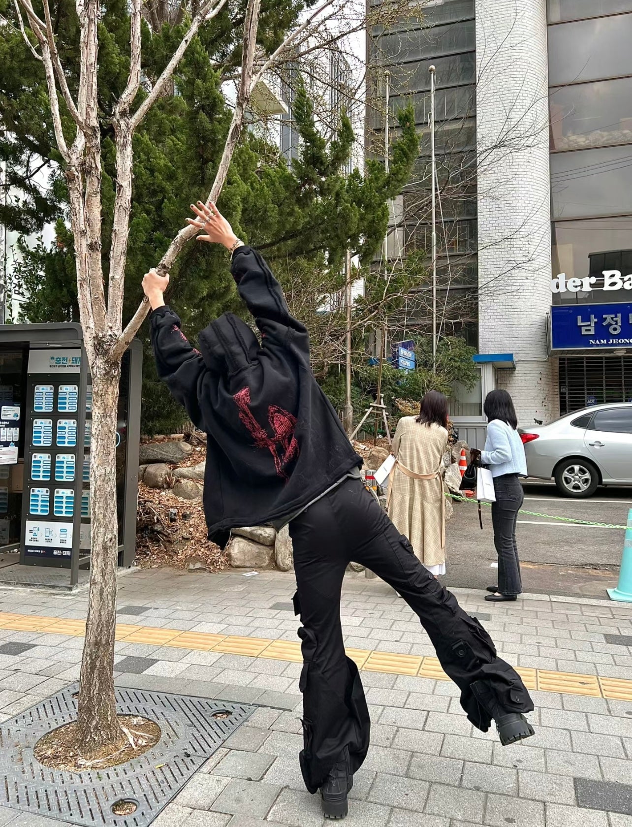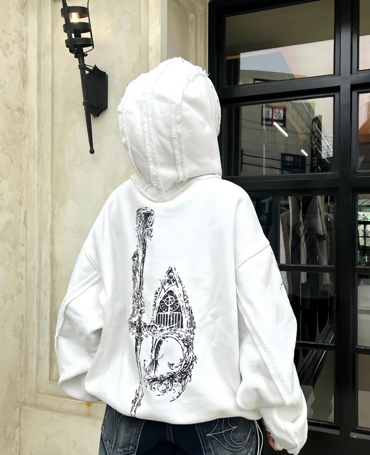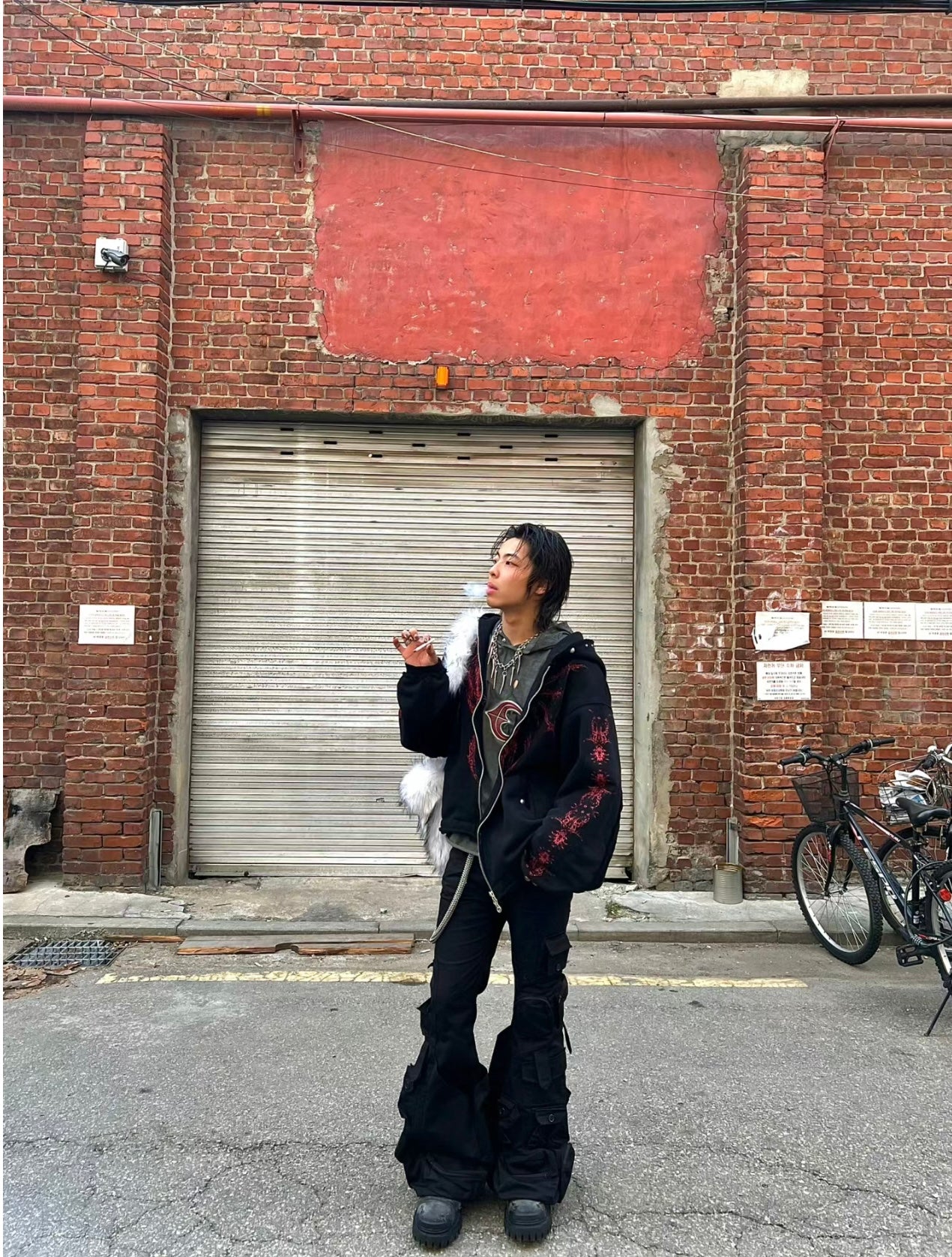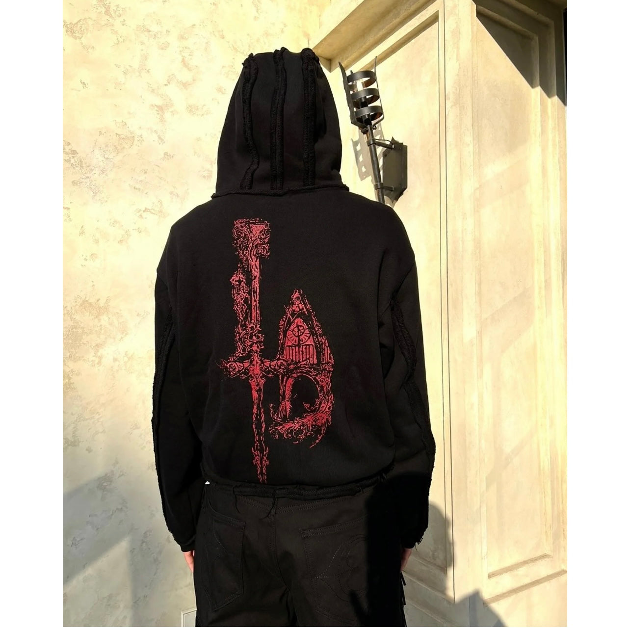 THUG CLUB Heavyweight Hoodie Dragon Spine Demon Print Studded Washed Zip-Up Jackets