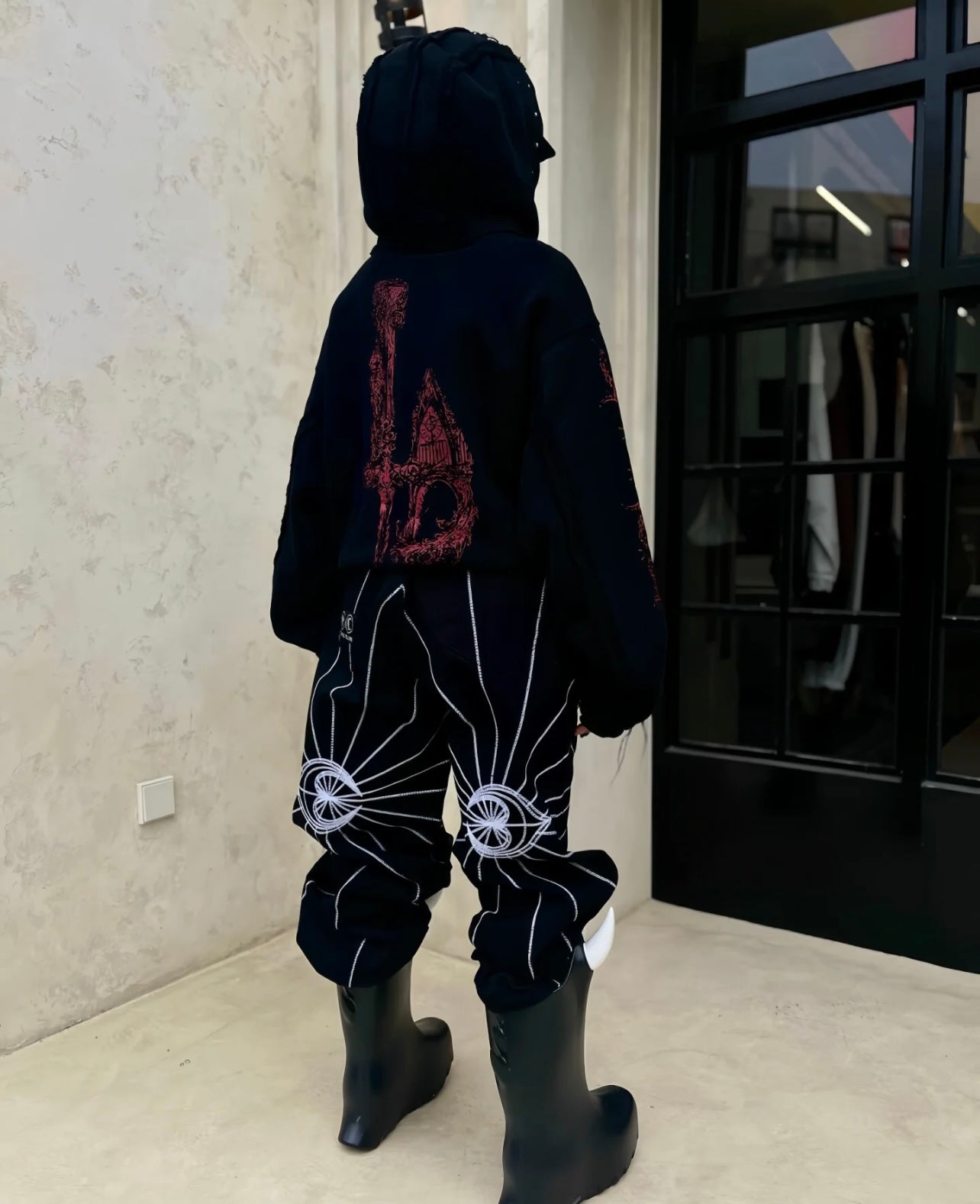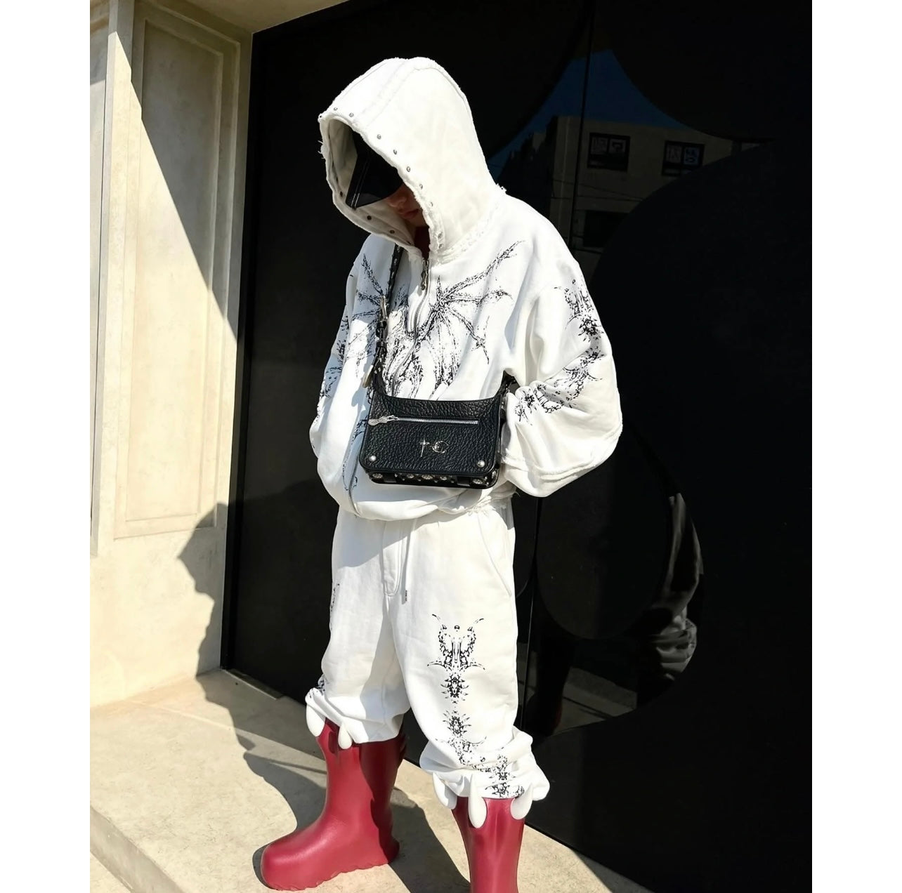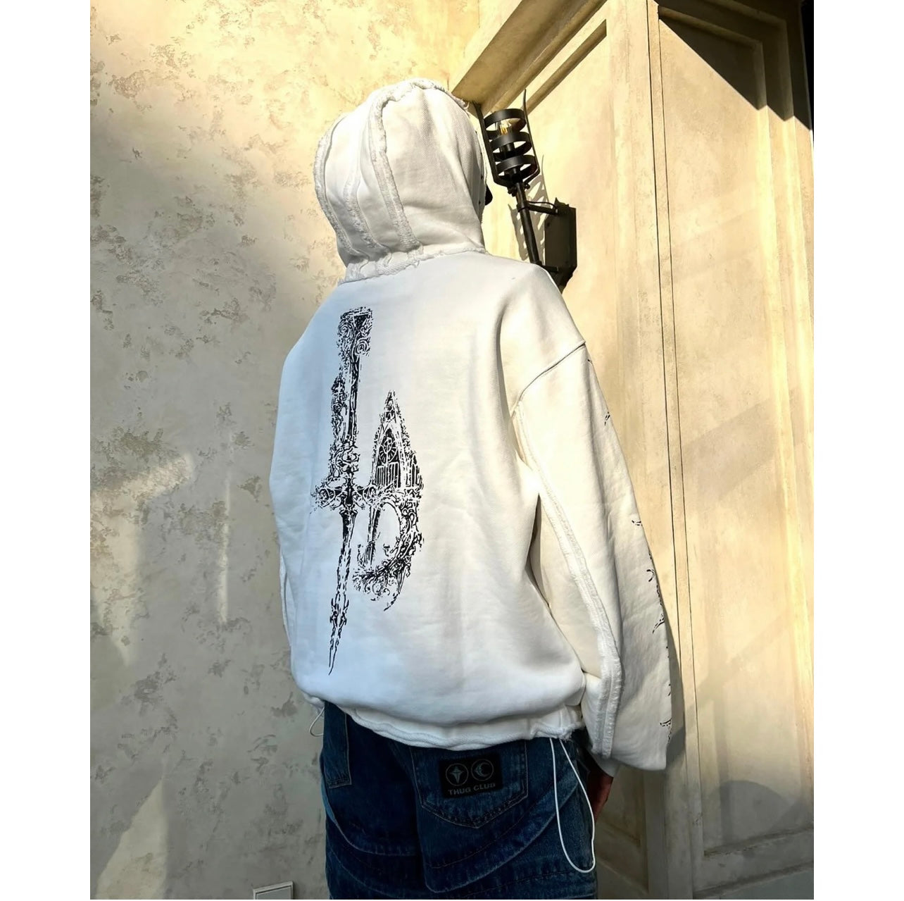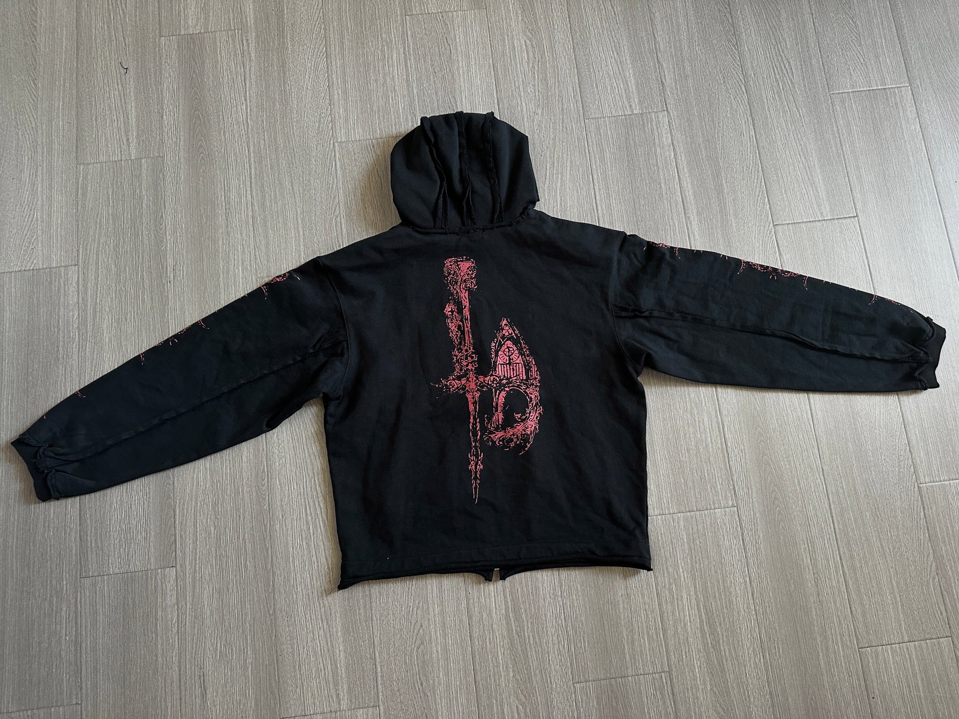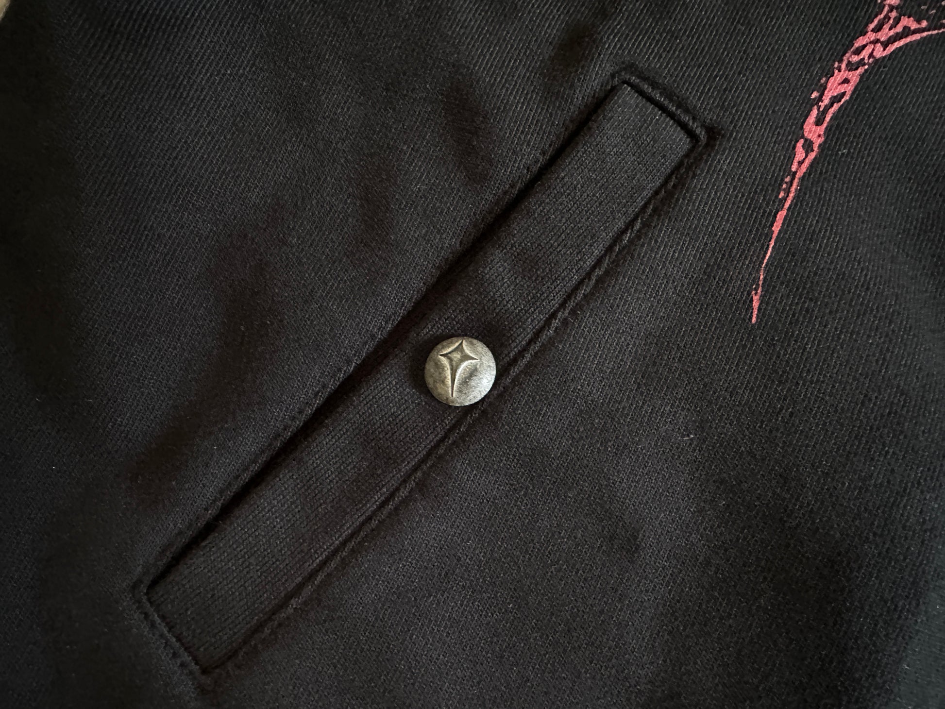 The THUG CLUB Heavyweight Hoodie is expertly crafted with a Dragon Spine Demon Print, studded detailing, and a washed finish. Stay warm and trendy with the zip-up design, making this the perfect addition to your wardrobe. Experience ultimate comfort and style with this one-of-a-kind hoodie.