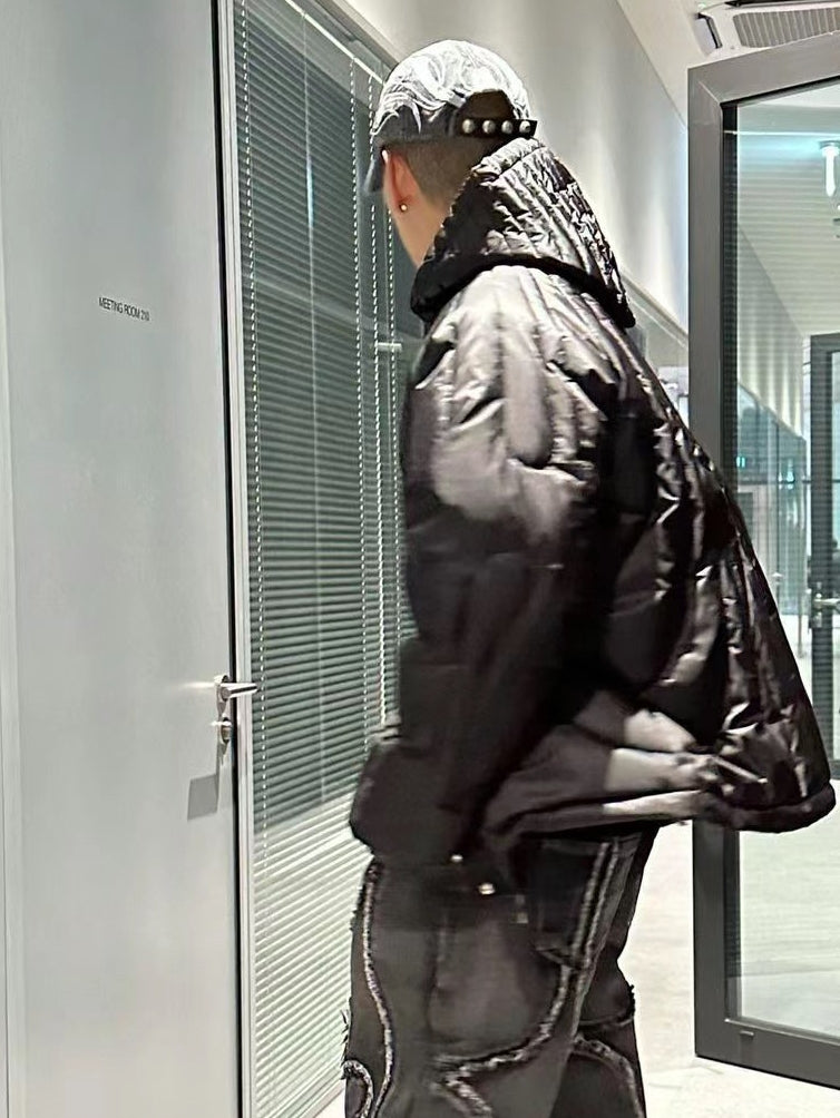 ThugClub 23SS Black Waterproof & Windproof Nylon Goose Down Fill Jacket 360g