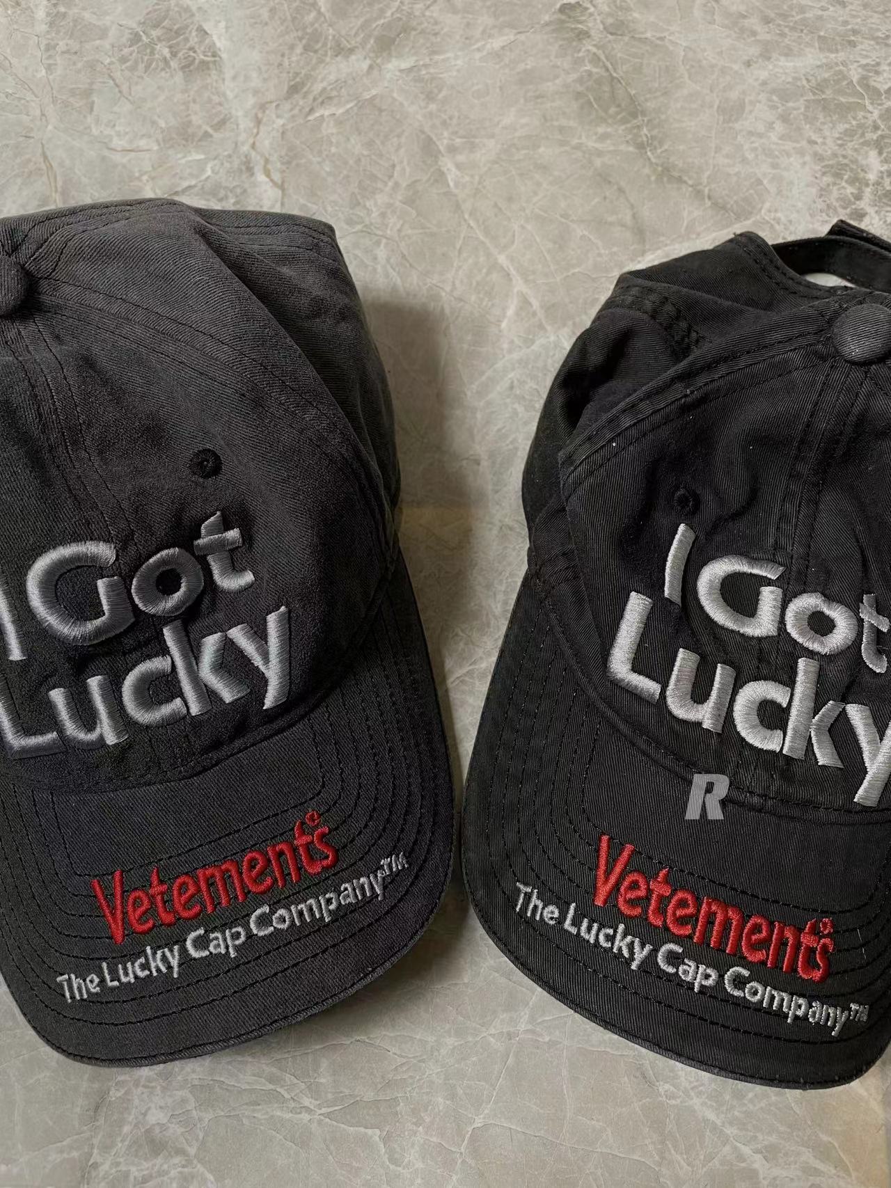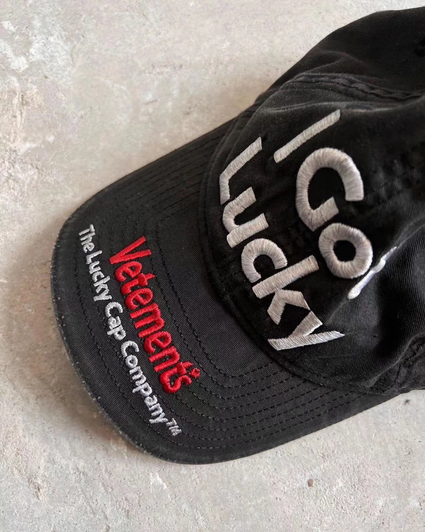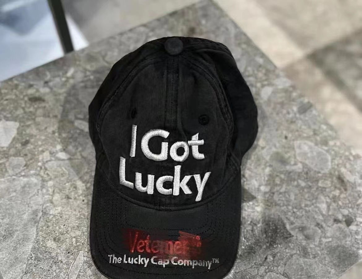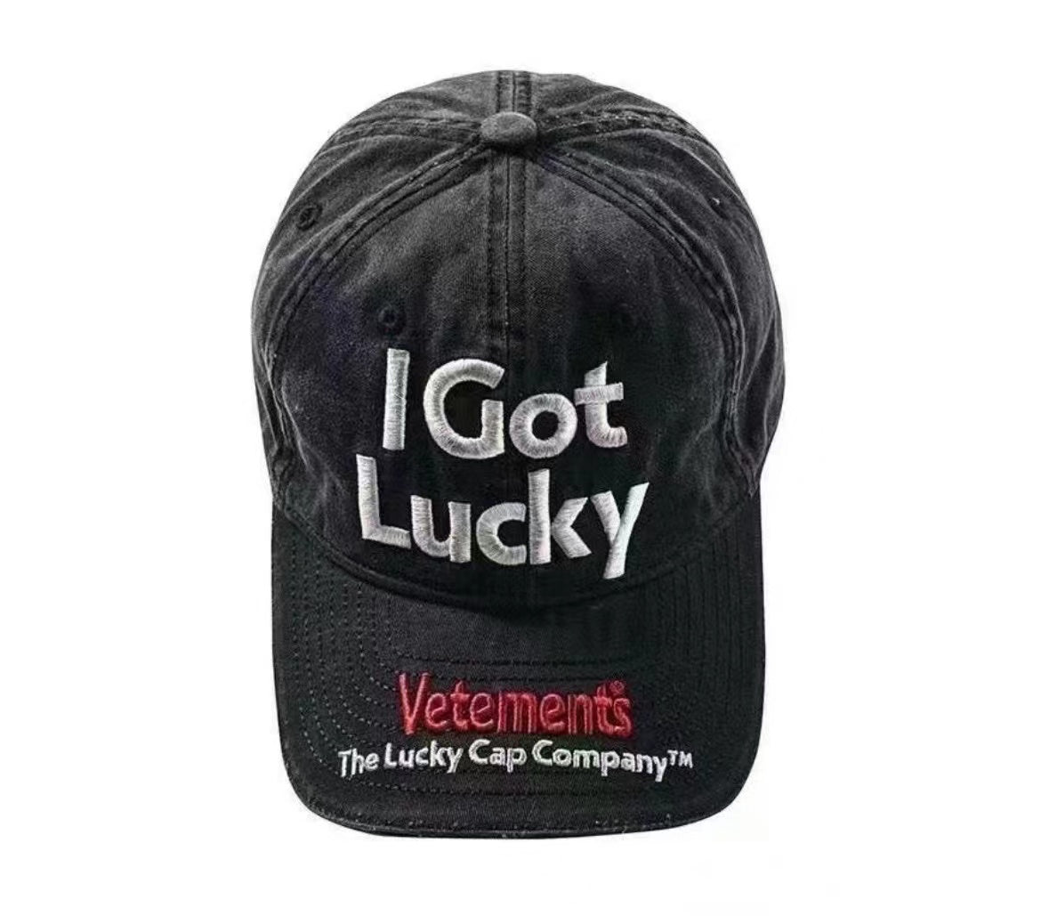 Vetements 22FW Washed Gray Embroidered Baseball Cap "I Got Lucky" Long Brim Hat