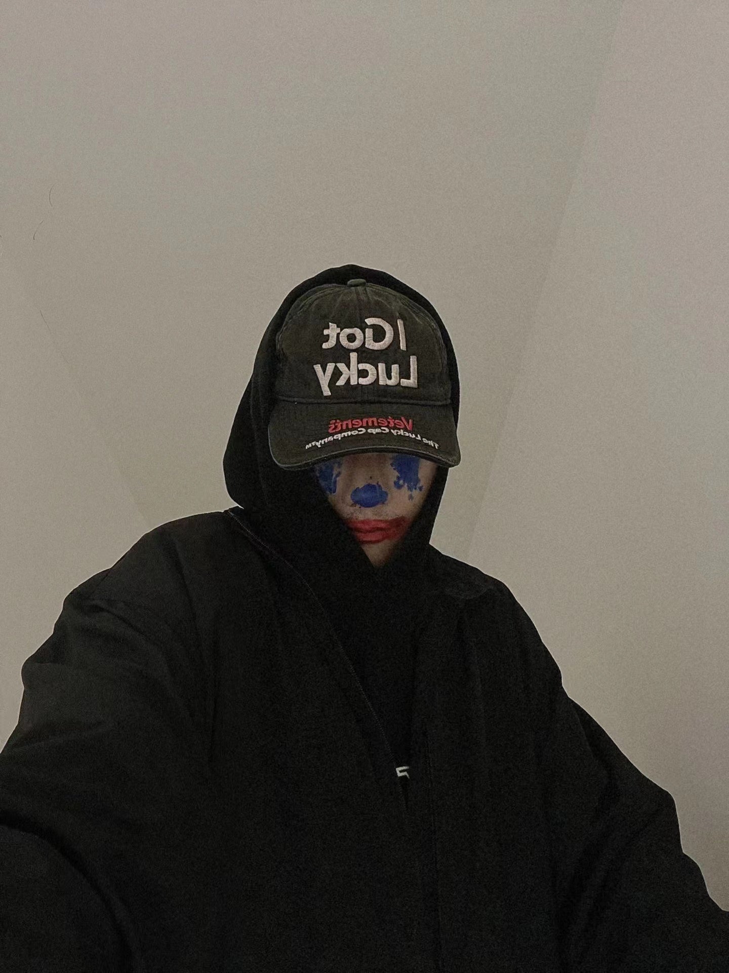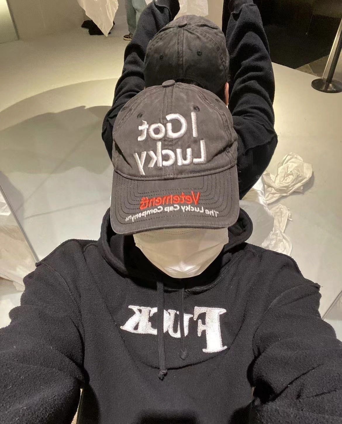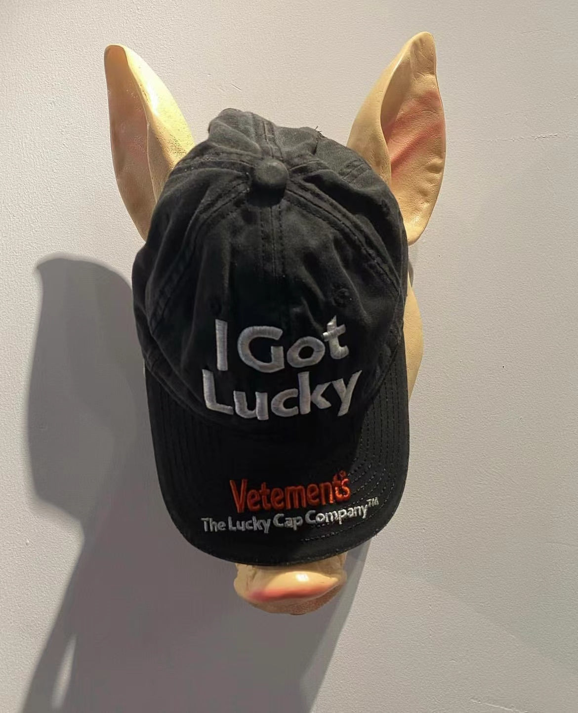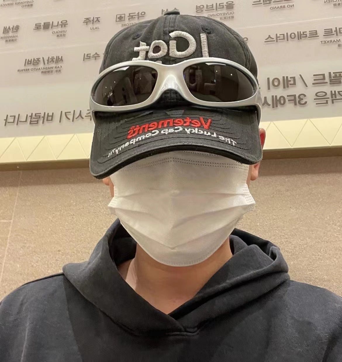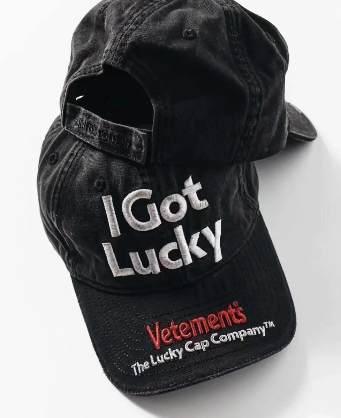 Vetements 22FW Washed Gray Embroidered Baseball Cap "I Got Lucky" Long Brim Hat