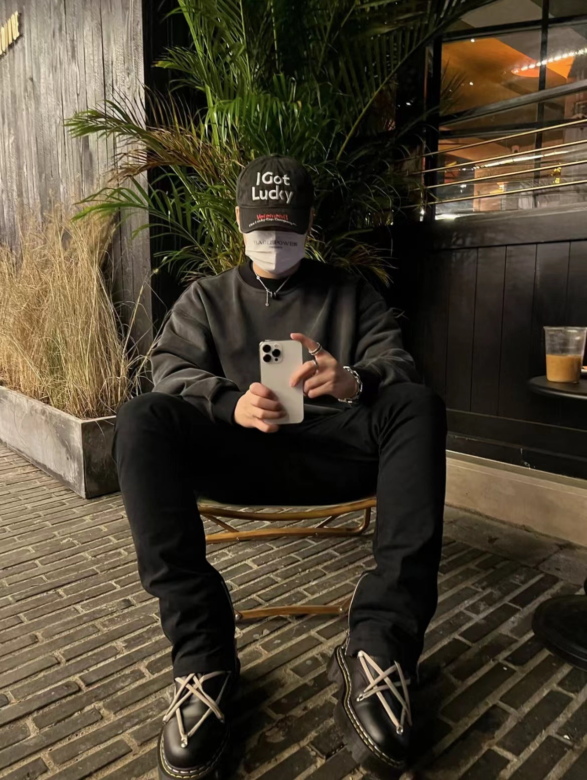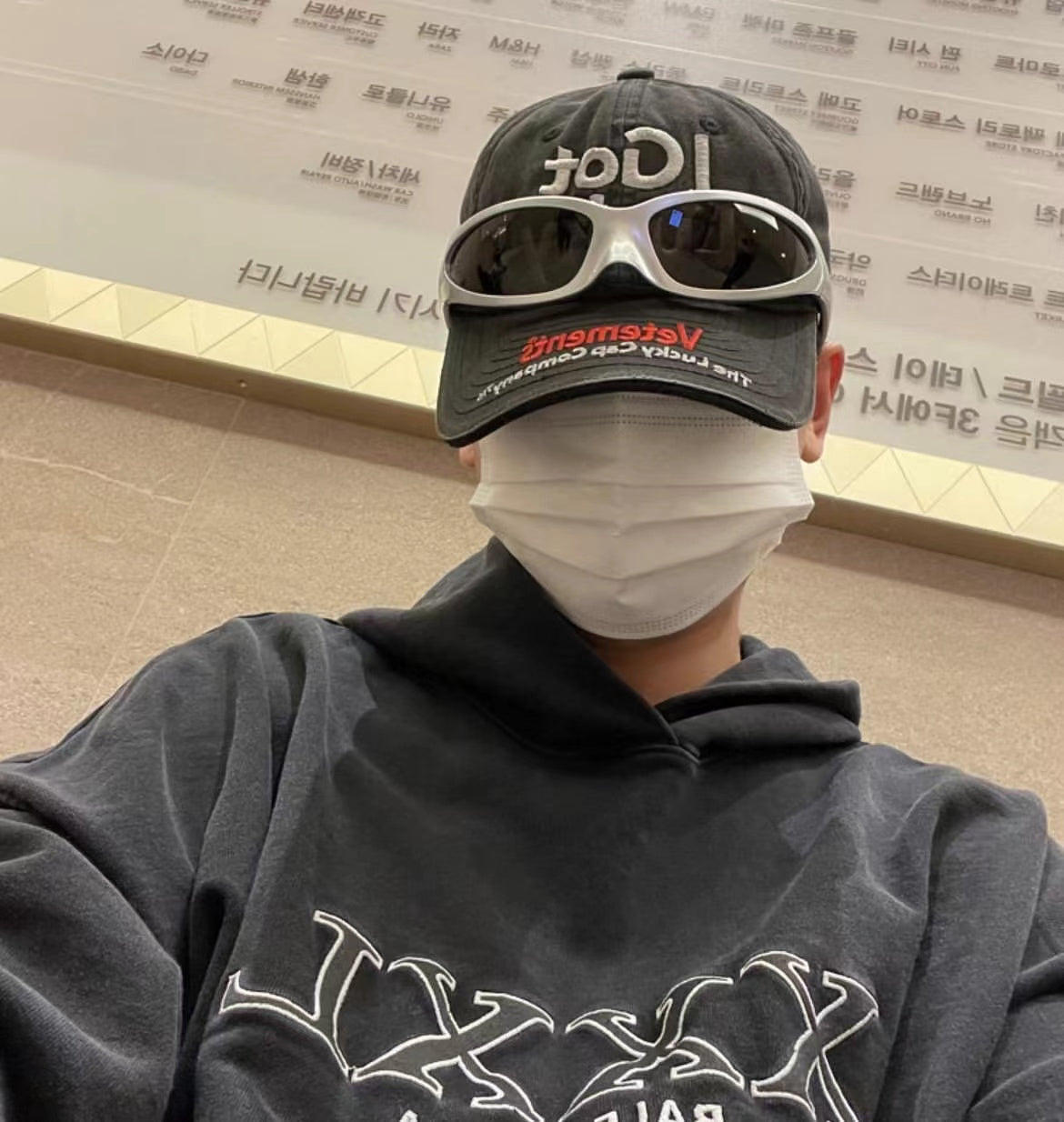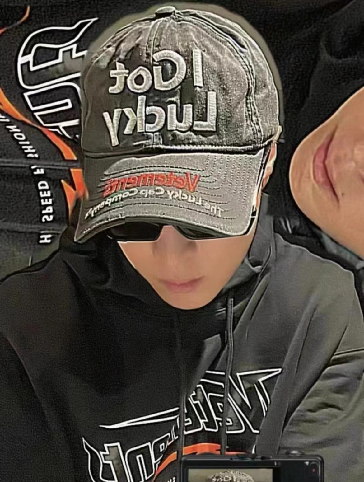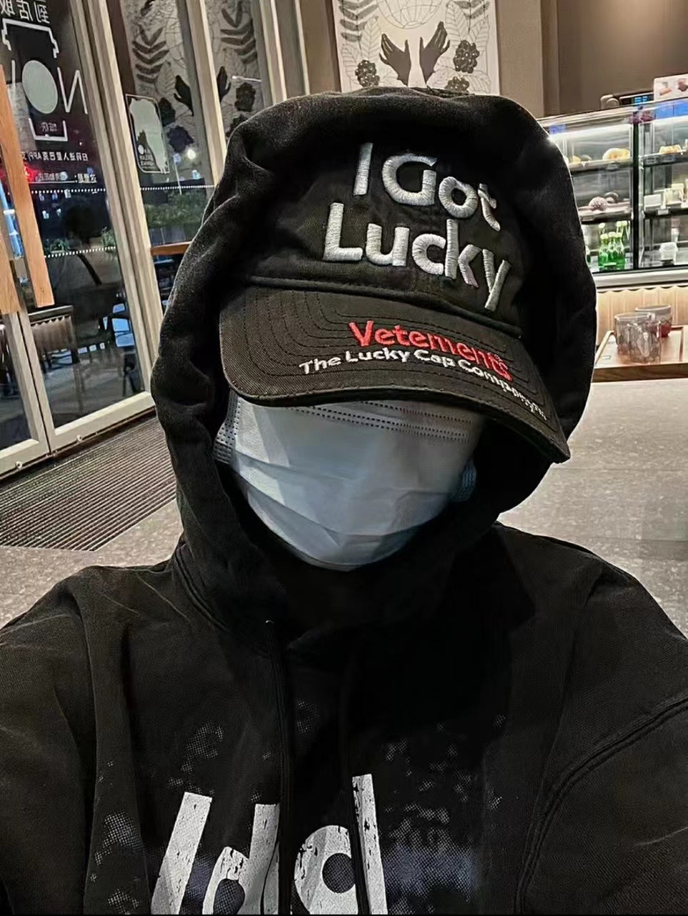 Vetements 22FW Washed Gray Embroidered Baseball Cap "I Got Lucky" Long Brim Hat