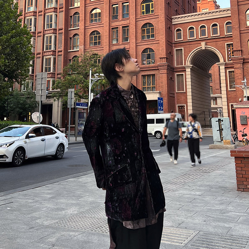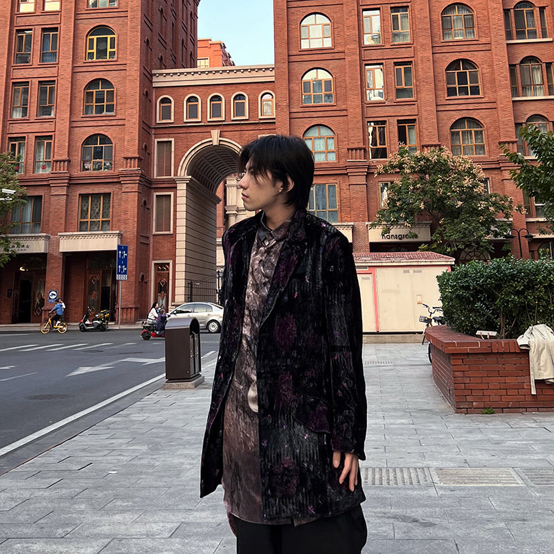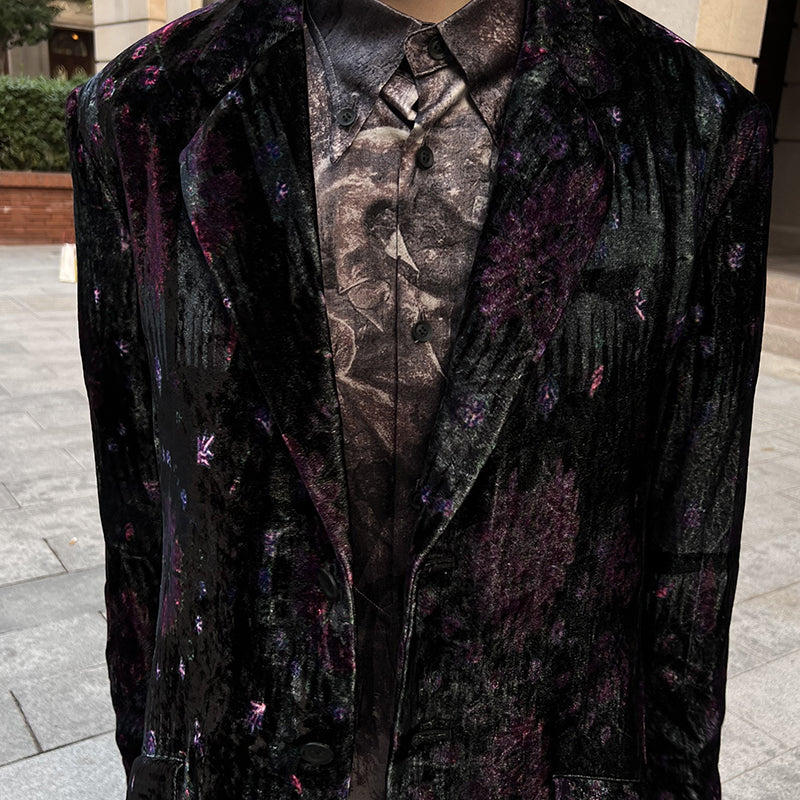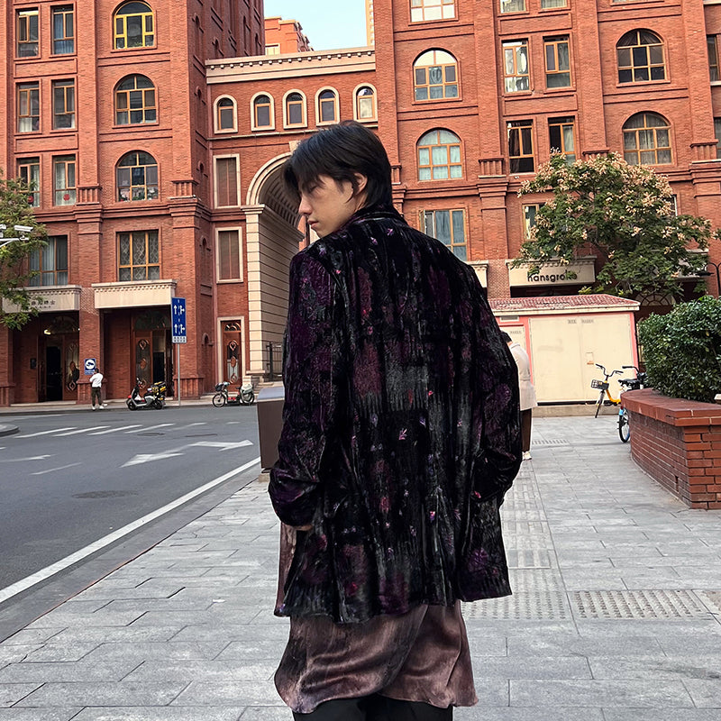 Yohji Nomad Velvet Blazer - Central Asian Traveler Collection Purple Silk Jacket