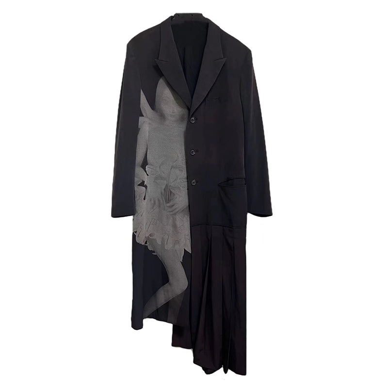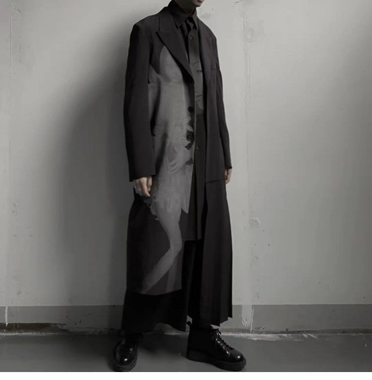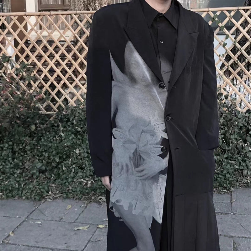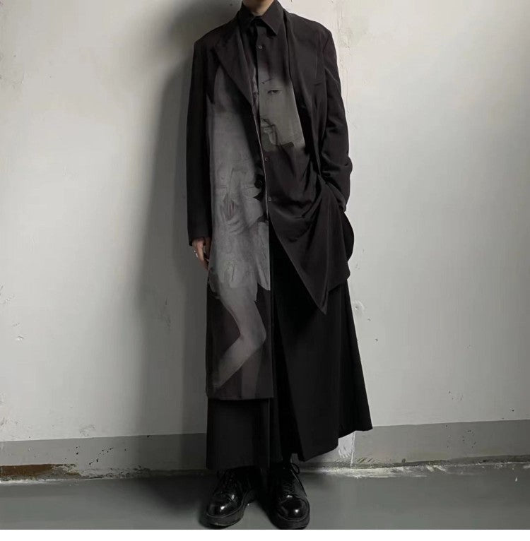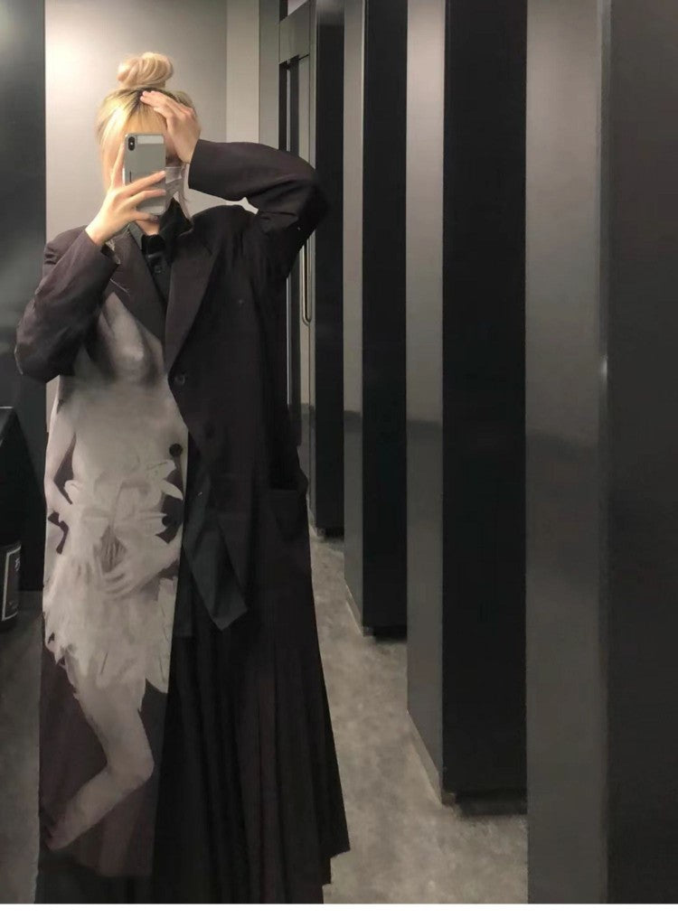 Self-made Yohji Asura Pleated Trench - Dark Avant-garde Black Unisex Coats