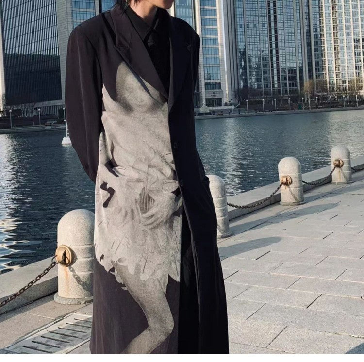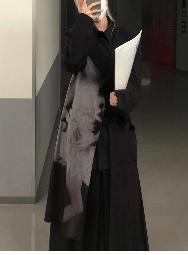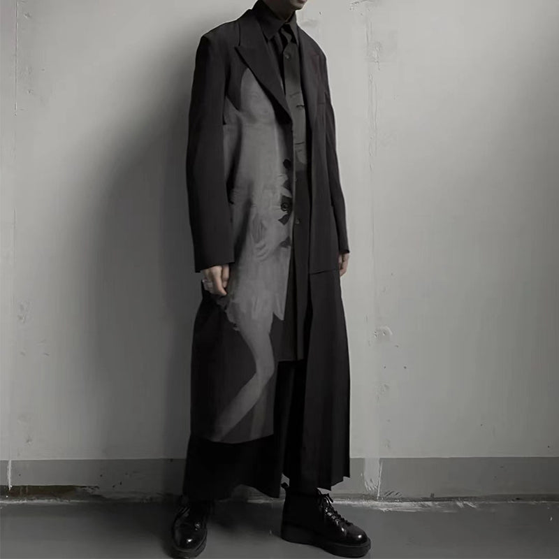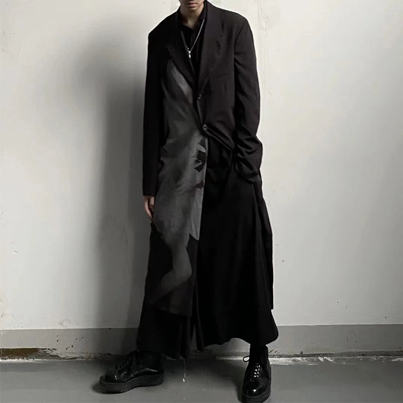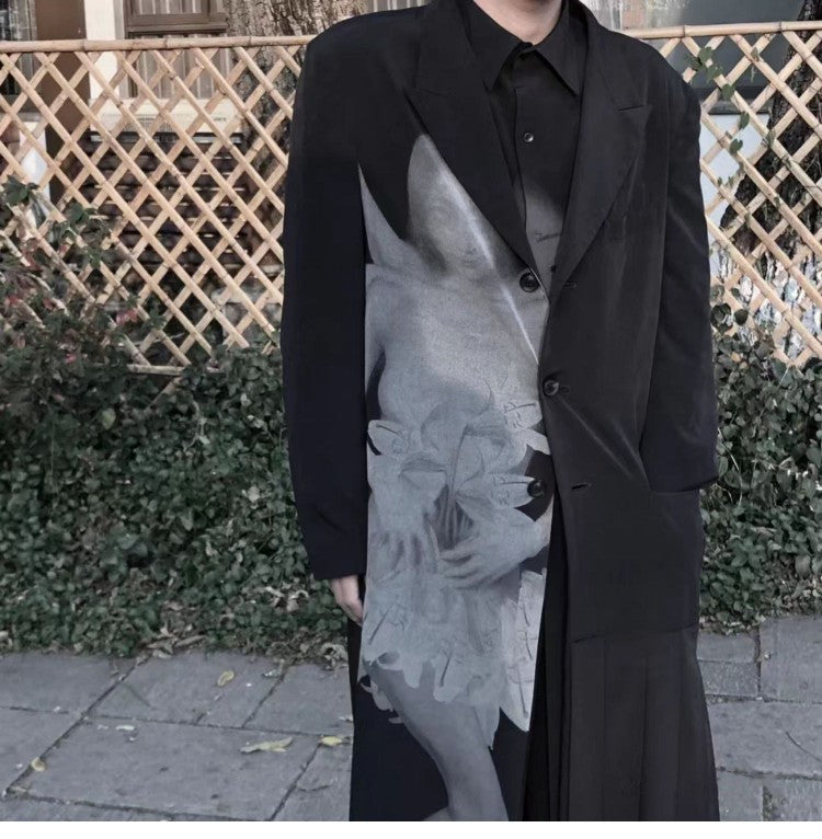 Self-made Yohji Asura Pleated Trench - Dark Avant-garde Black Unisex Coats