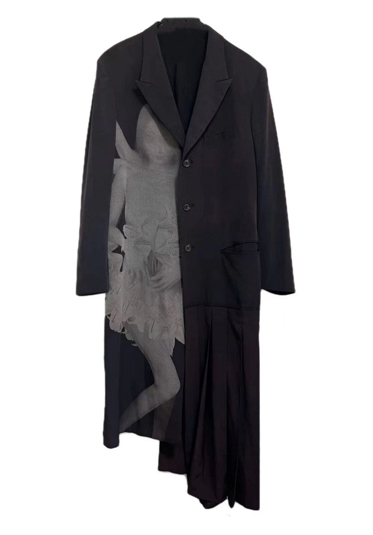 Expertly crafted from avant-garde black fabric, the Self-made Yohji Asura Pleated Trench is a must-have for any fashion-forward individual. Its unique pleated design adds texture and movement to the classic trench coat silhouette, giving it a modern and edgy twist. Unisex and versatile, this coat is the perfect addition to any wardrobe.