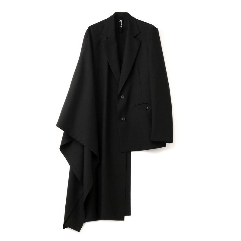 This avant-garde blazer truly embodies the essence of luxury and exclusivity. The Yohji One Sleeve Cape design adds a unique and sophisticated touch to this minimal and elegant black suit coat. The asymmetric silhouette elevates any outfit, making it the perfect statement piece for the fashion-forward individual.