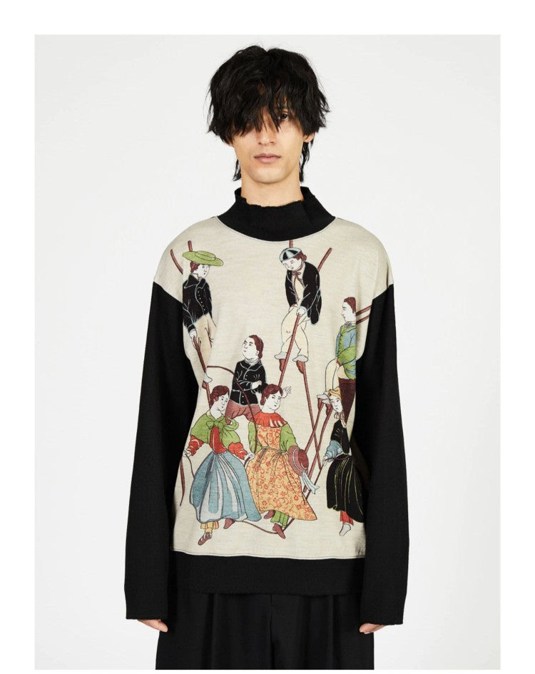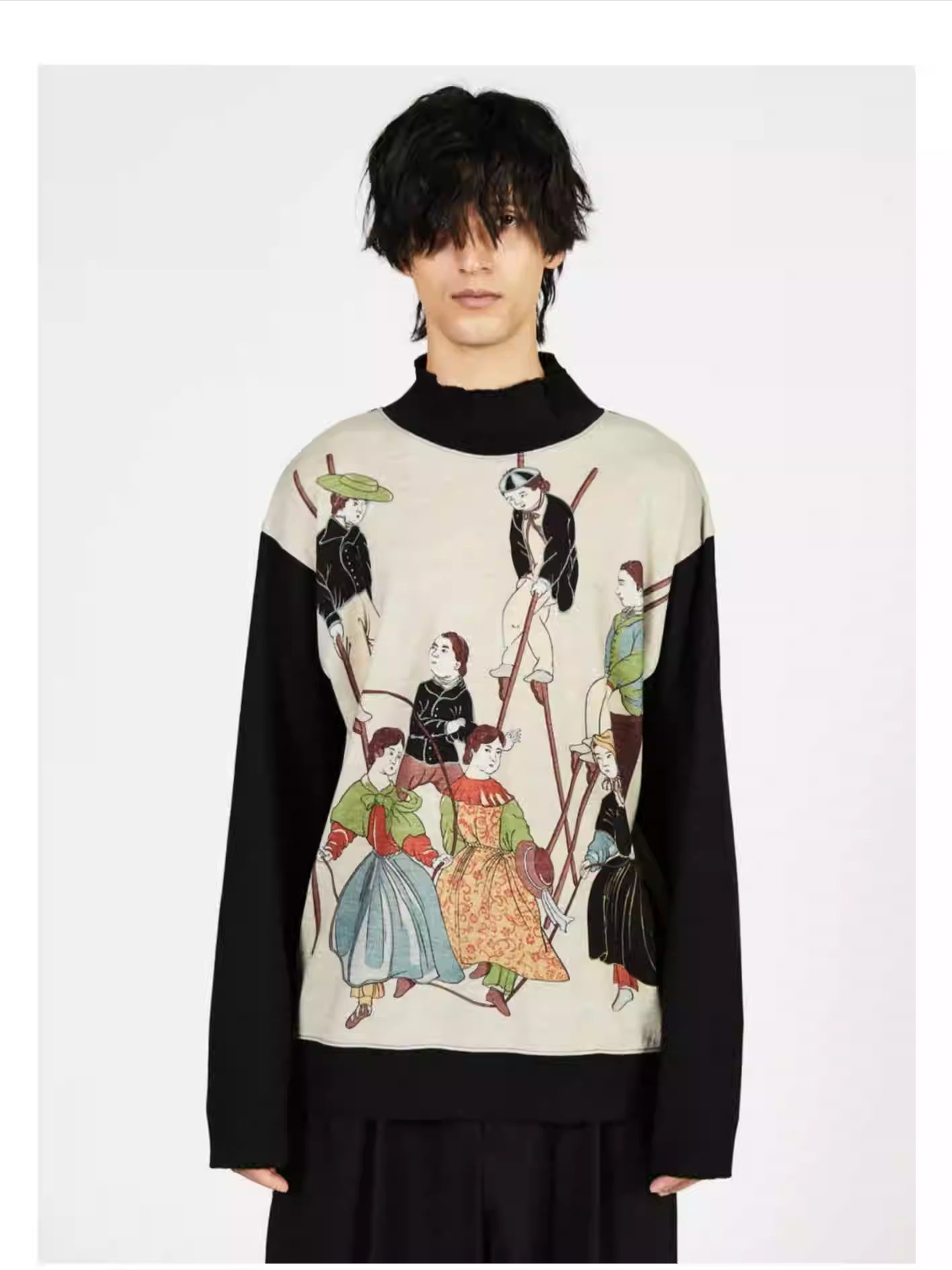 Yohji Yamamoto Rokumeikan Pima Cotton Sweatshirt Long-Sleeve T-Shirt Dual-Tone